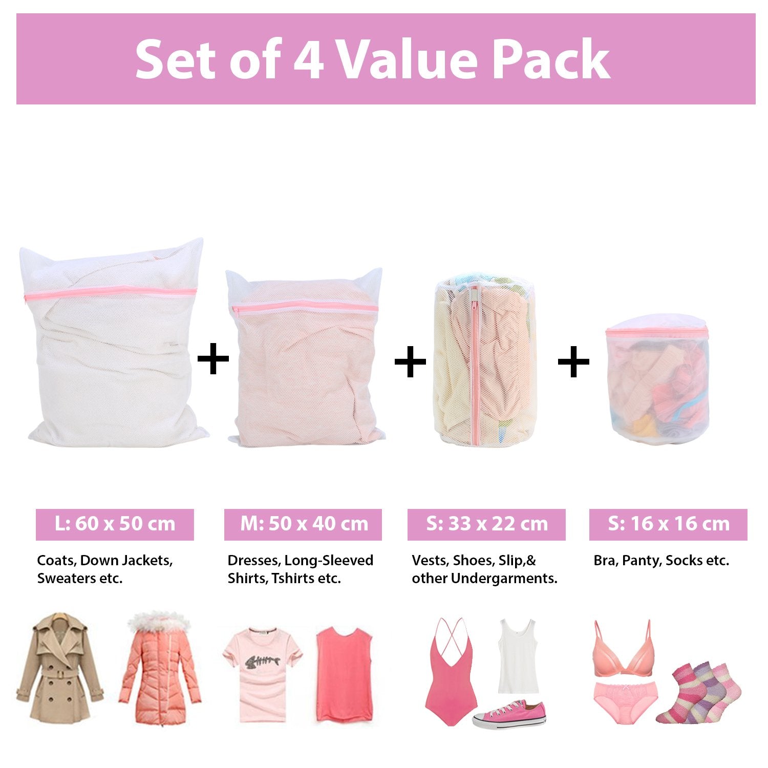 • Package Contain - 1 Large - 60 x 50 cm, 1 Medium -50 x 40 cm, 1 Small: 33 x 22 cm, 1 bra wash bag: 16 x 16 cm.
