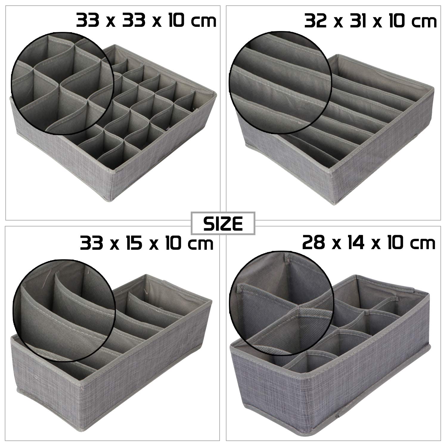 Multi Compartment Undergarments Organiser, Drawer Divider for Underwear, Lingerie, Bras, Socks, Ties, 6/7/ 8/24 Cells, 4 Piece Set, Grey