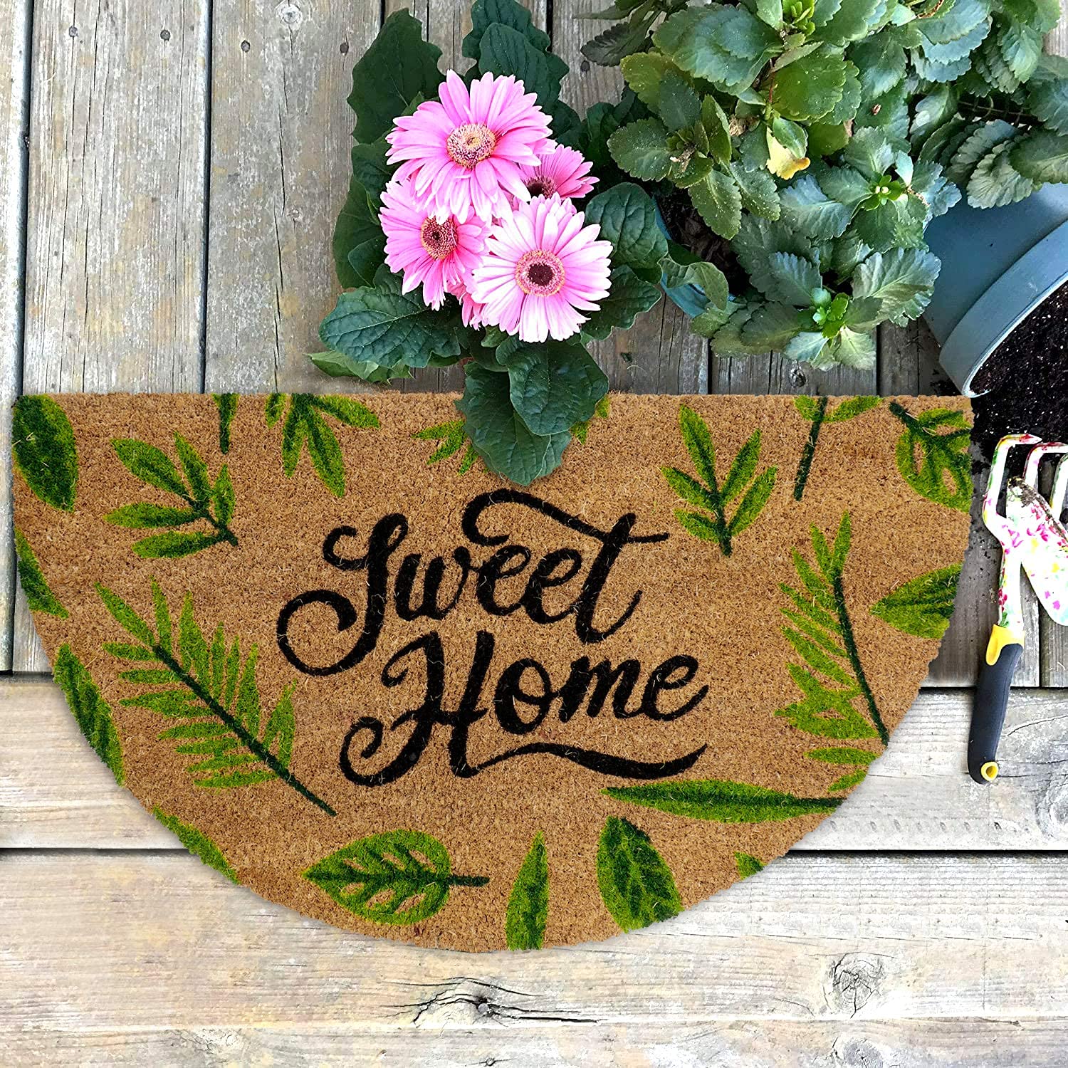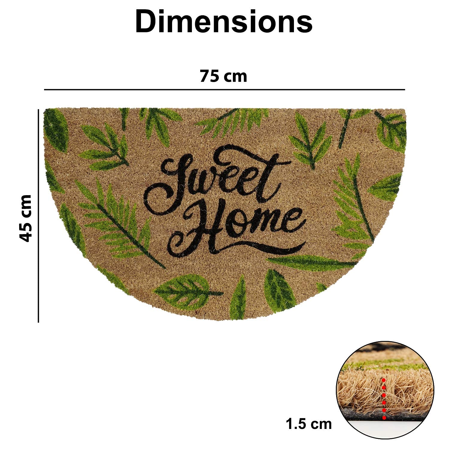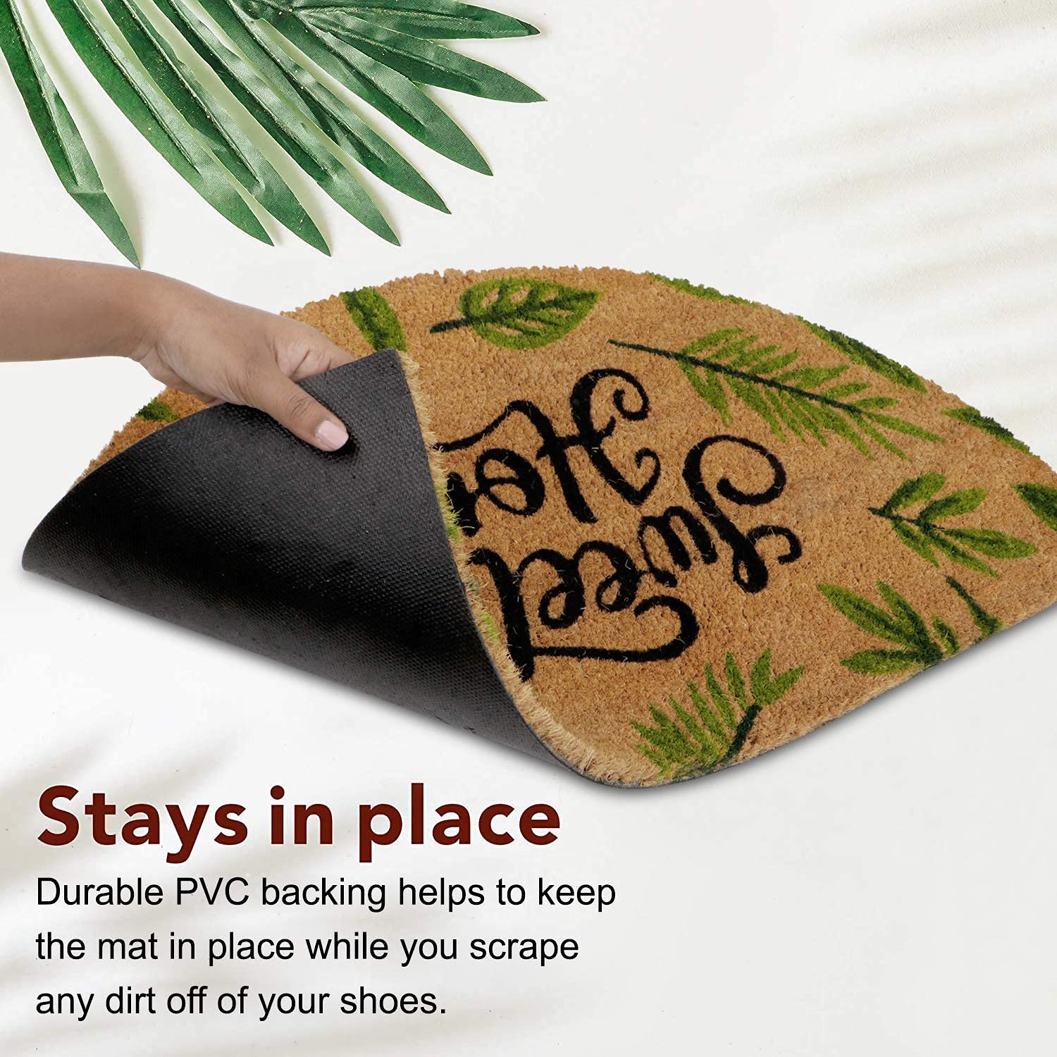 Natural Coconut Coir Mat for Entrance with PVC Backing, Sweet Home (Large 45x75 cm, Green)
