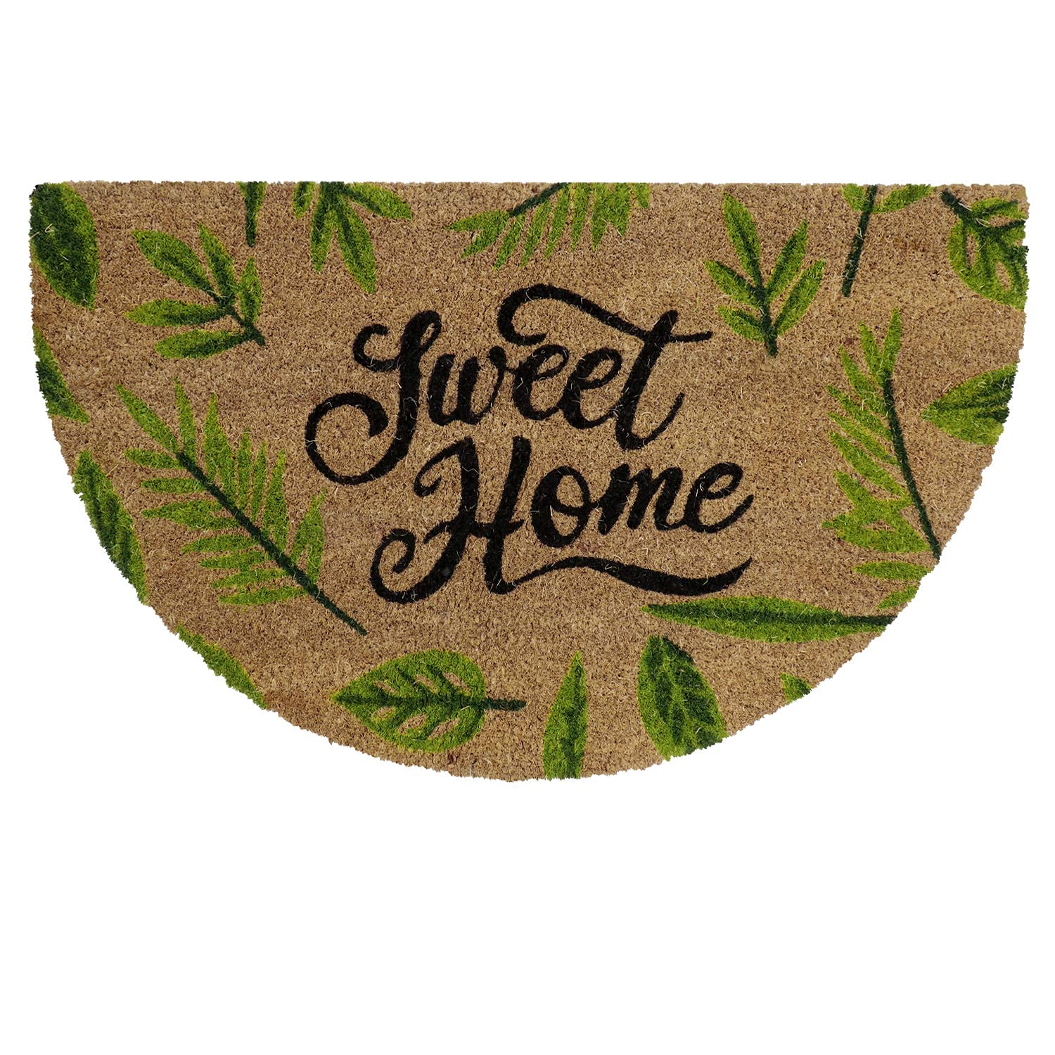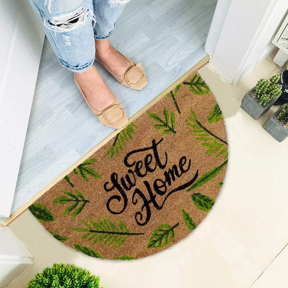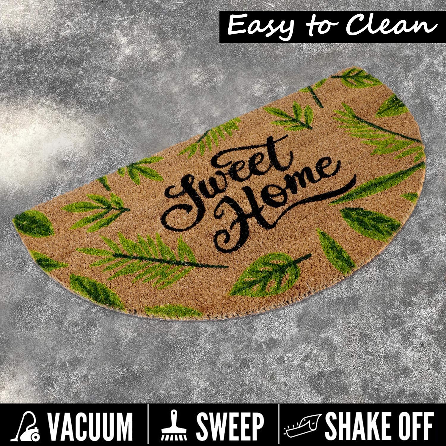 Natural Coconut Coir Mat for Entrance with PVC Backing, Sweet Home (Large 45x75 cm, Green)