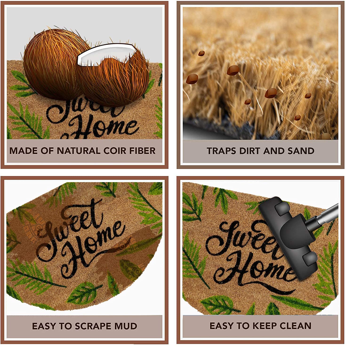 • NATURAL COIR RUBBER DOORMAT – Made from 100% natural coco coir fiber and durable rubber, this decorative mat is perfect for your front porch or entryway.