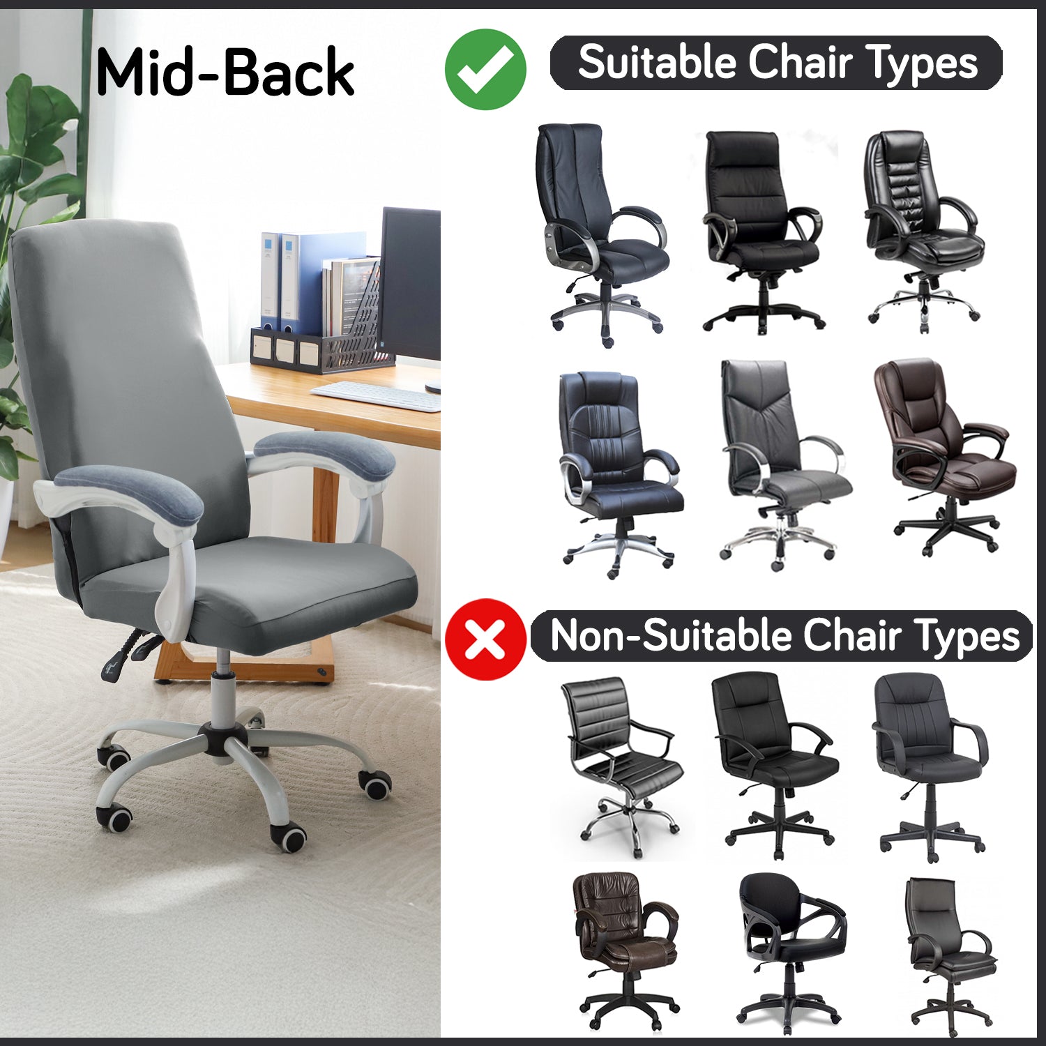 Package Contains – 1pc desk chair cover (mid-back).