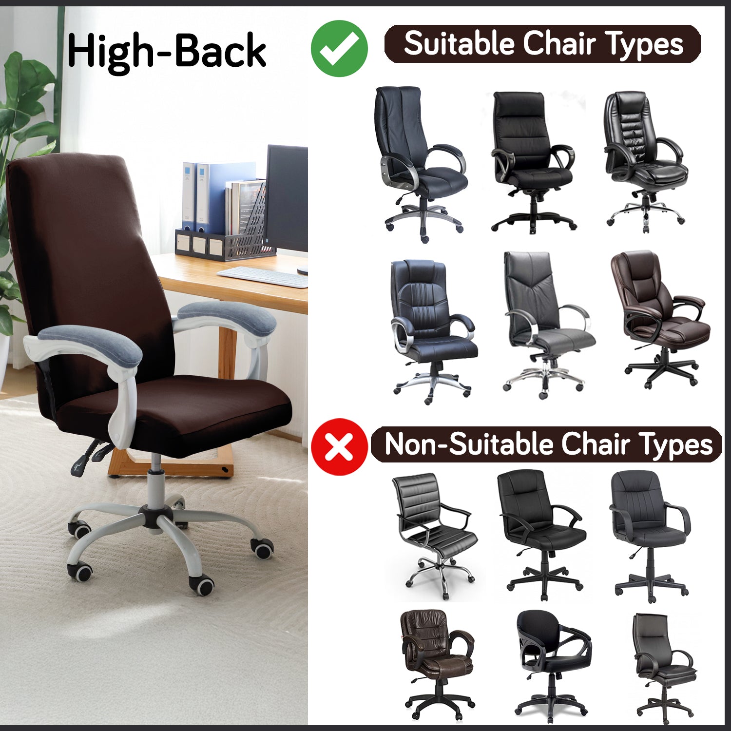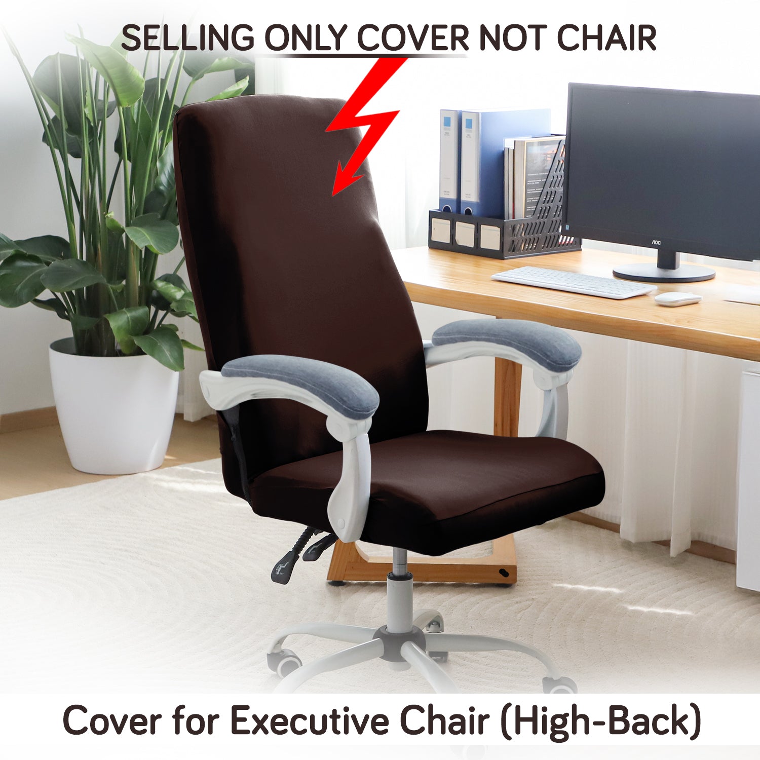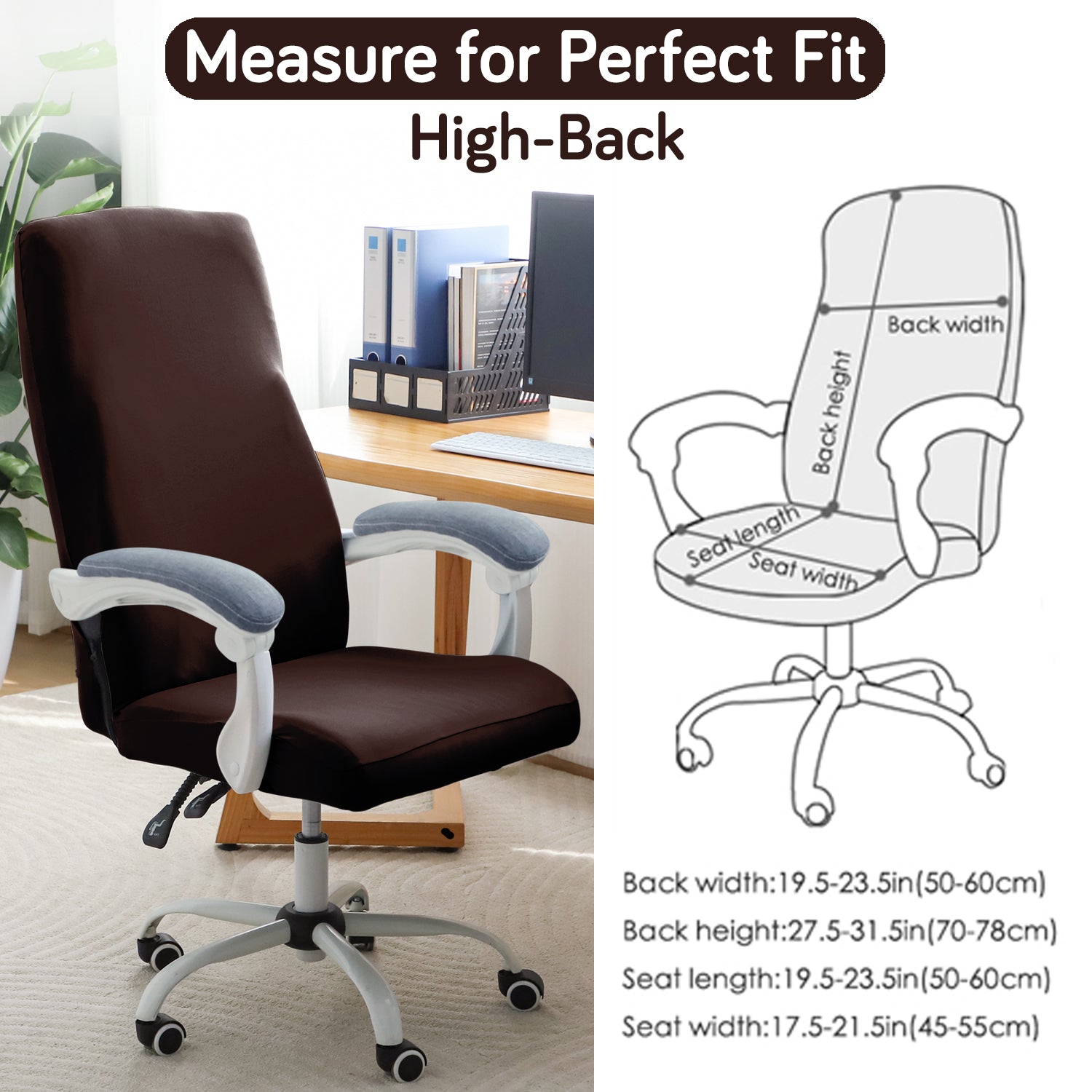 Office Chair Cover for Executive Chair (High-Back) – 140 GSM Stretch Fabric – Washable, Durable & Anti-Slip – Fits High-Back Office Chairs, Brown