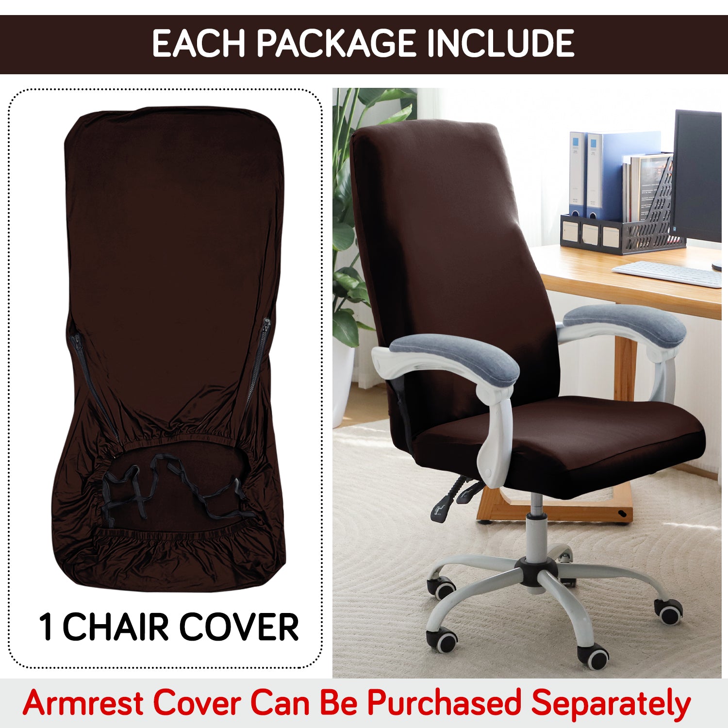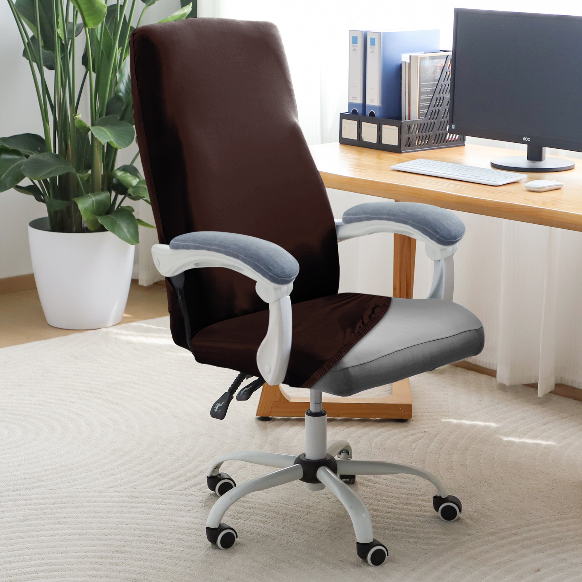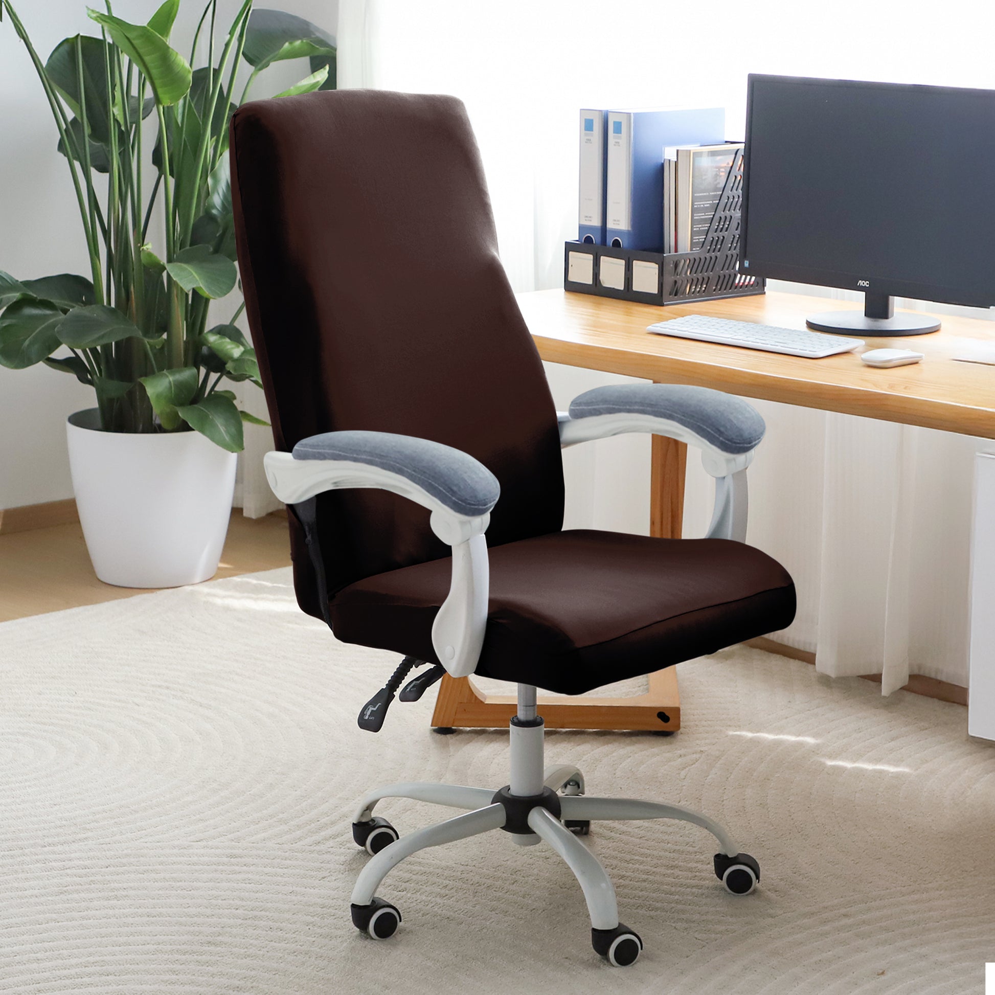 Office Chair Cover for Executive Chair (High-Back) – 140 GSM Stretch Fabric – Washable, Durable & Anti-Slip – Fits High-Back Office Chairs, Brown