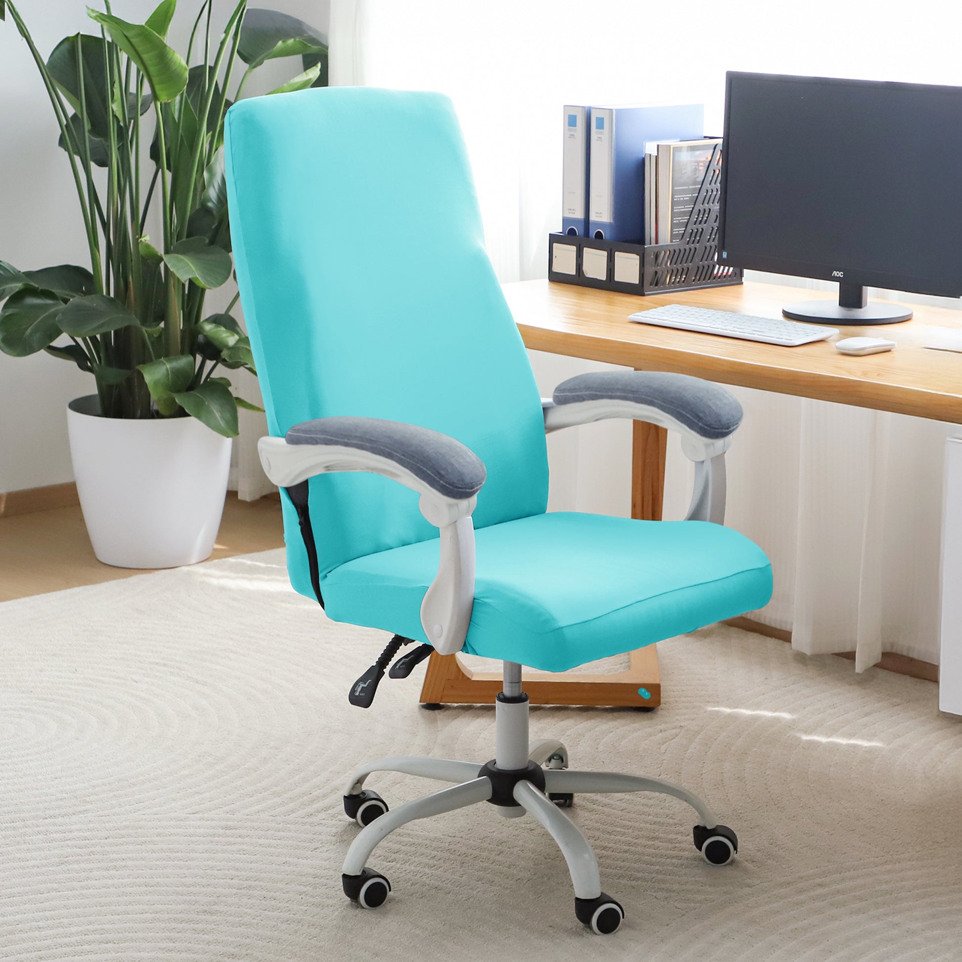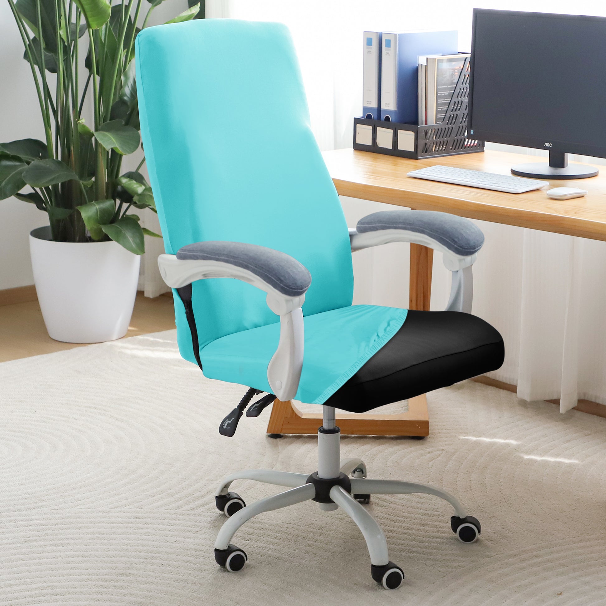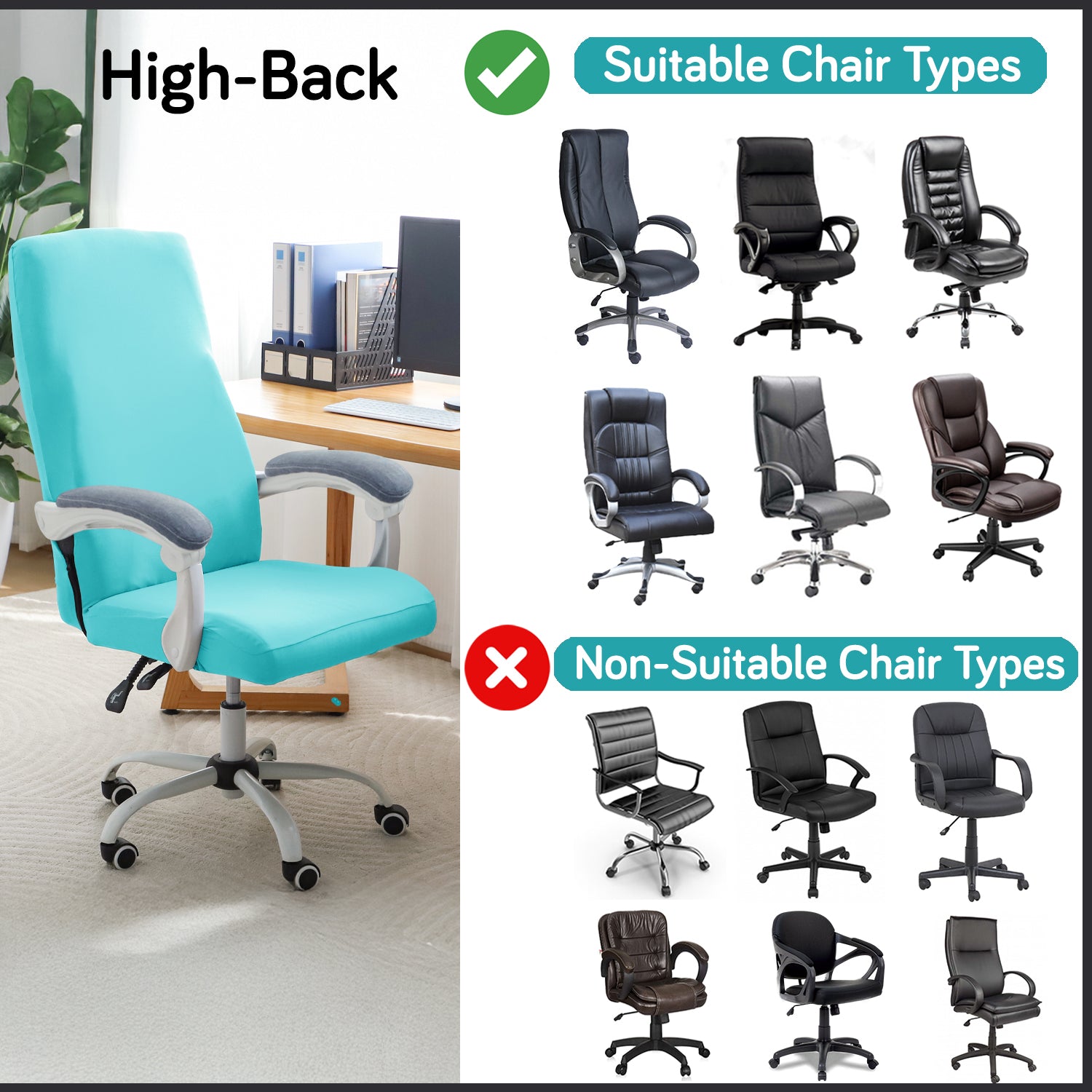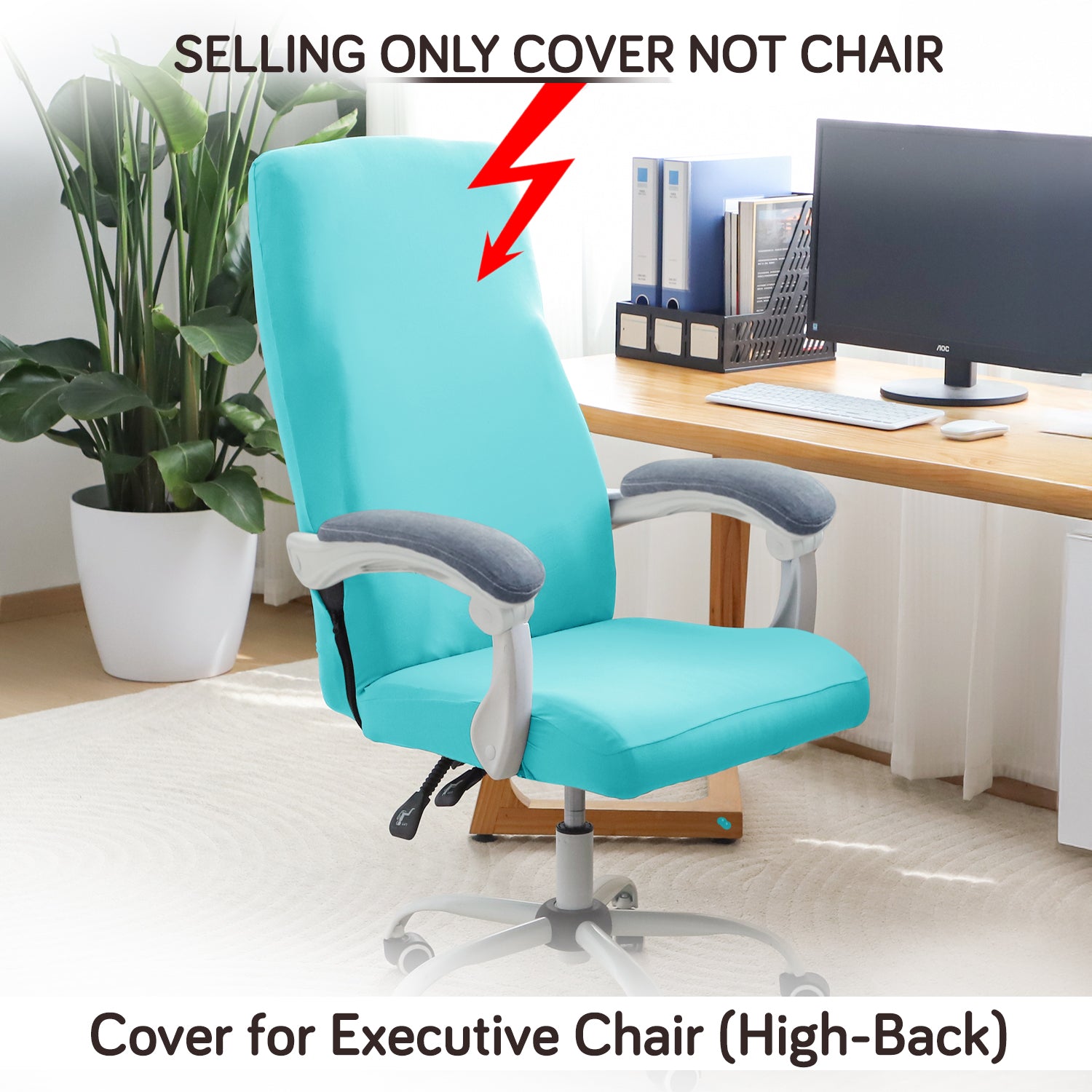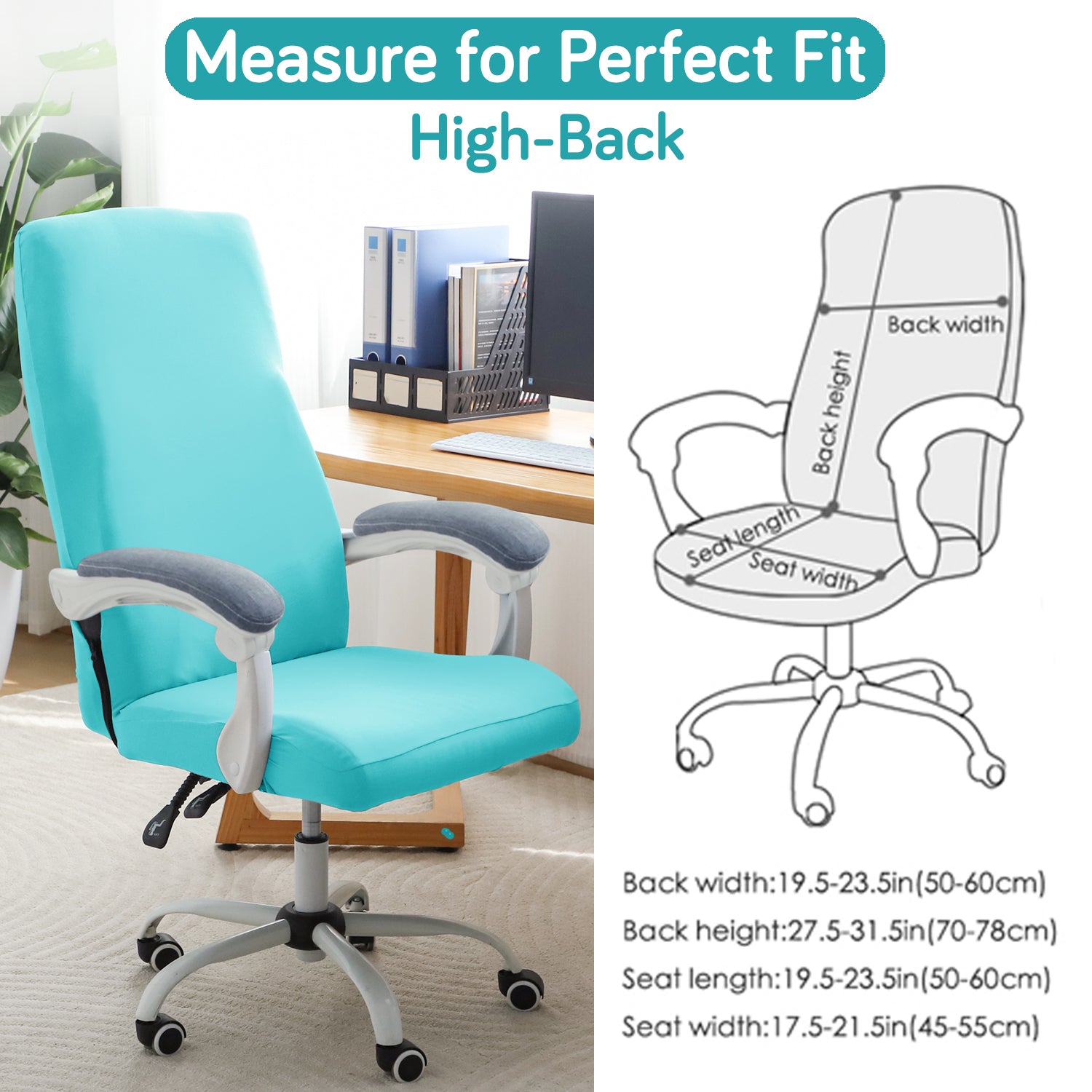 Office Chair Cover for Executive Chair (High-Back) – 140 GSM Stretchable Fabric – Washable & Anti-Slip – Fits Big & Tall Office Chairs, Sky Blue