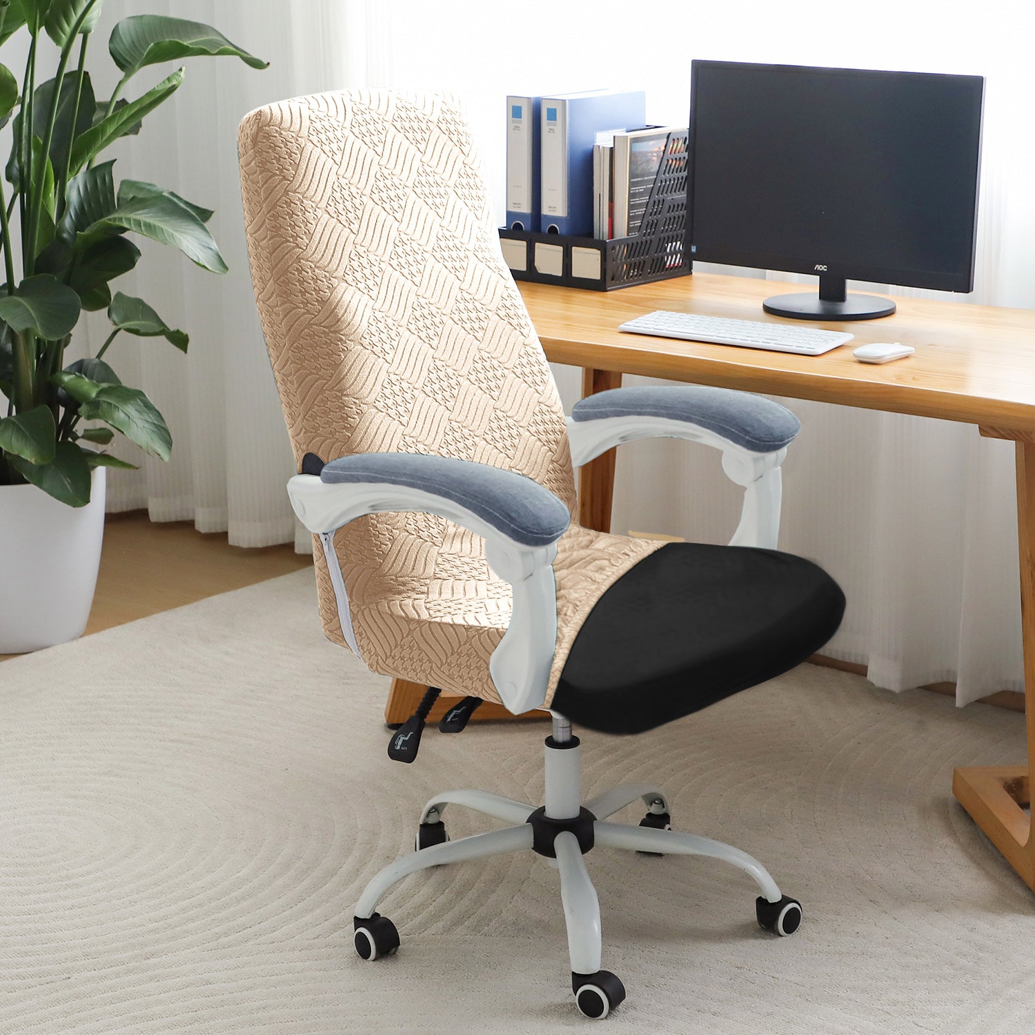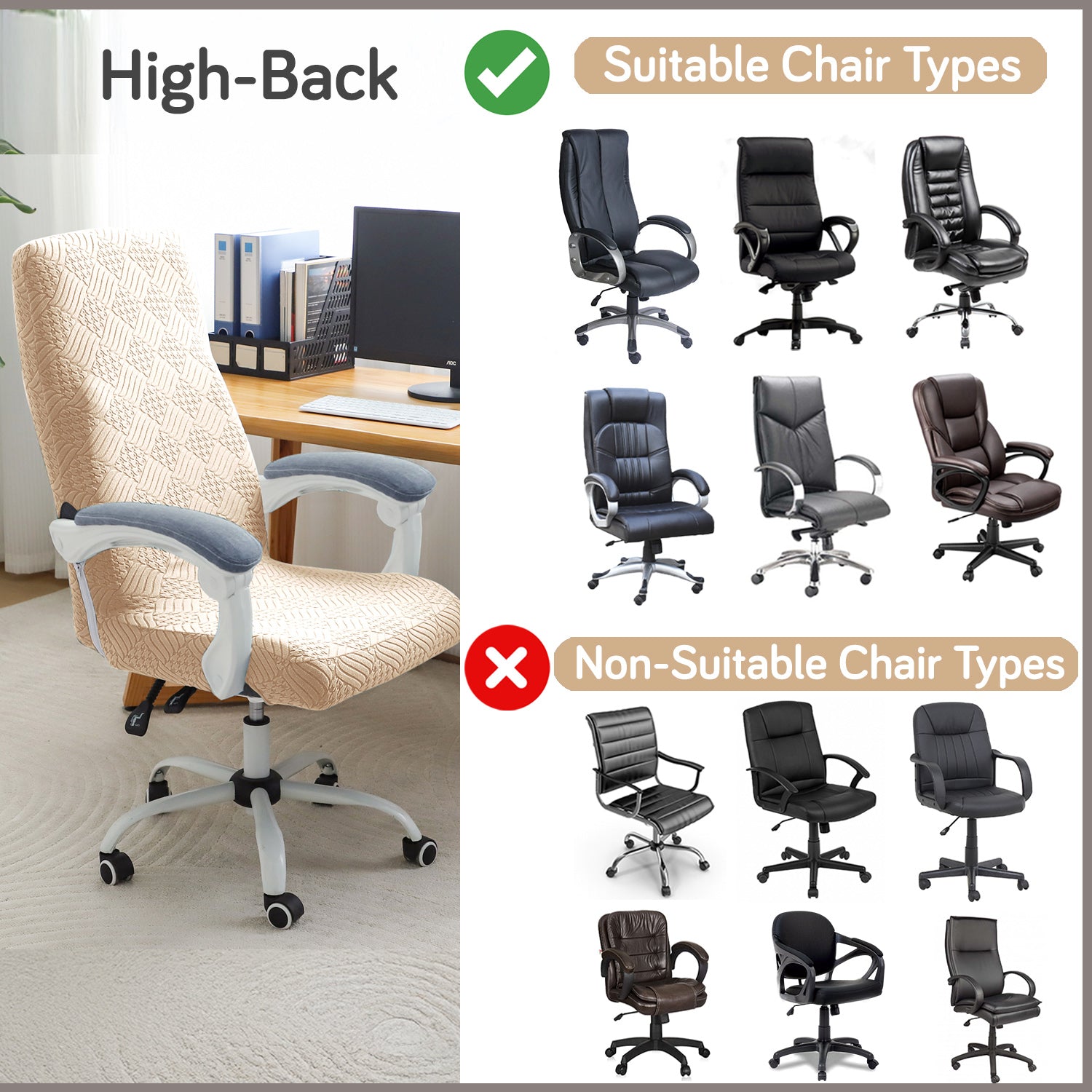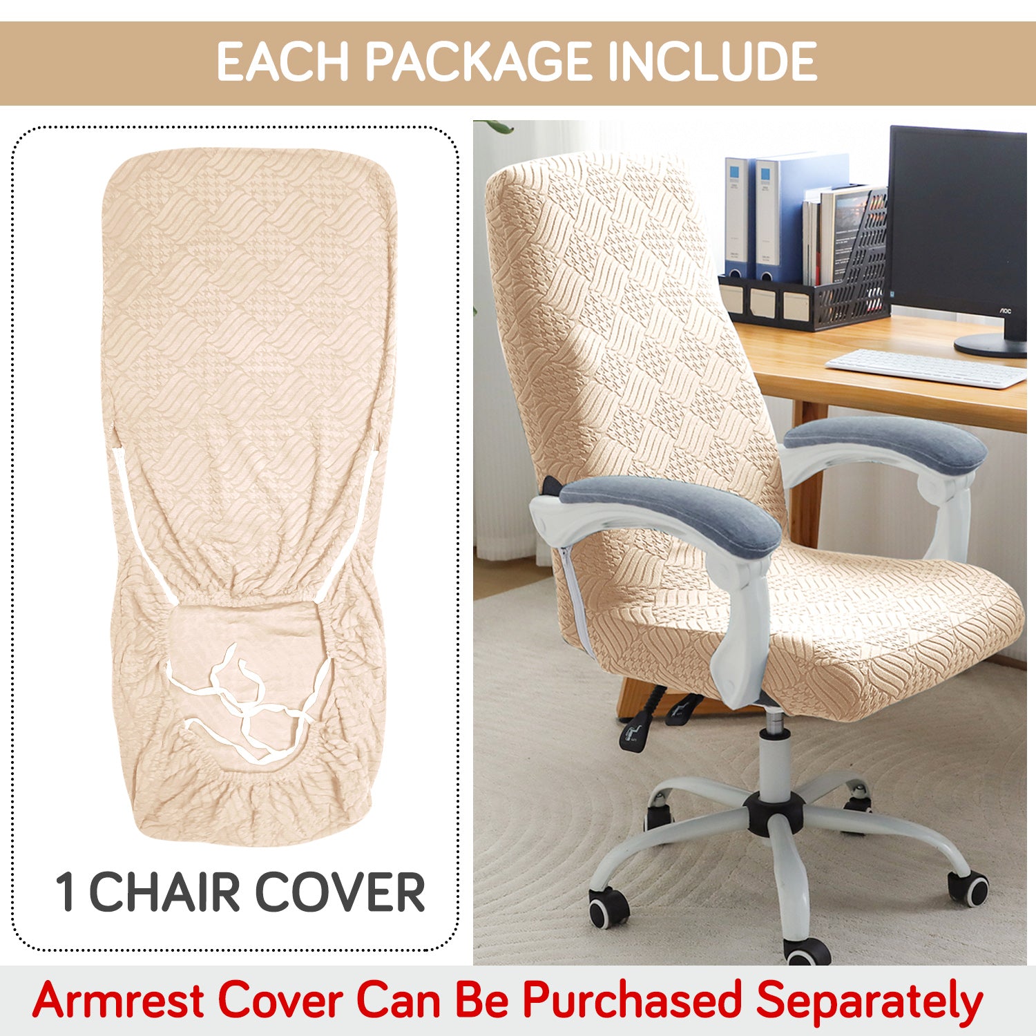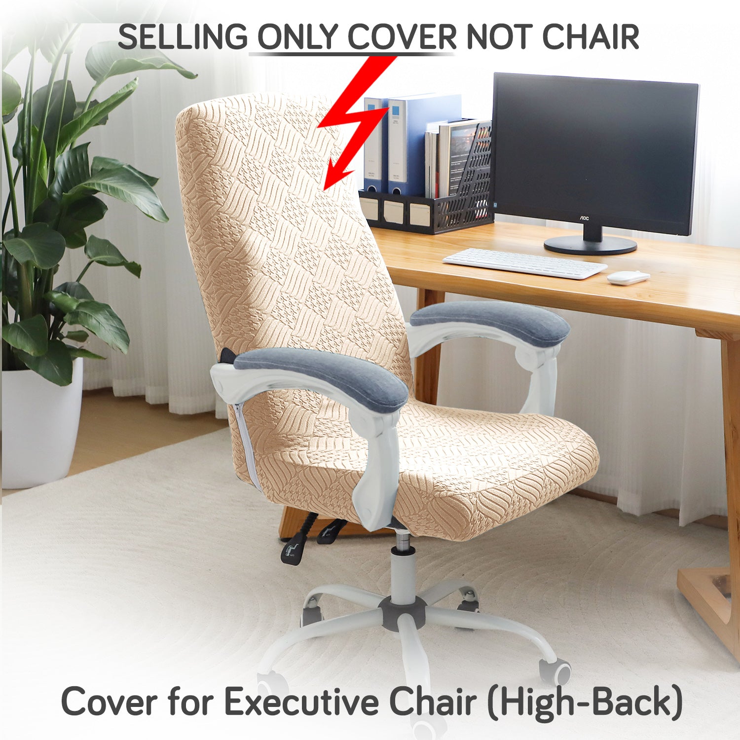 Office Chair Cover for Executive Chair (High-Back) – 170 GSM Stretchable Jacquard – Washable & Anti-Slip – Fits Big & Tall Office Chairs, Beige
