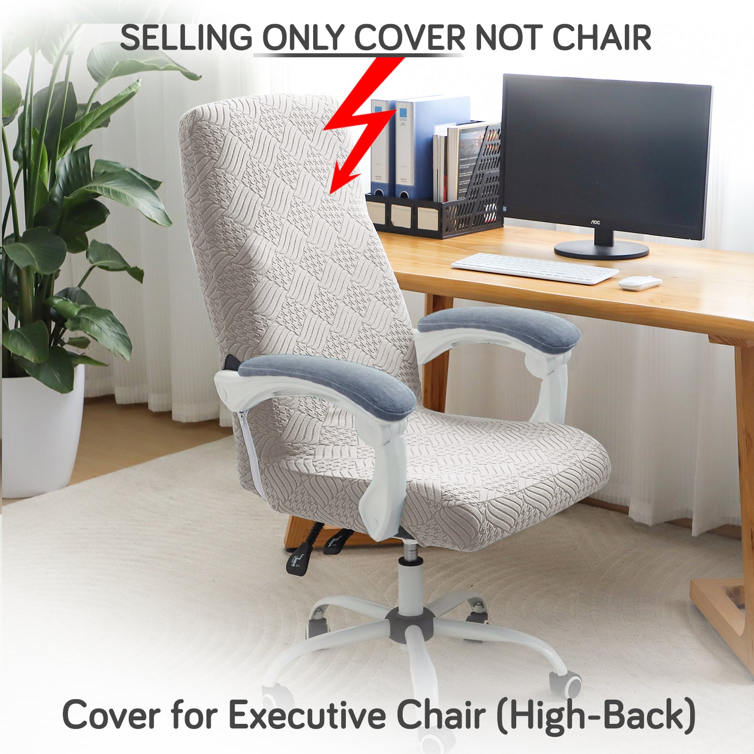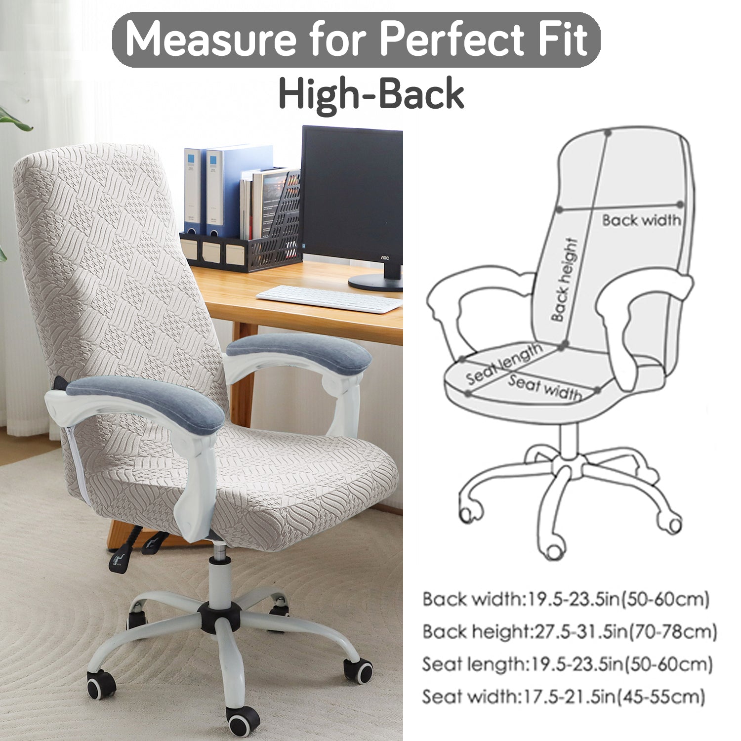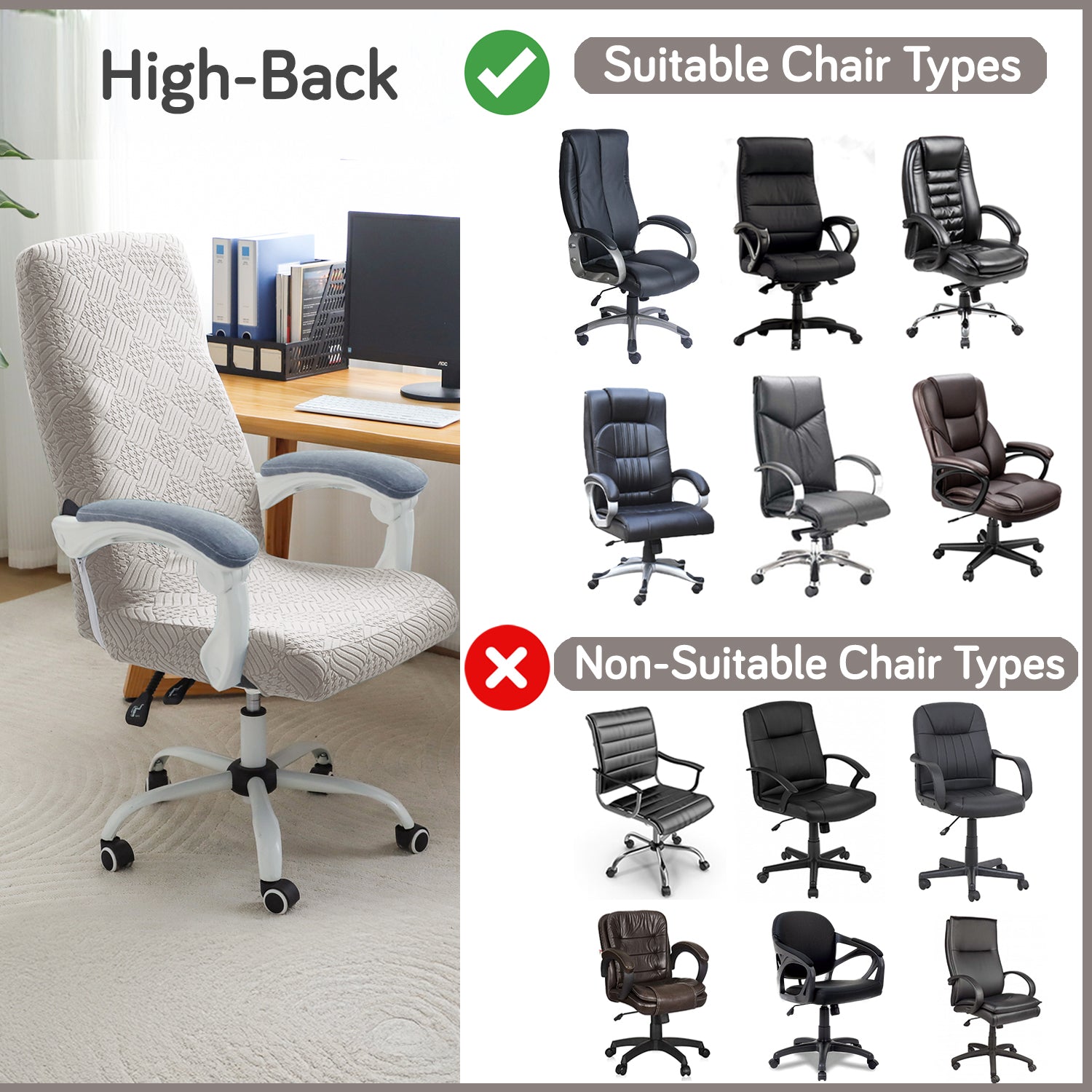 Office Chair Cover for Executive Chair (High-Back) – 170 GSM Stretchable Jacquard – Washable & Anti-Slip – Fits Big & Tall Office Chairs, Taupe Brown