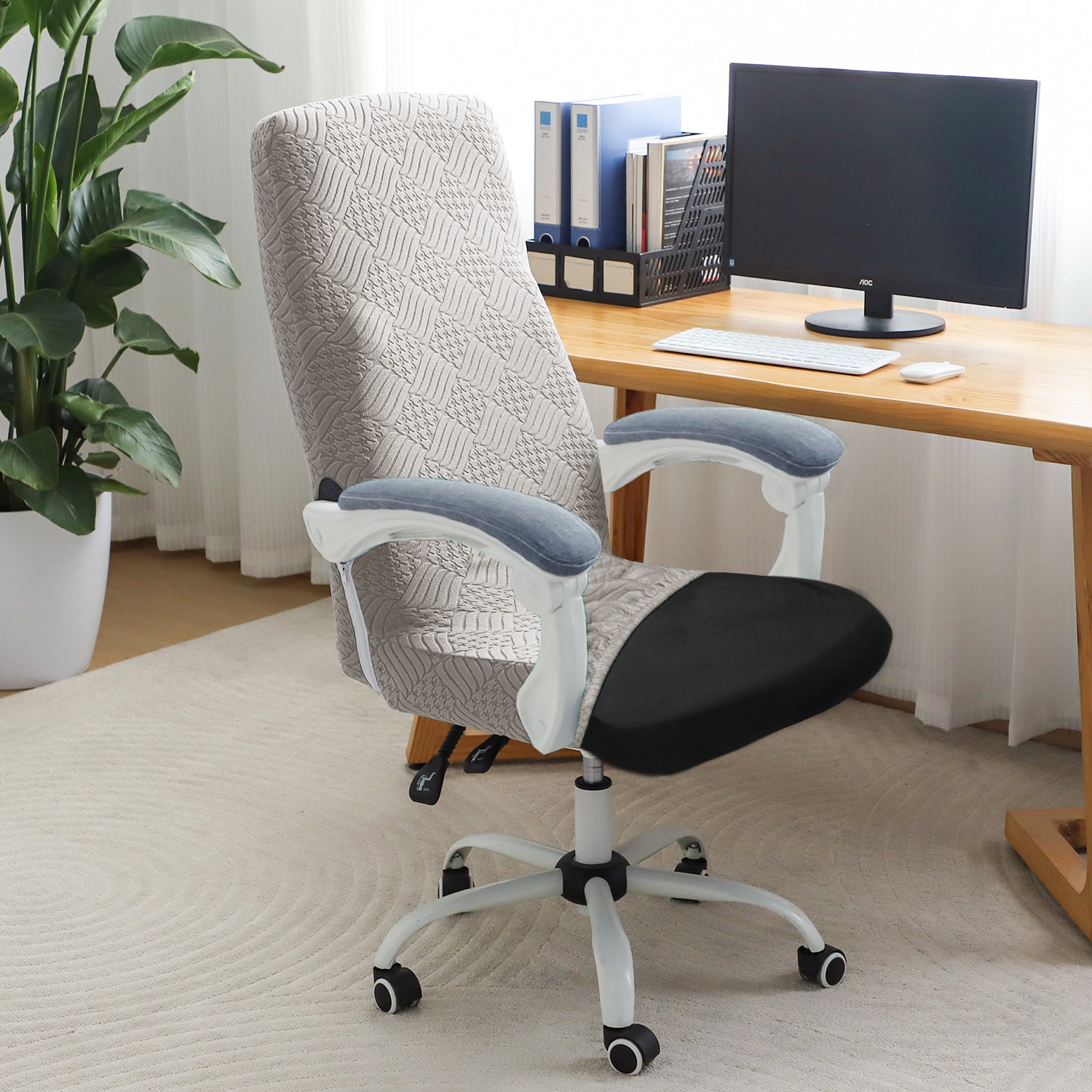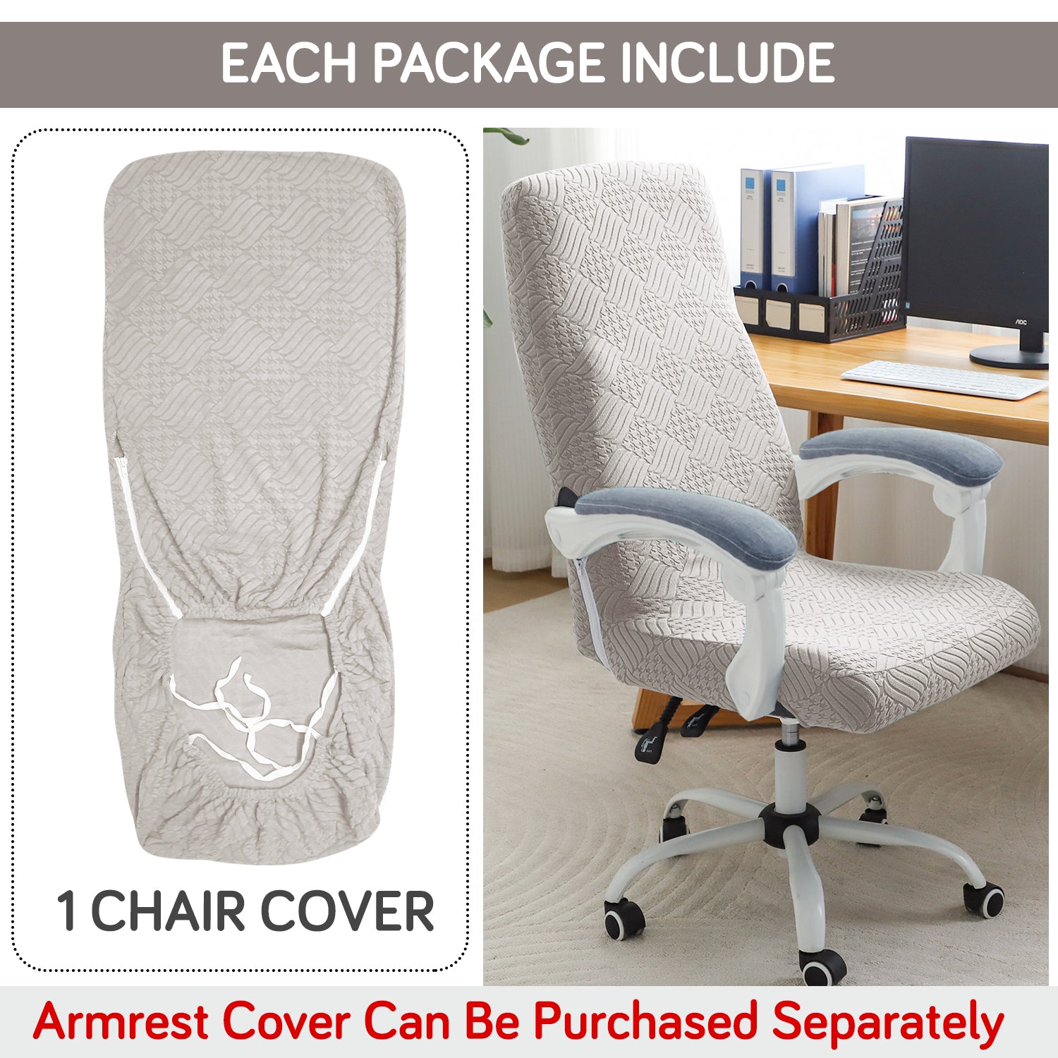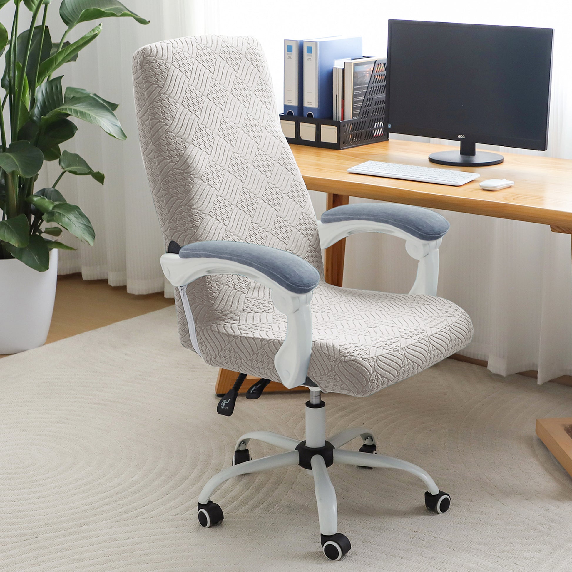 Office Chair Cover for Executive Chair (High-Back) – 170 GSM Stretchable Jacquard – Washable & Anti-Slip – Fits Big & Tall Office Chairs, Taupe Brown