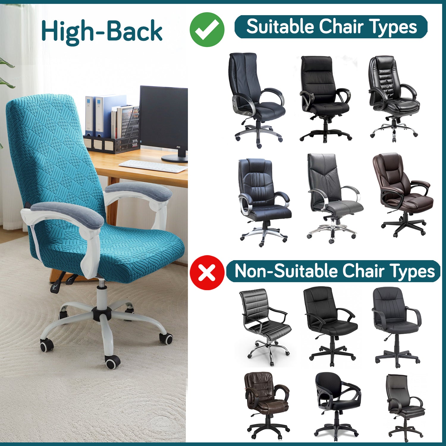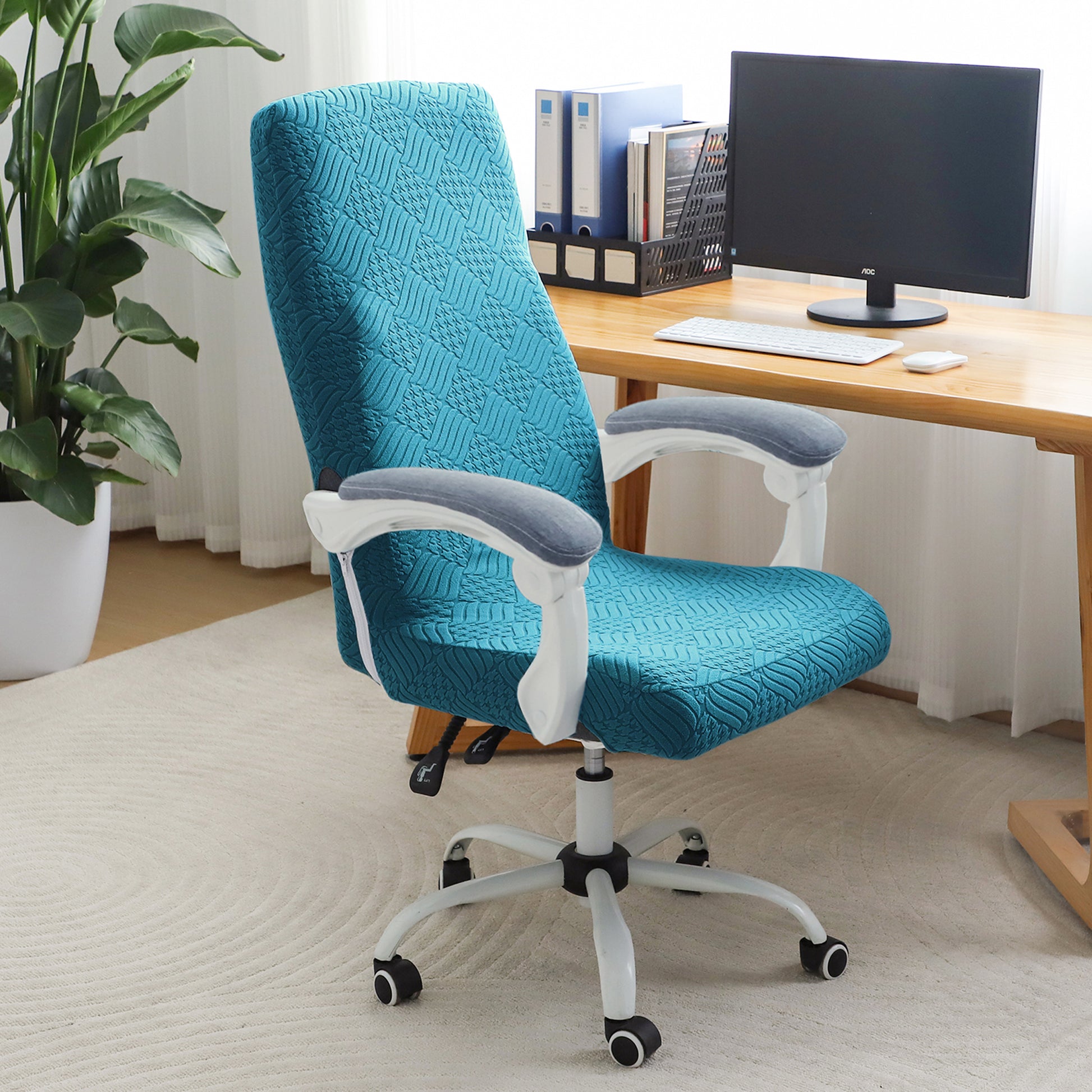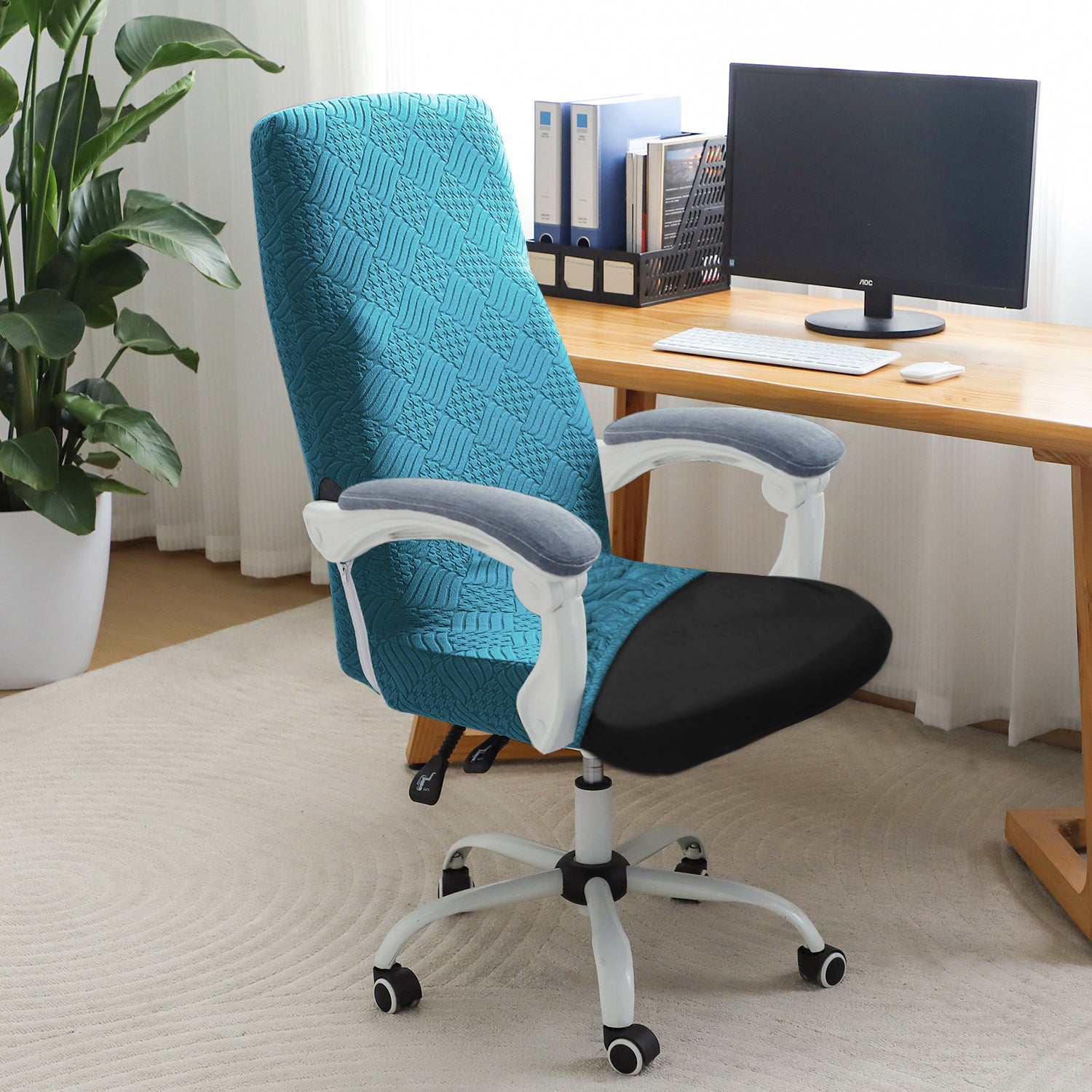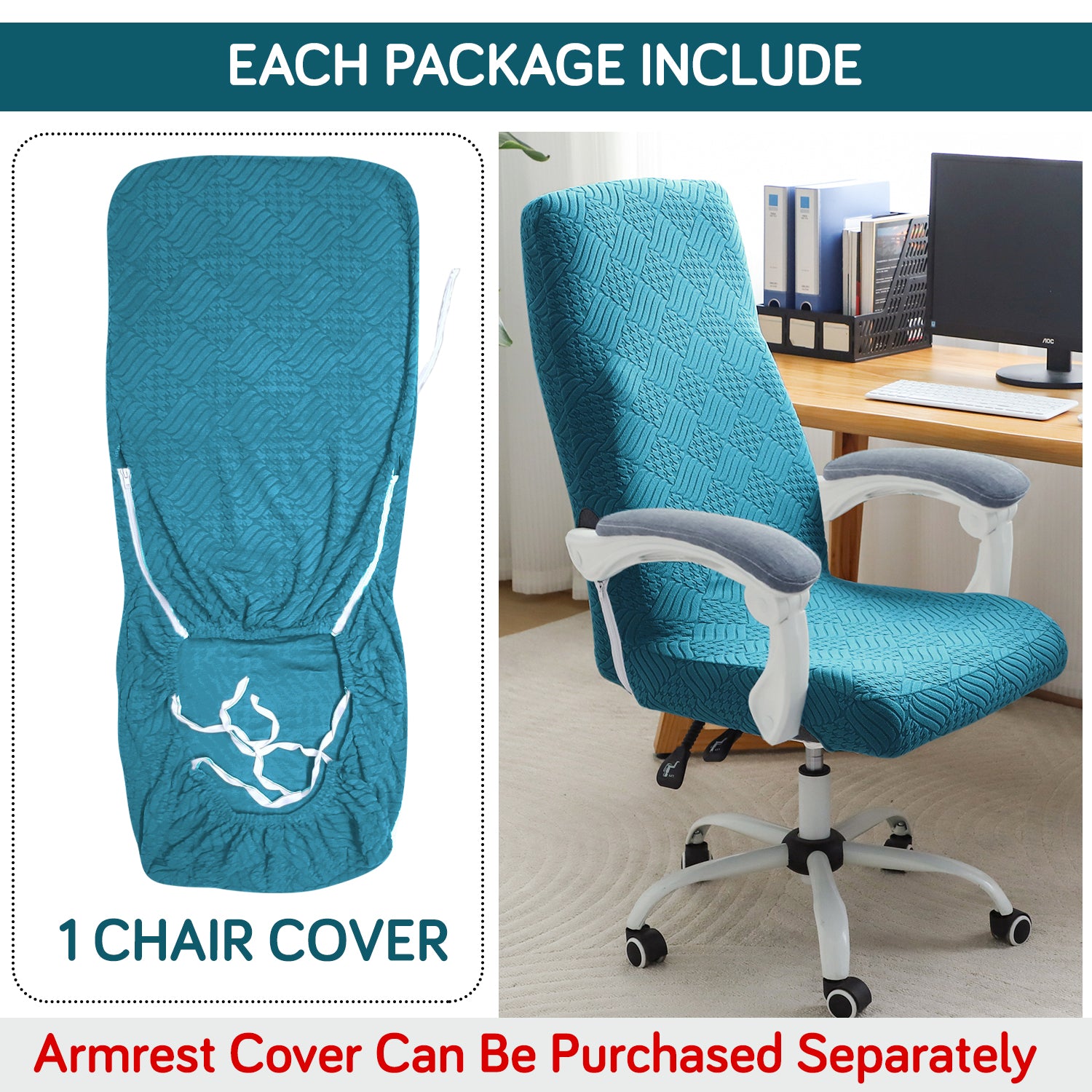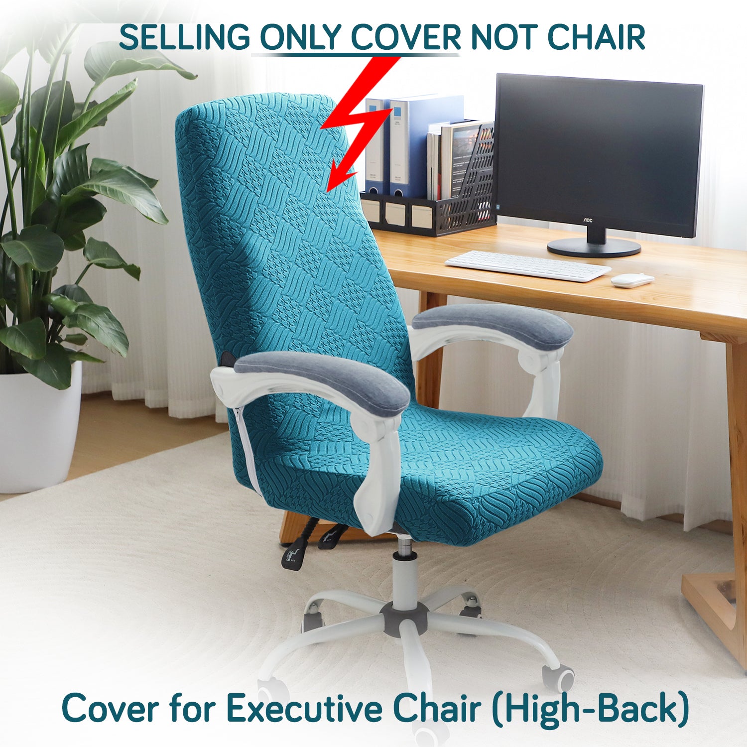 Office Chair Cover for Executive Chair (High-Back) – 170 GSM Stretchable Jacquard – Washable & Anti-Slip – Fits Big & Tall Office Chairs, Turquoise