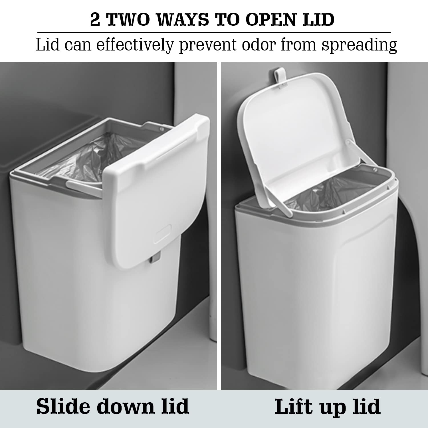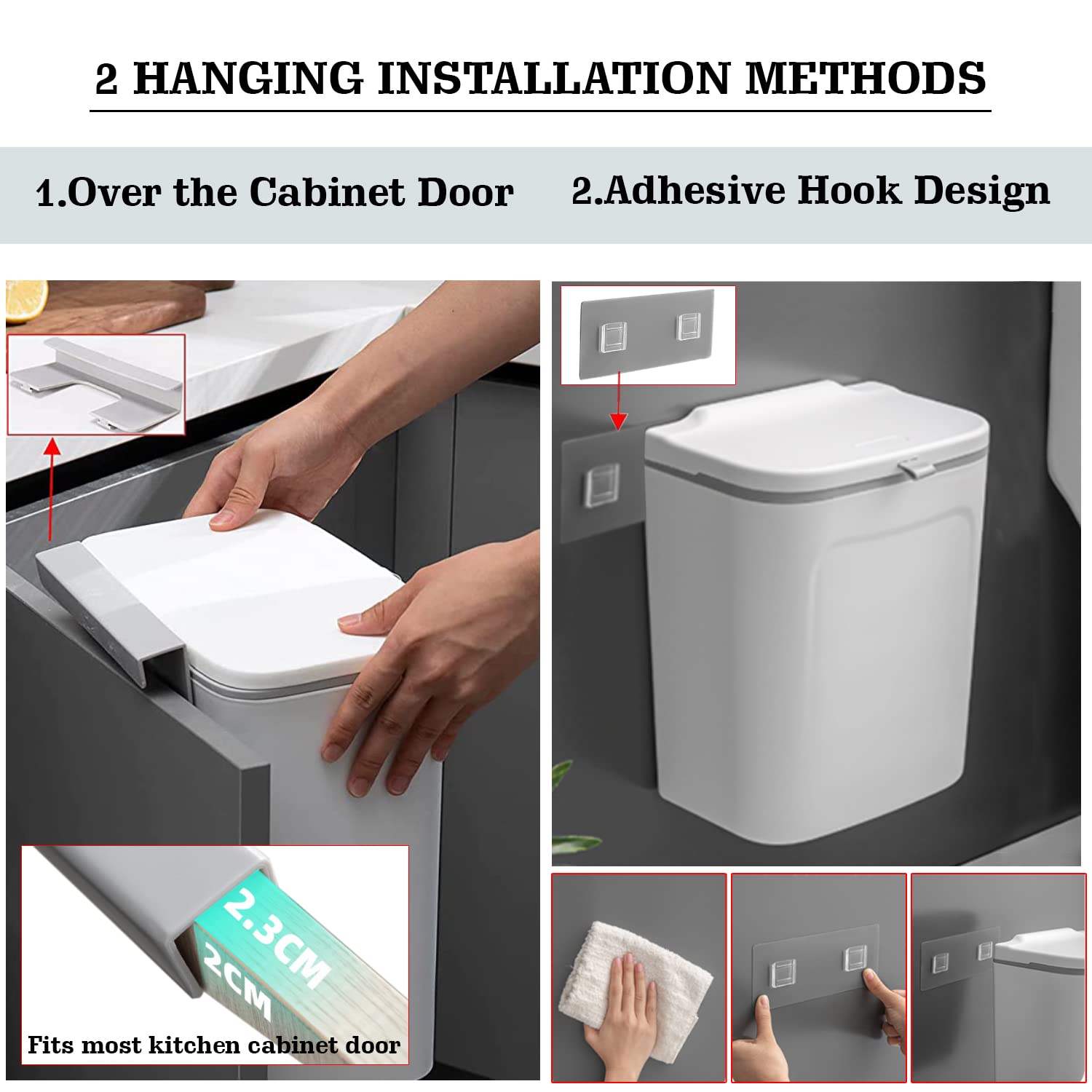 · 2-IN-1 WALL MOUNT OR HANG – HOKIPO self-adhesive dustbin can be wall-mounted or hung over a cabinet door.