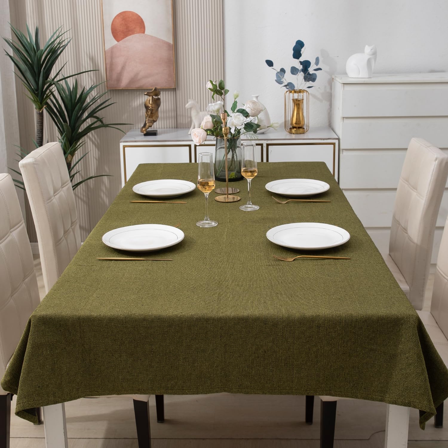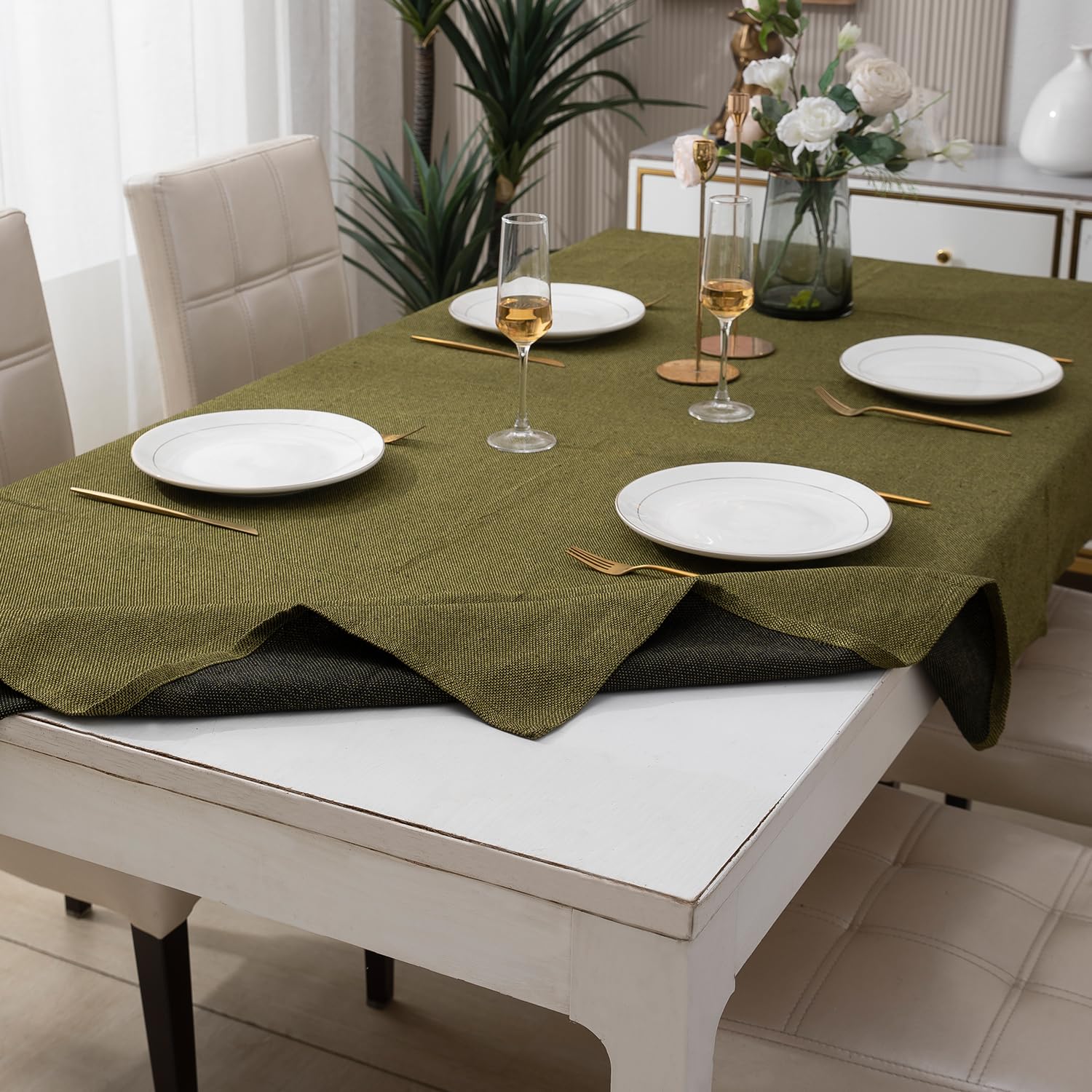 Poly Jute Dining Table Cover, Mehndi Green
