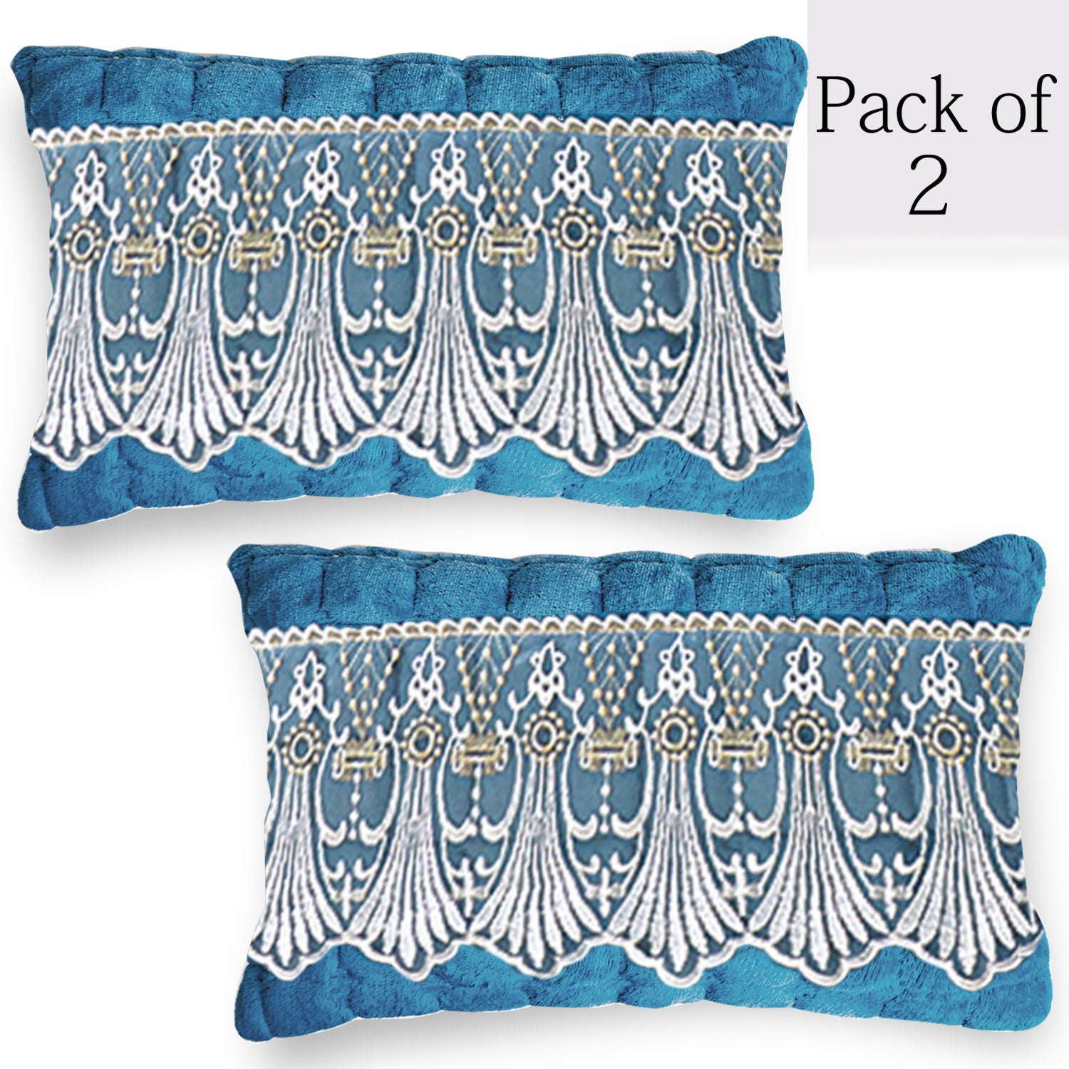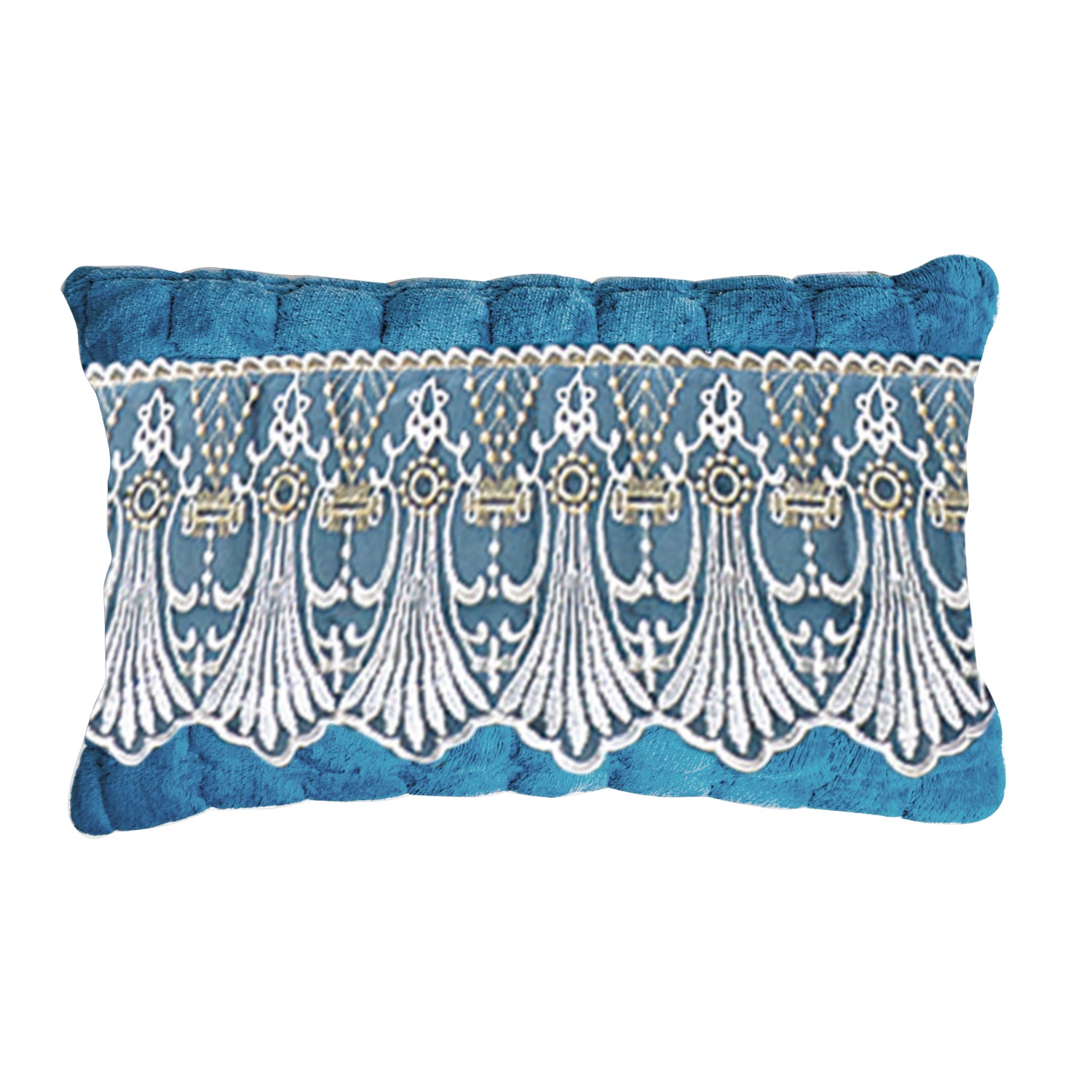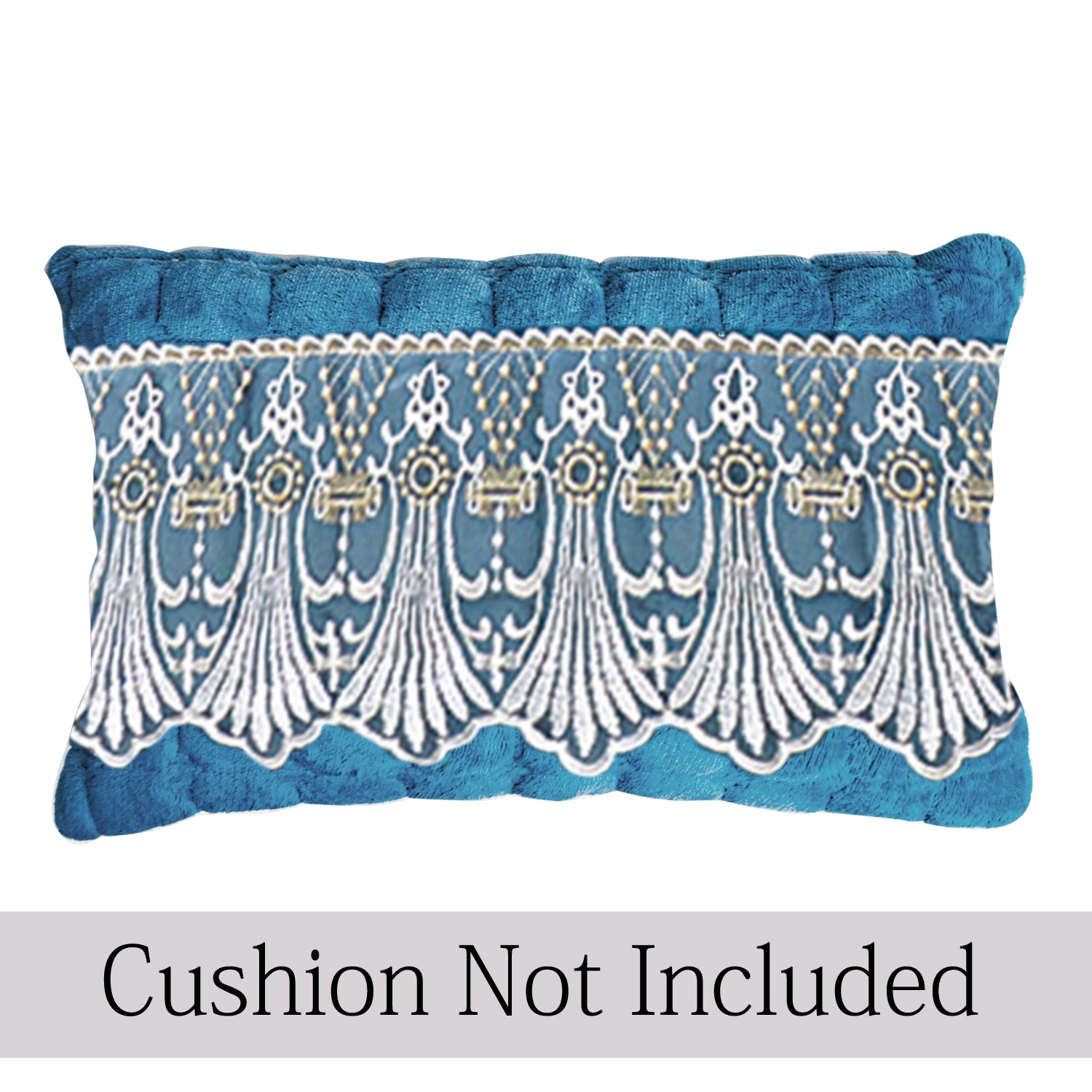 Premium Milk Velvet Sofa Cushion Cover with Lace Design, Celdaon Blue