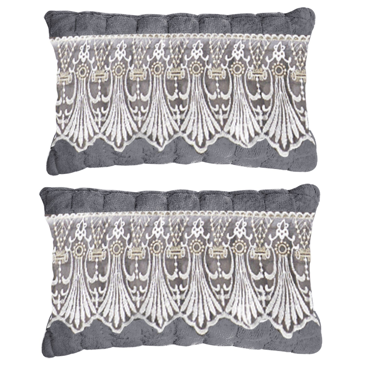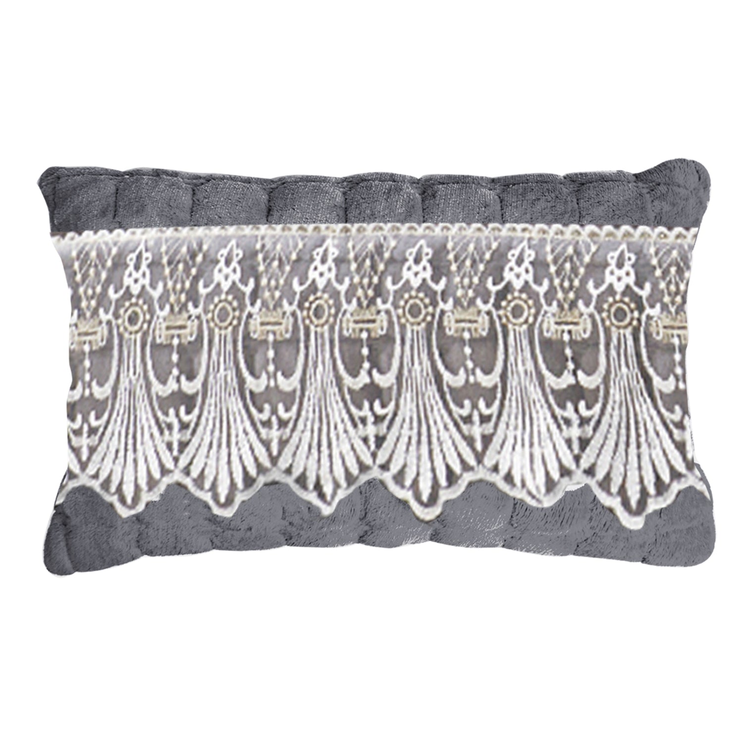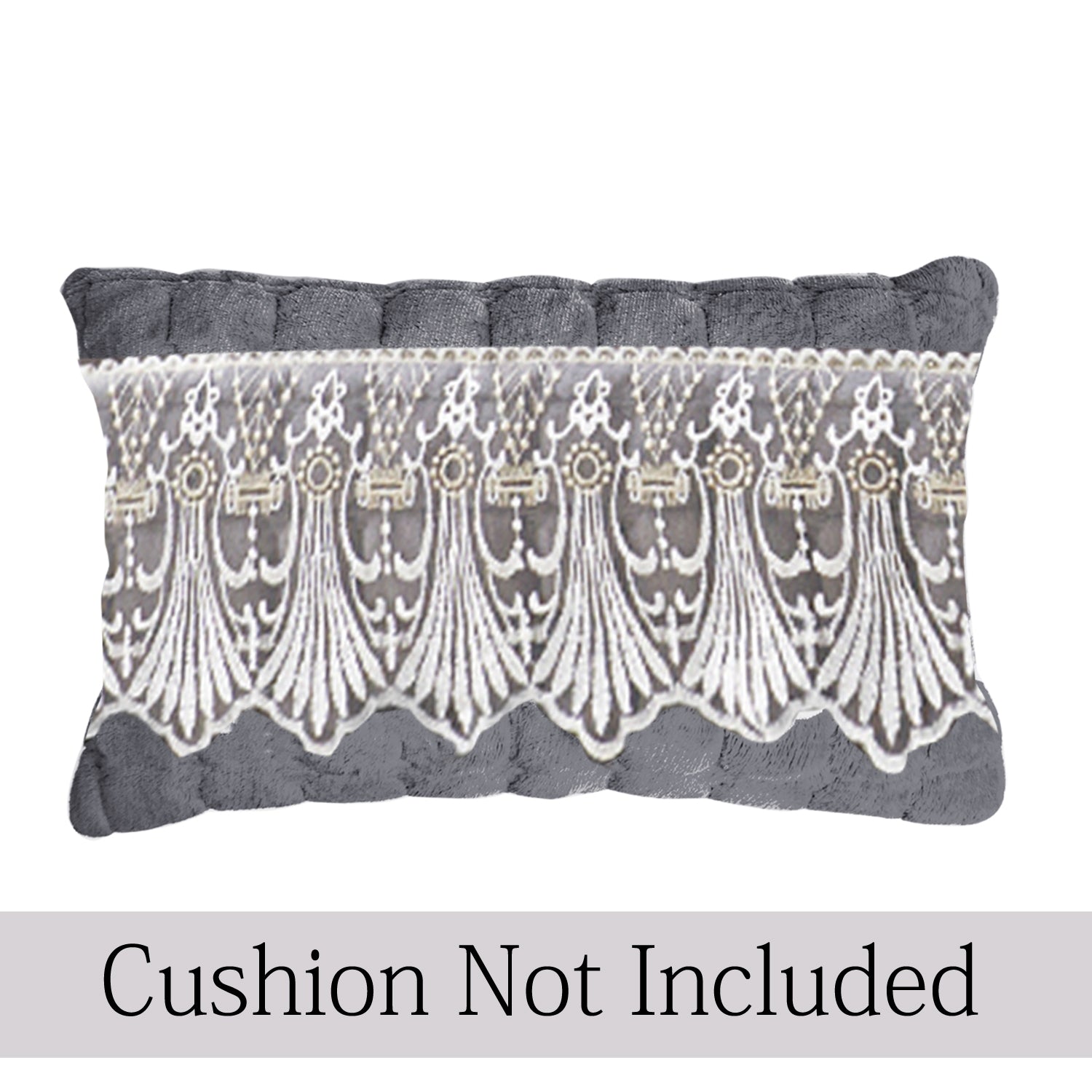 Premium Milk Velvet Sofa Cushion Cover with Lace Design, Porpoise Grey