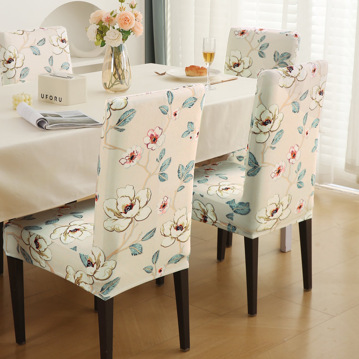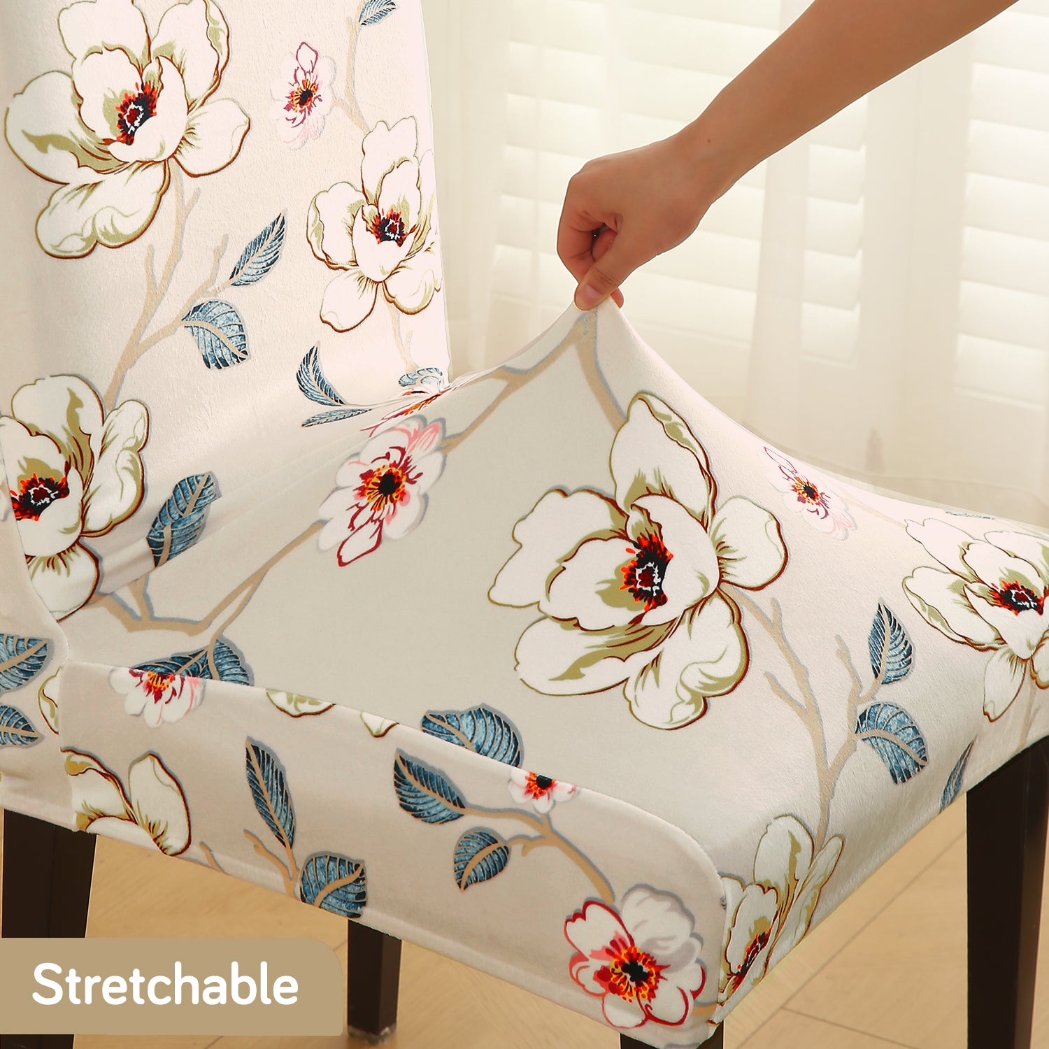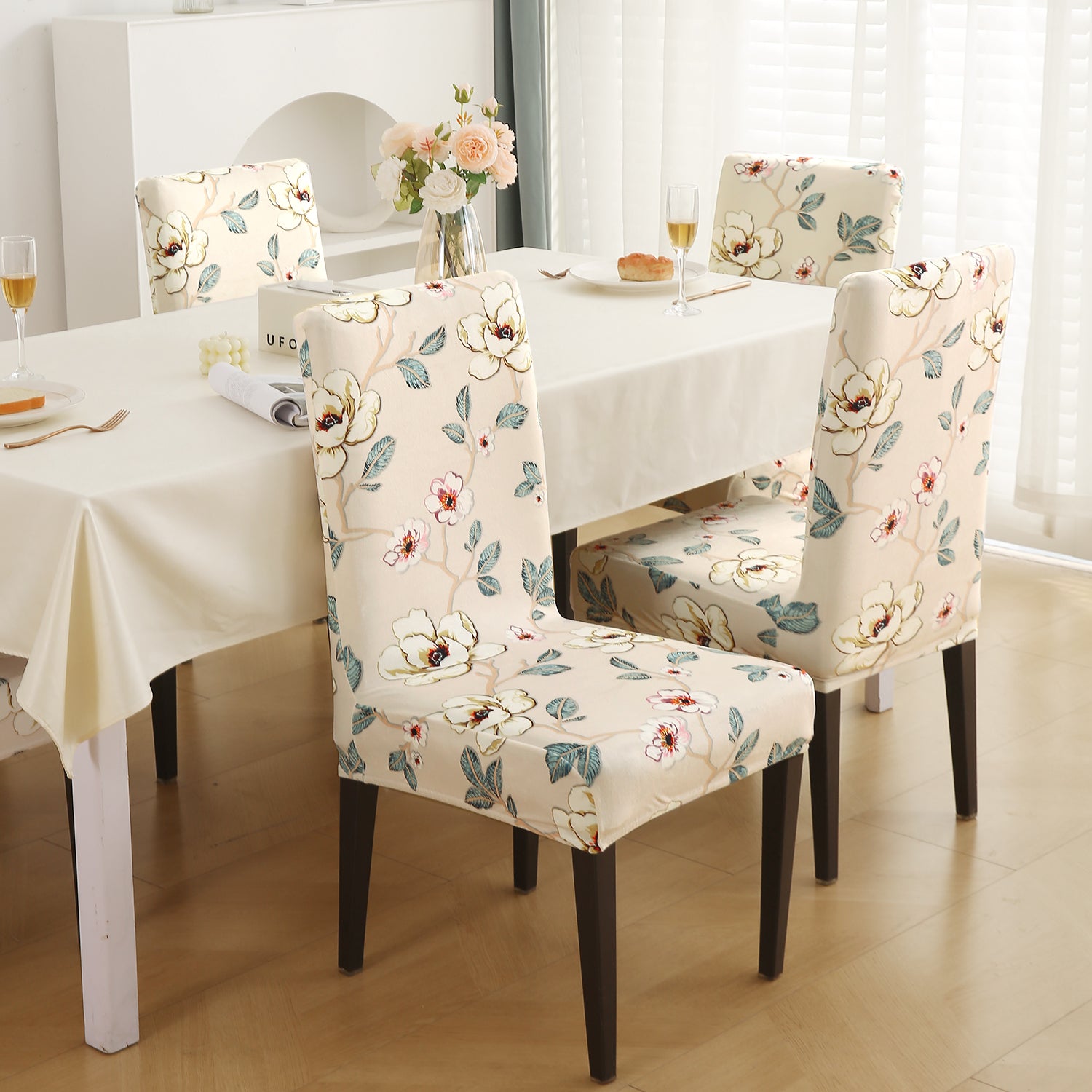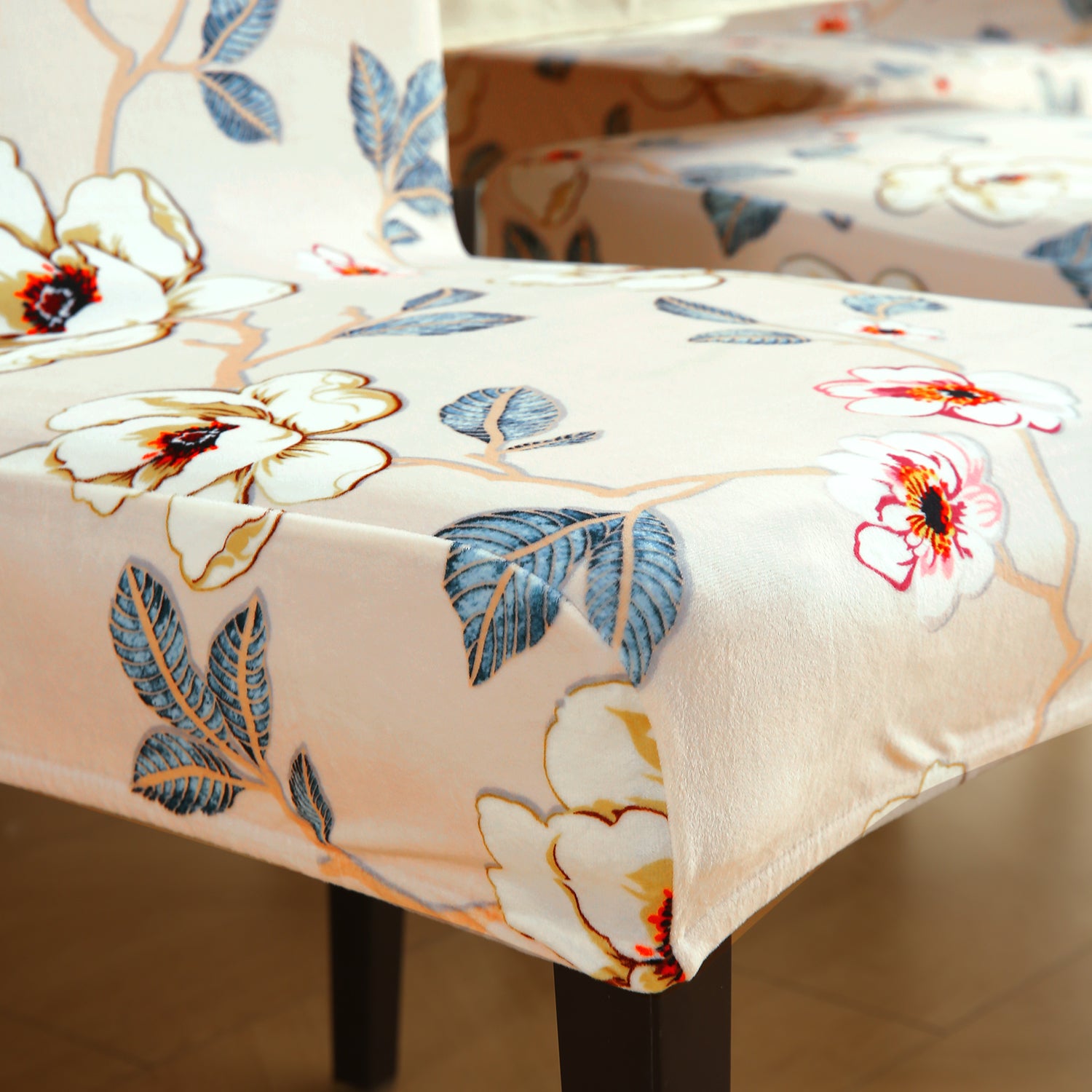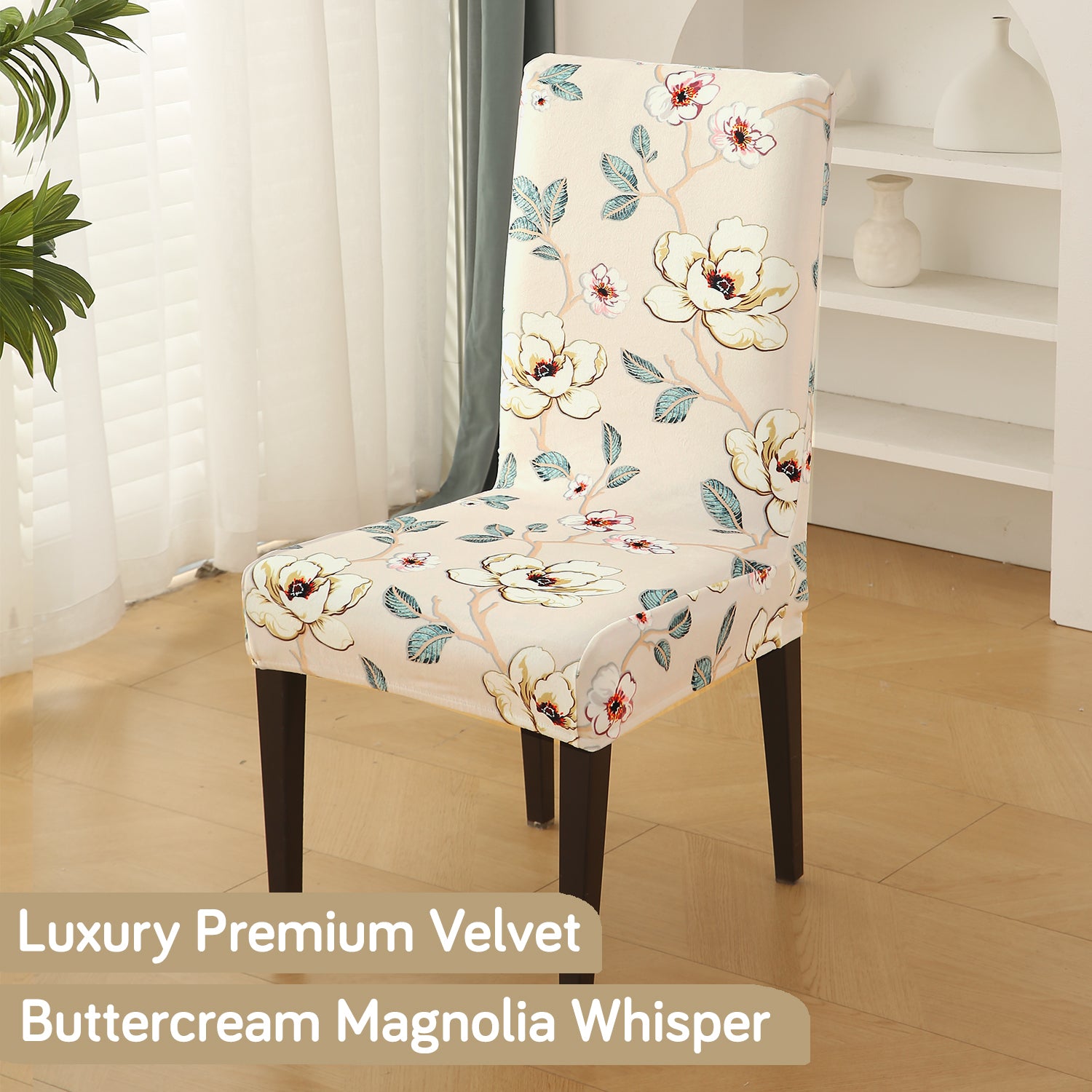 Premium Printed Velvet Dining Chair Cover Set, Buttercream Magnolia Whisper