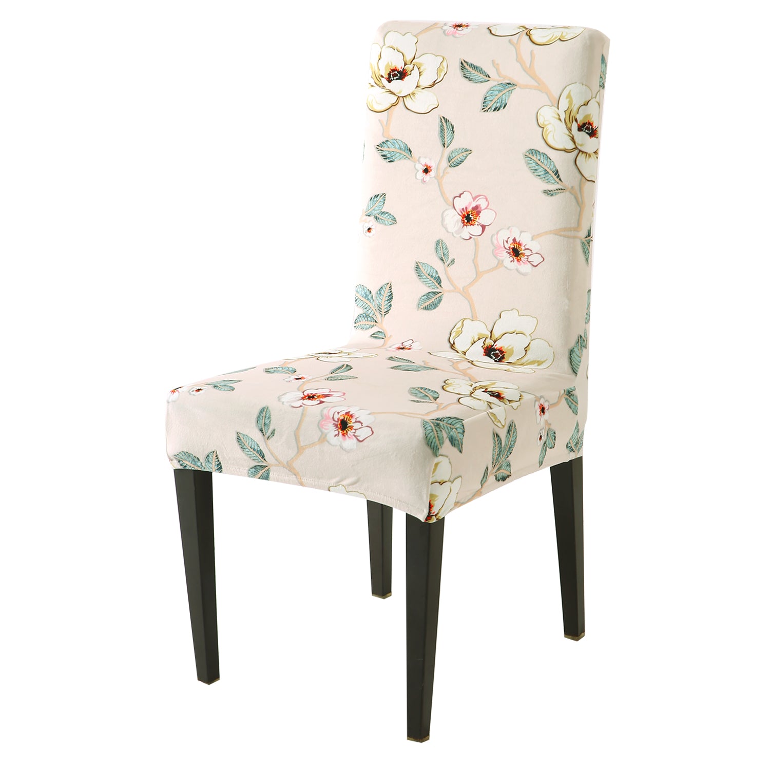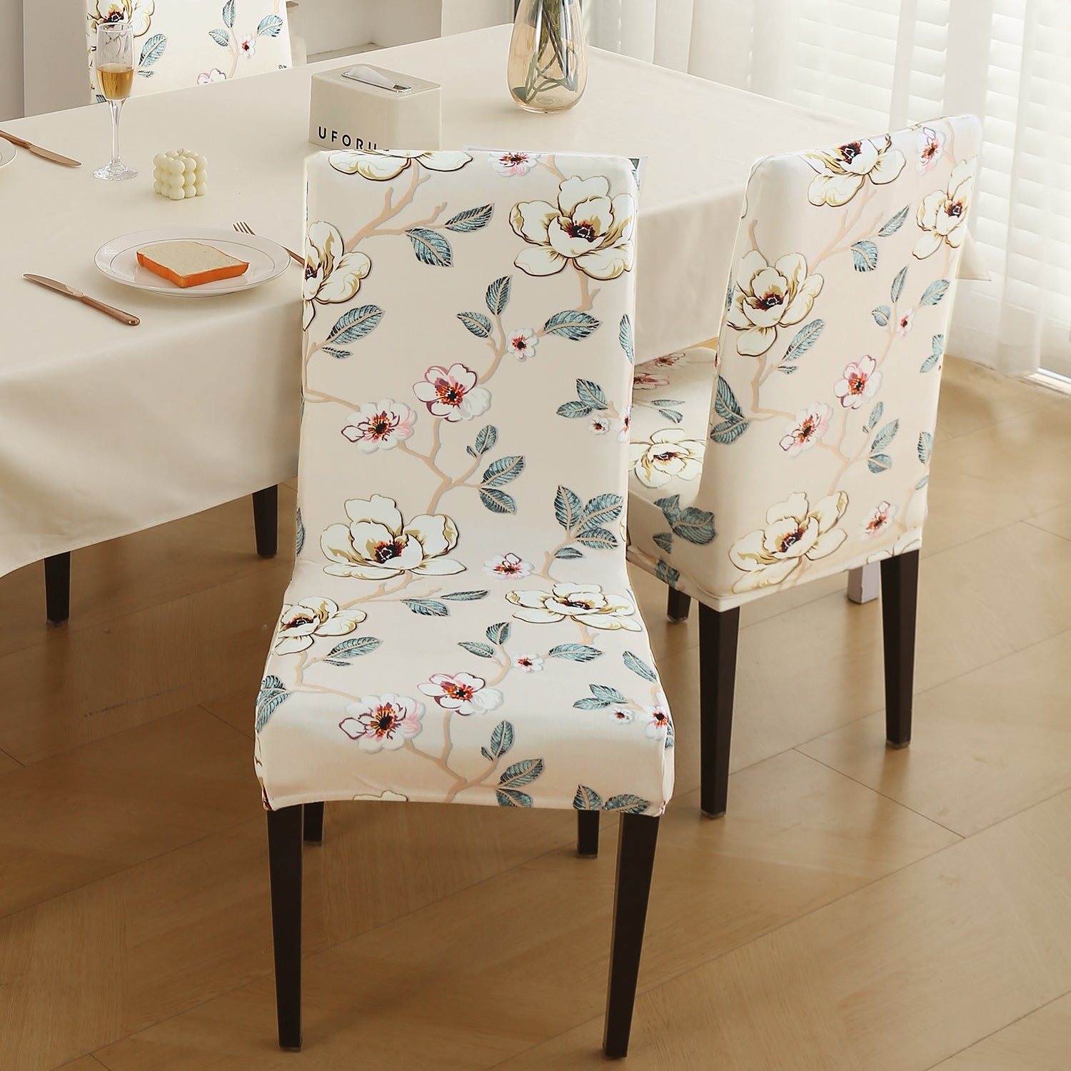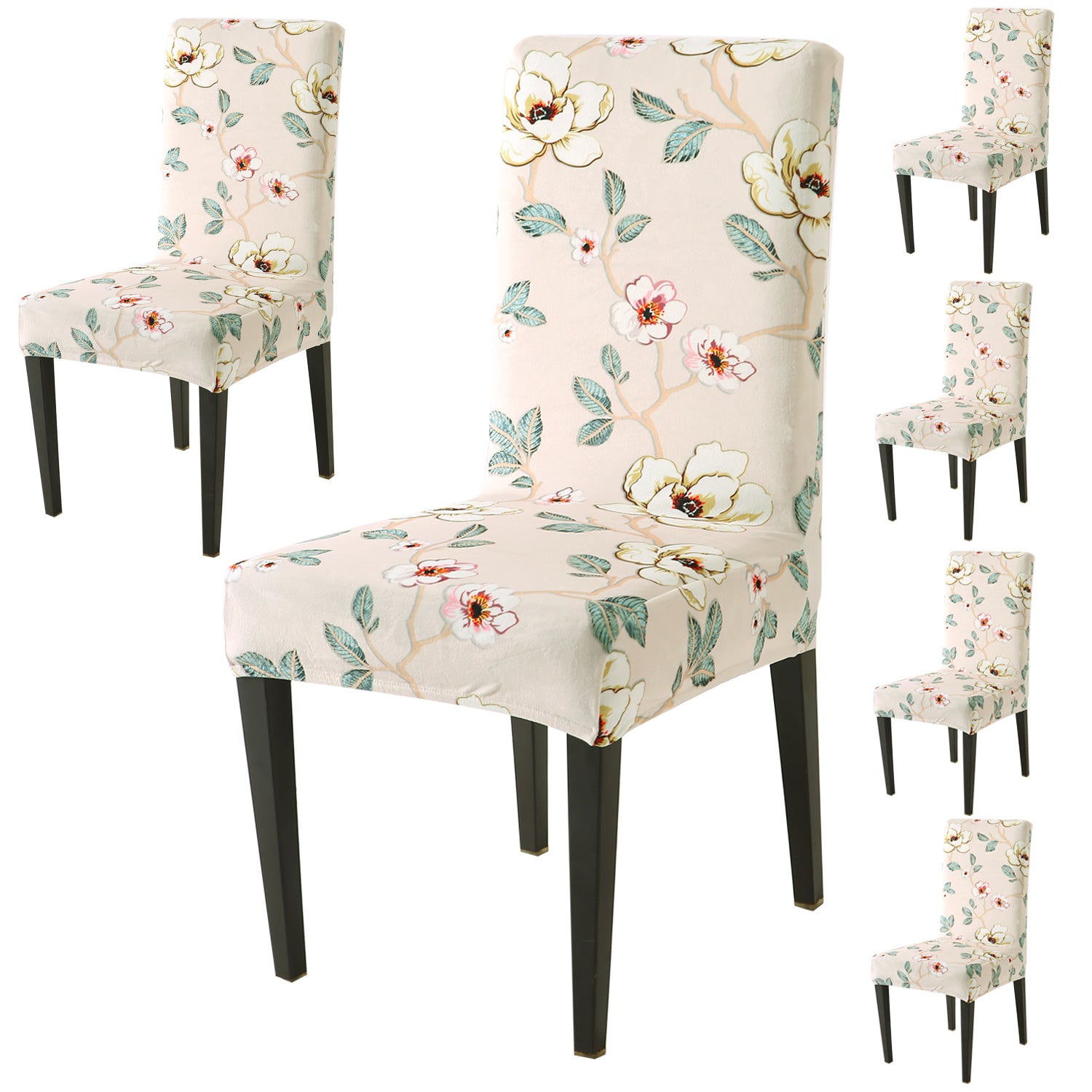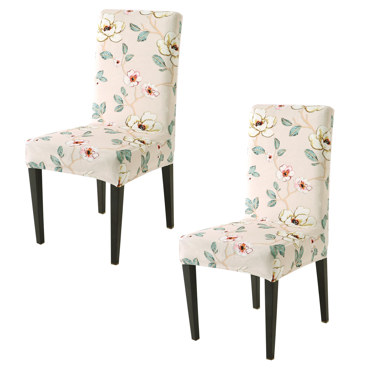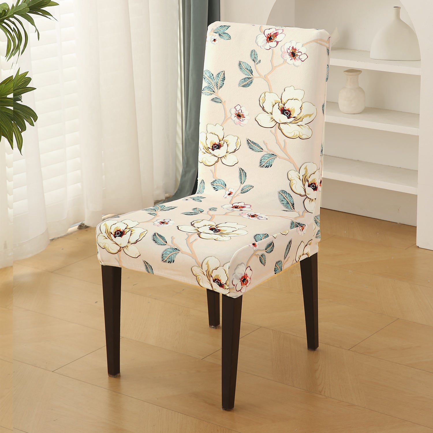 Premium Printed Velvet Dining Chair Cover Set, Buttercream Magnolia Whisper