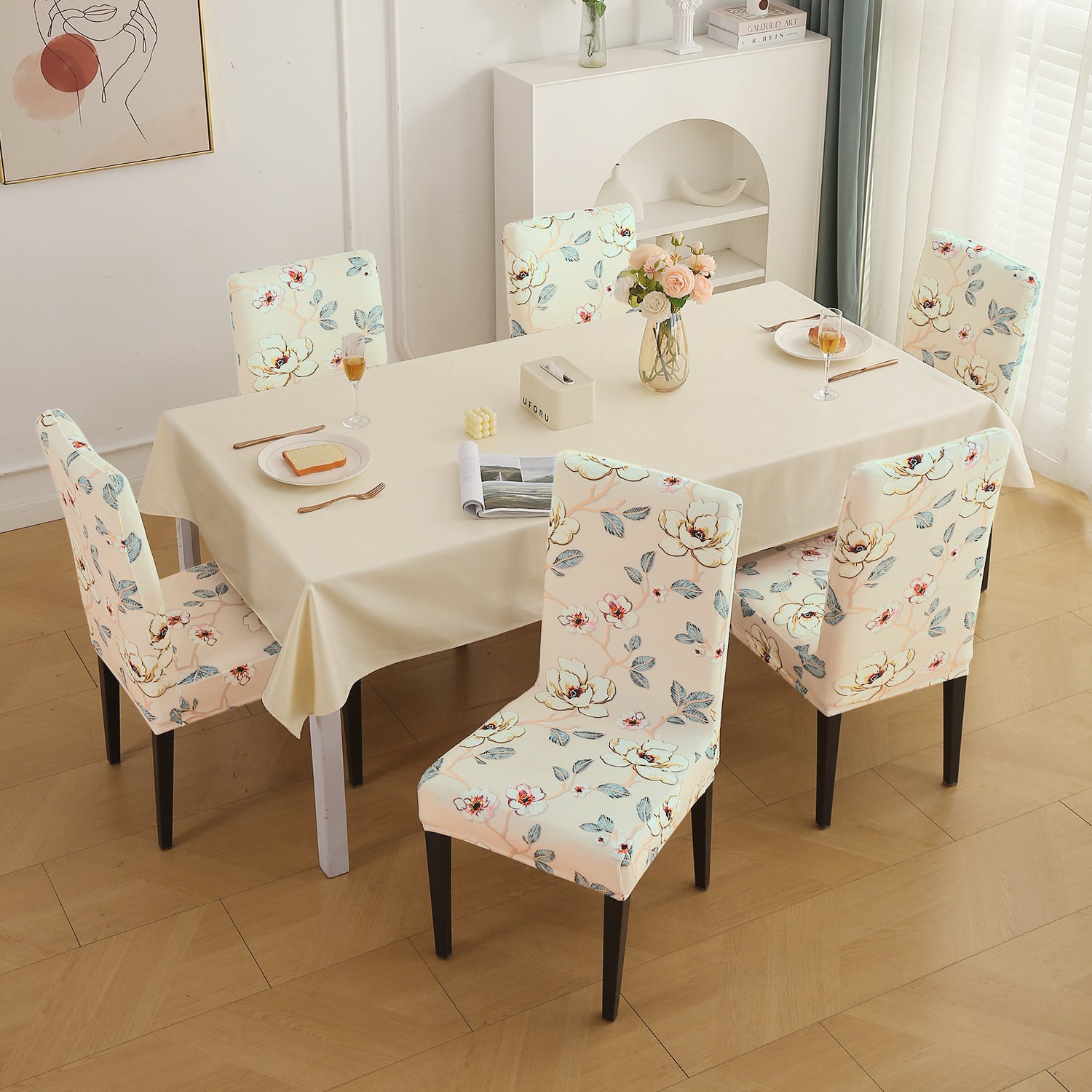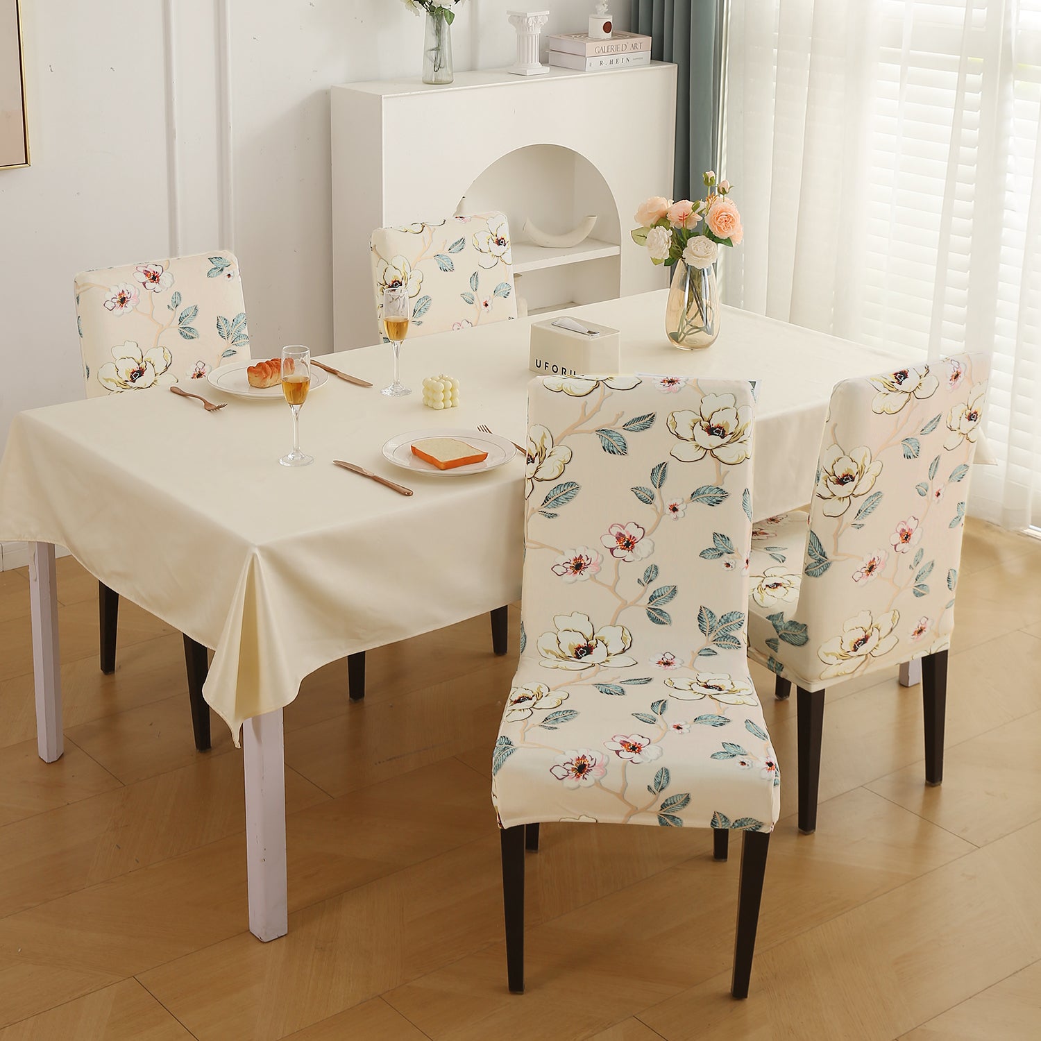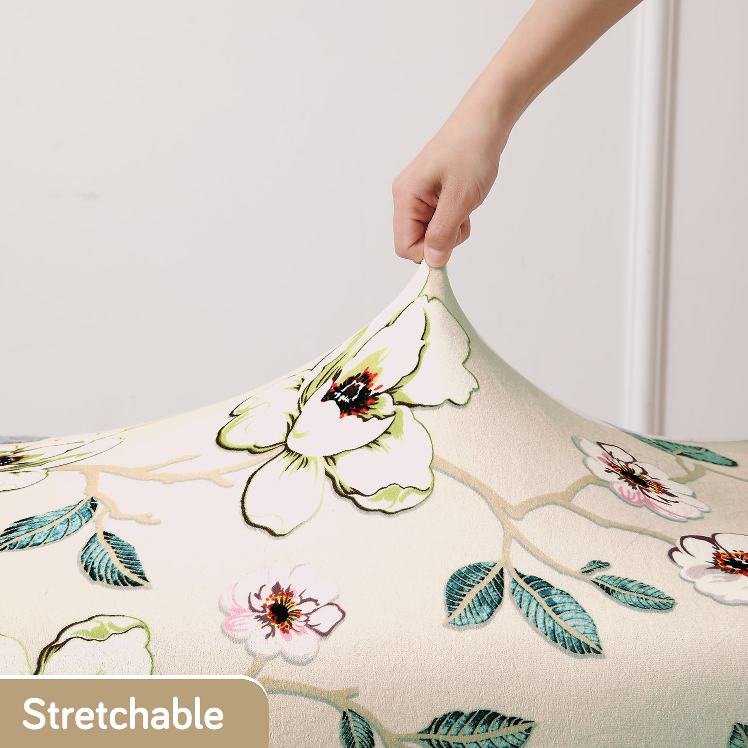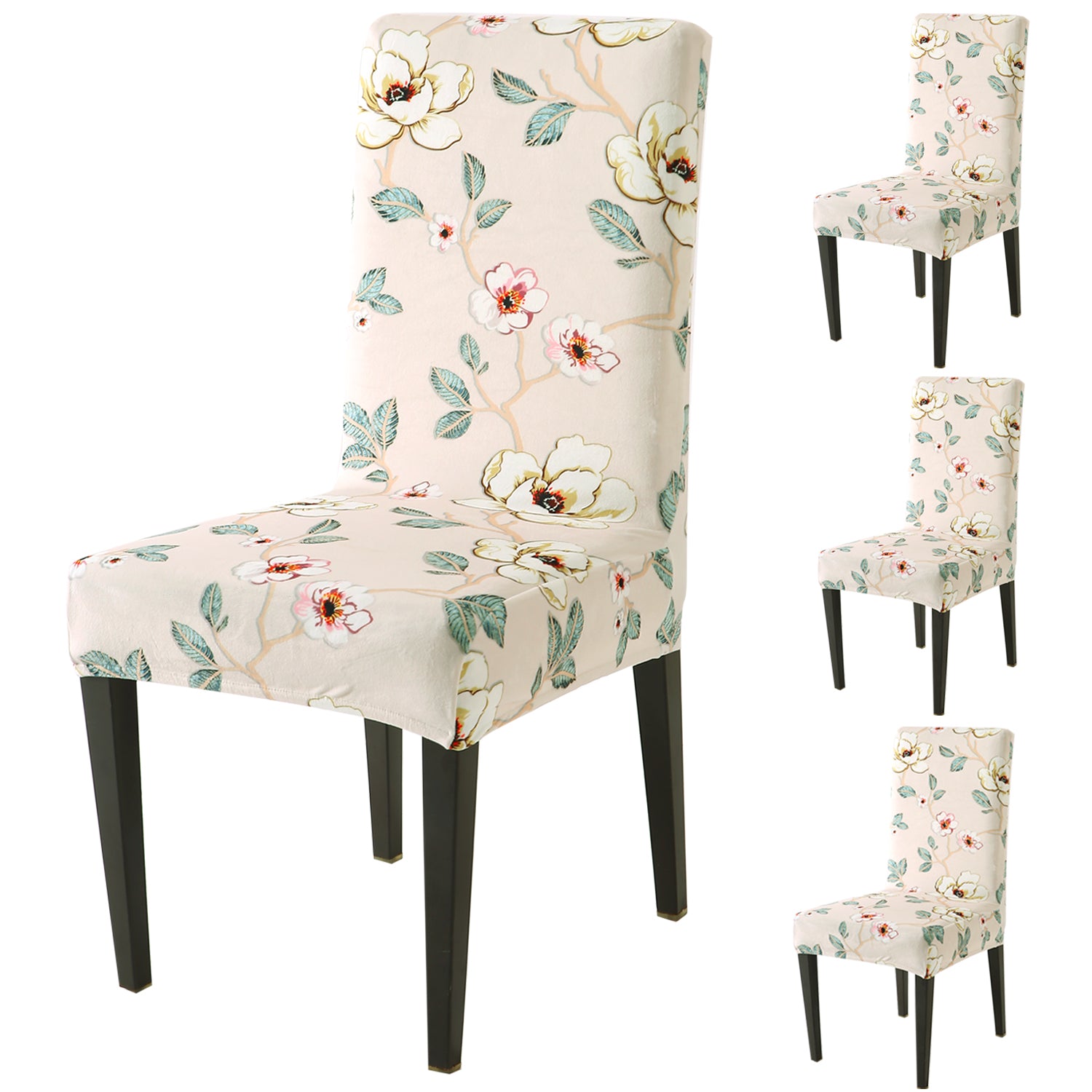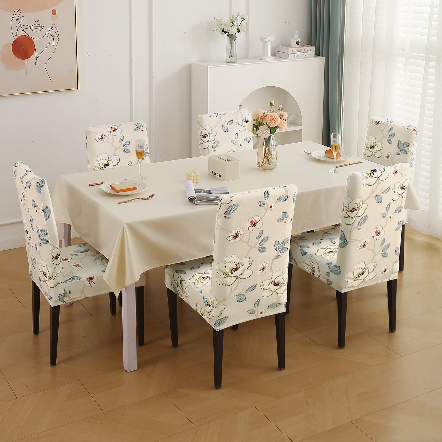 Premium Printed Velvet Dining Chair Cover Set, Buttercream Magnolia Whisper