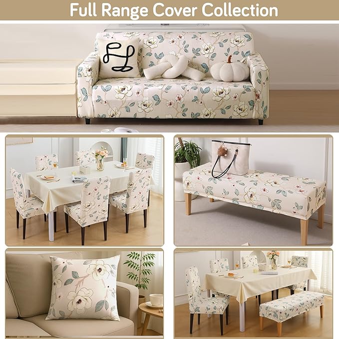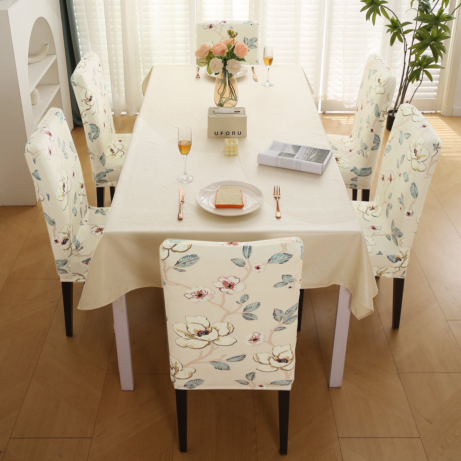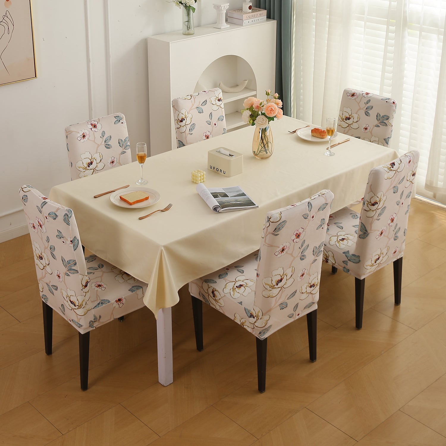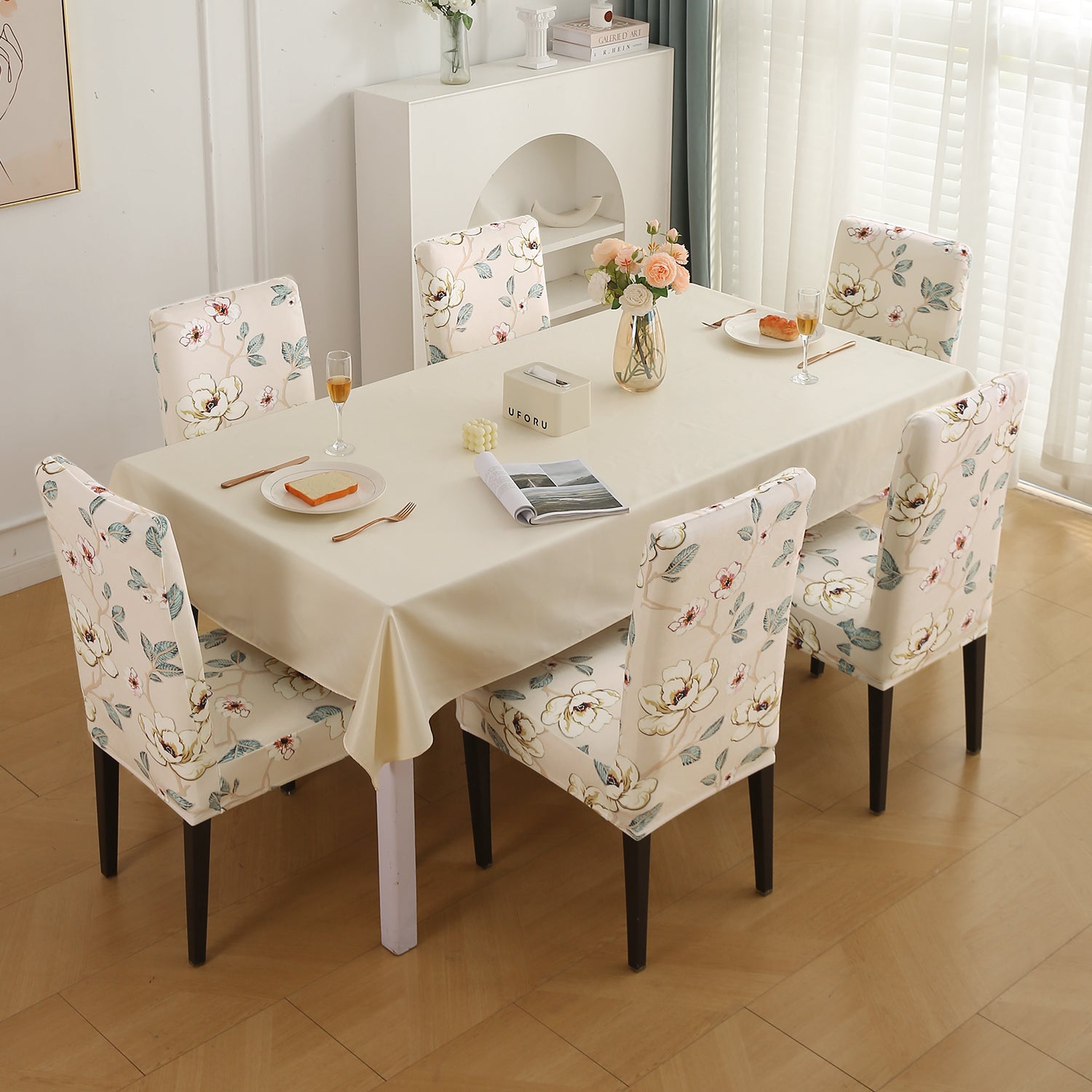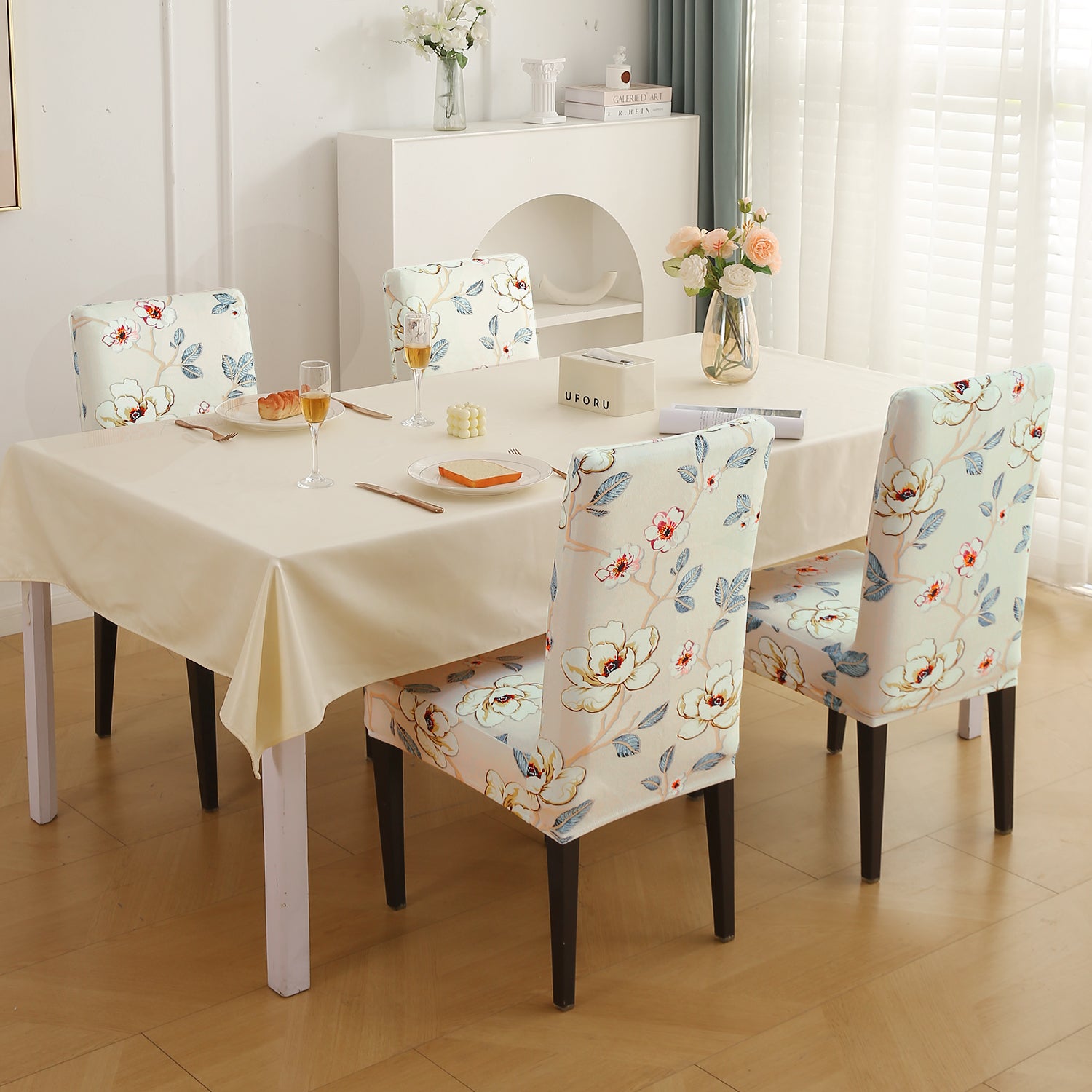 Premium Printed Velvet Dining Chair Cover Set, Buttercream Magnolia Whisper