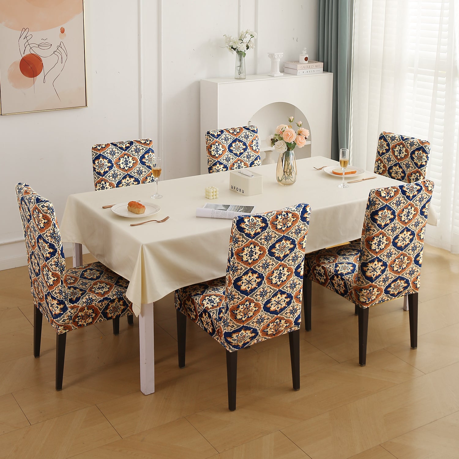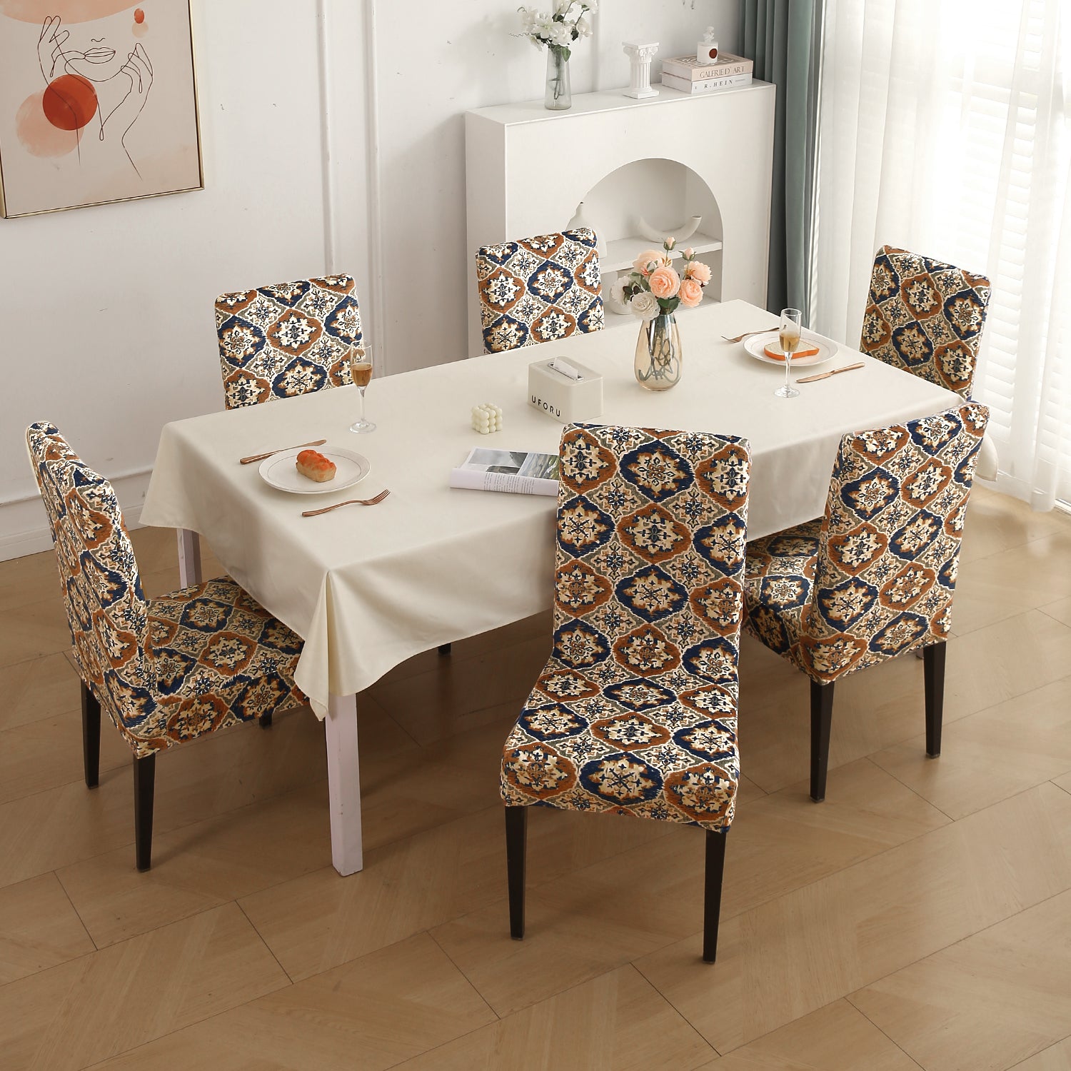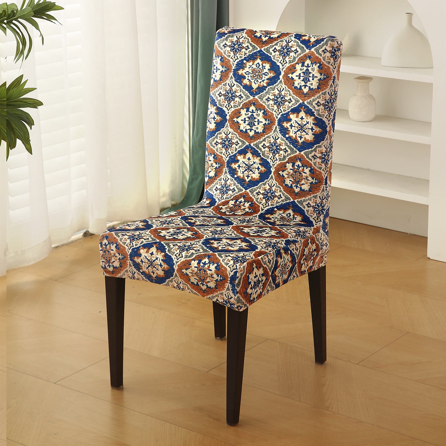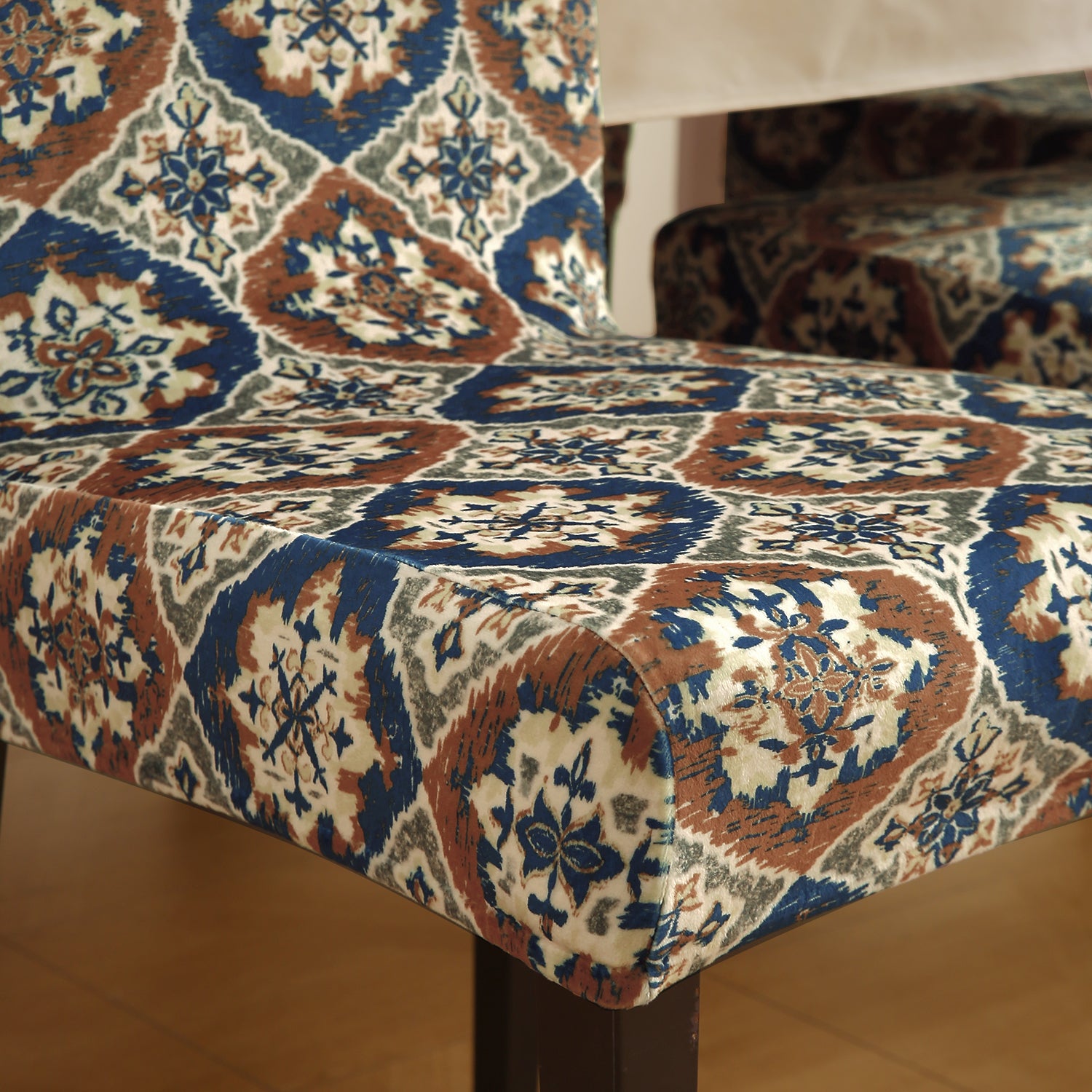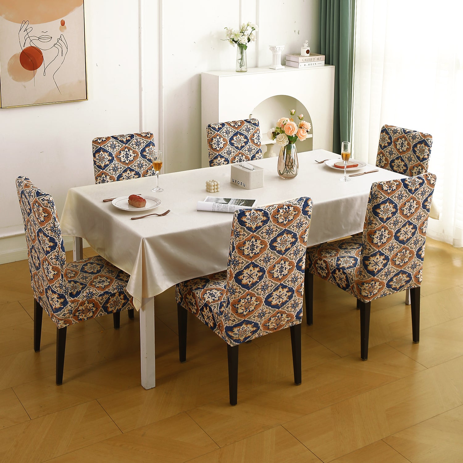 Premium Printed Velvet Dining Chair Cover Set, Indigo Moroccan Charm