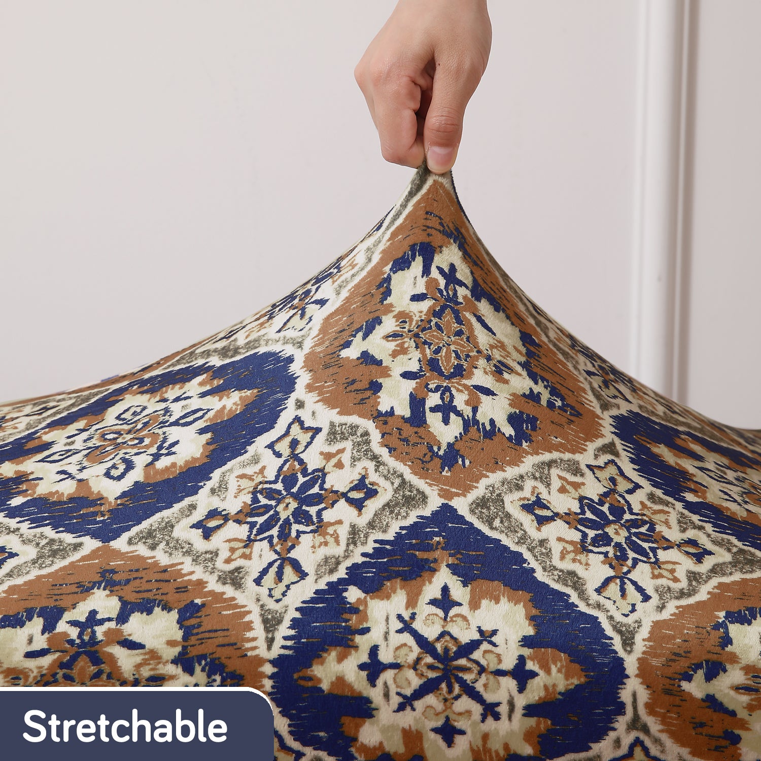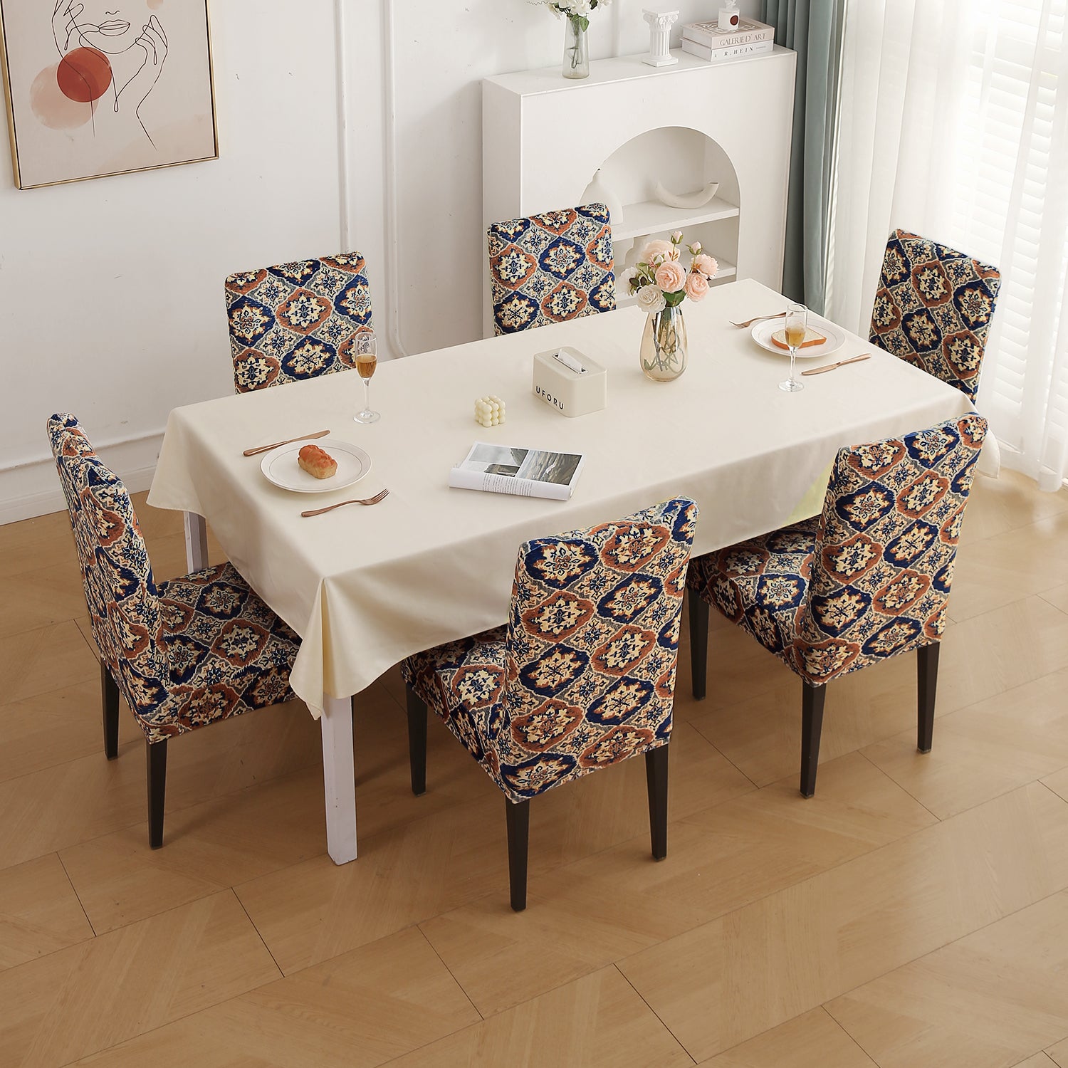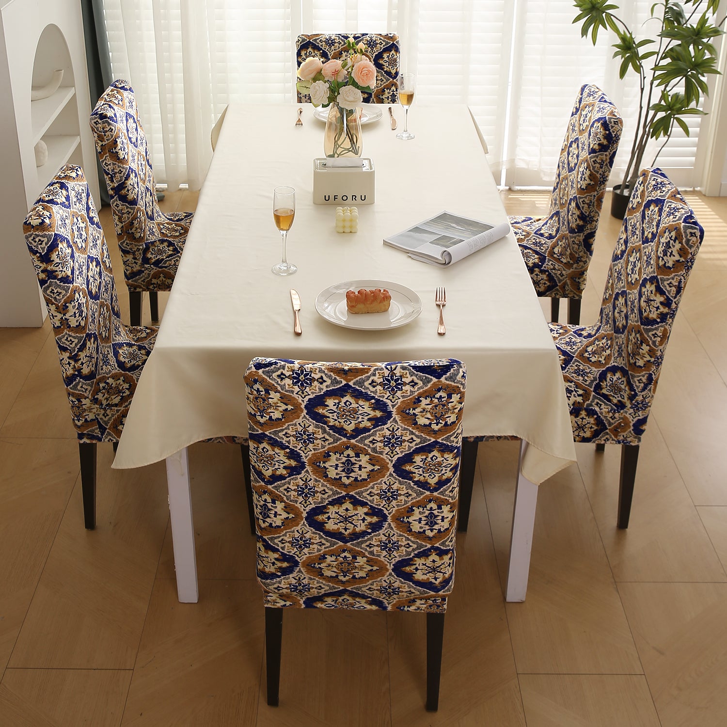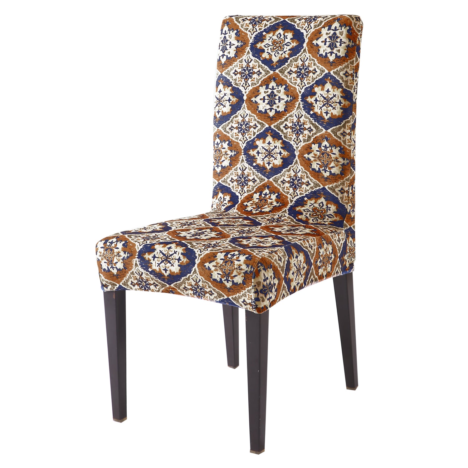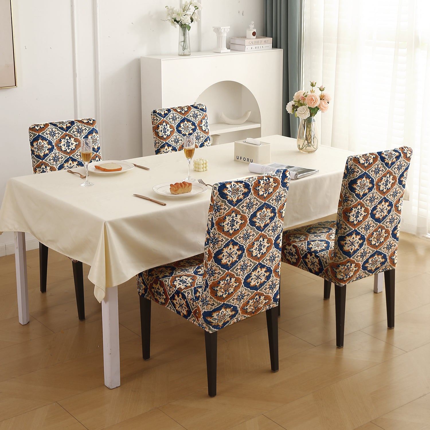 Premium Printed Velvet Dining Chair Cover Set, Indigo Moroccan Charm