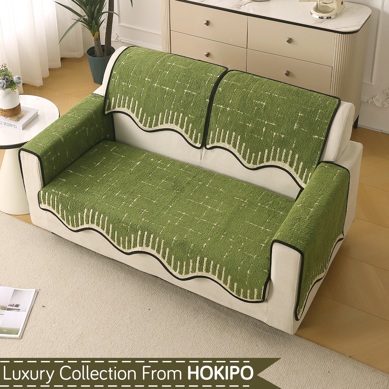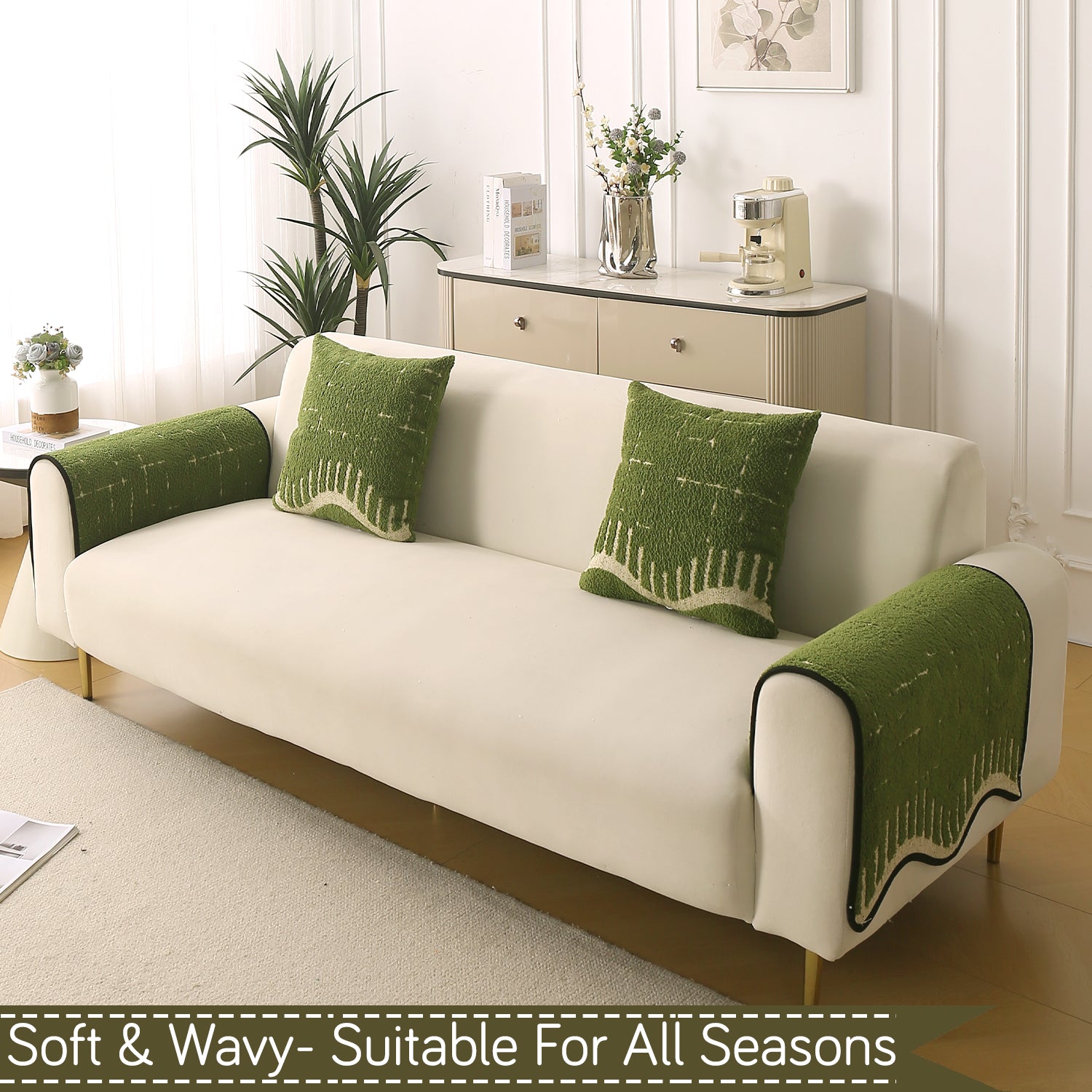 Premium Supple Soft Wavy with Curve Sofa Cover Mat, Green