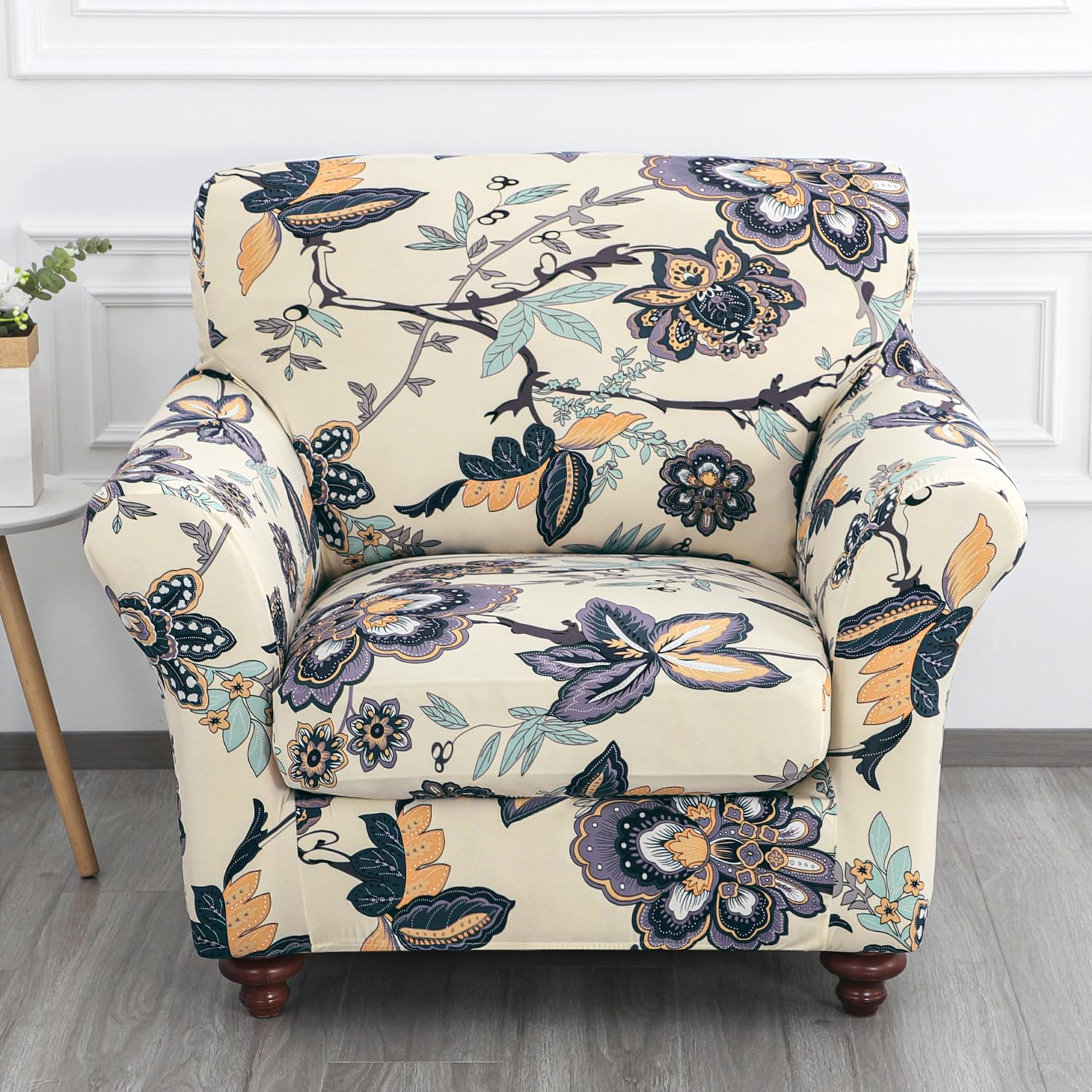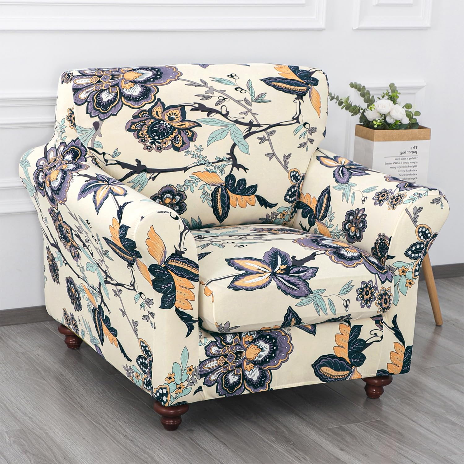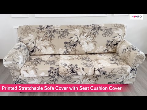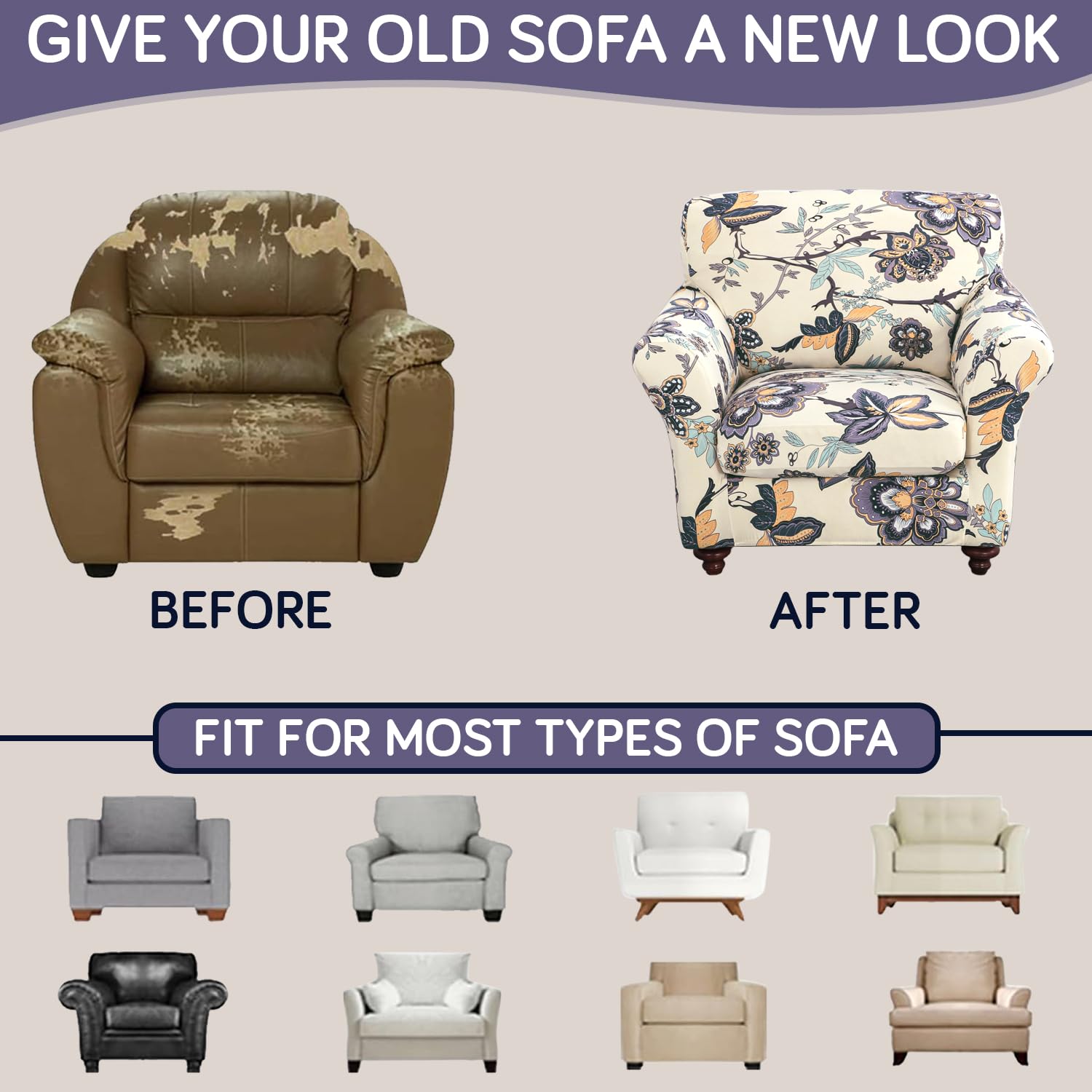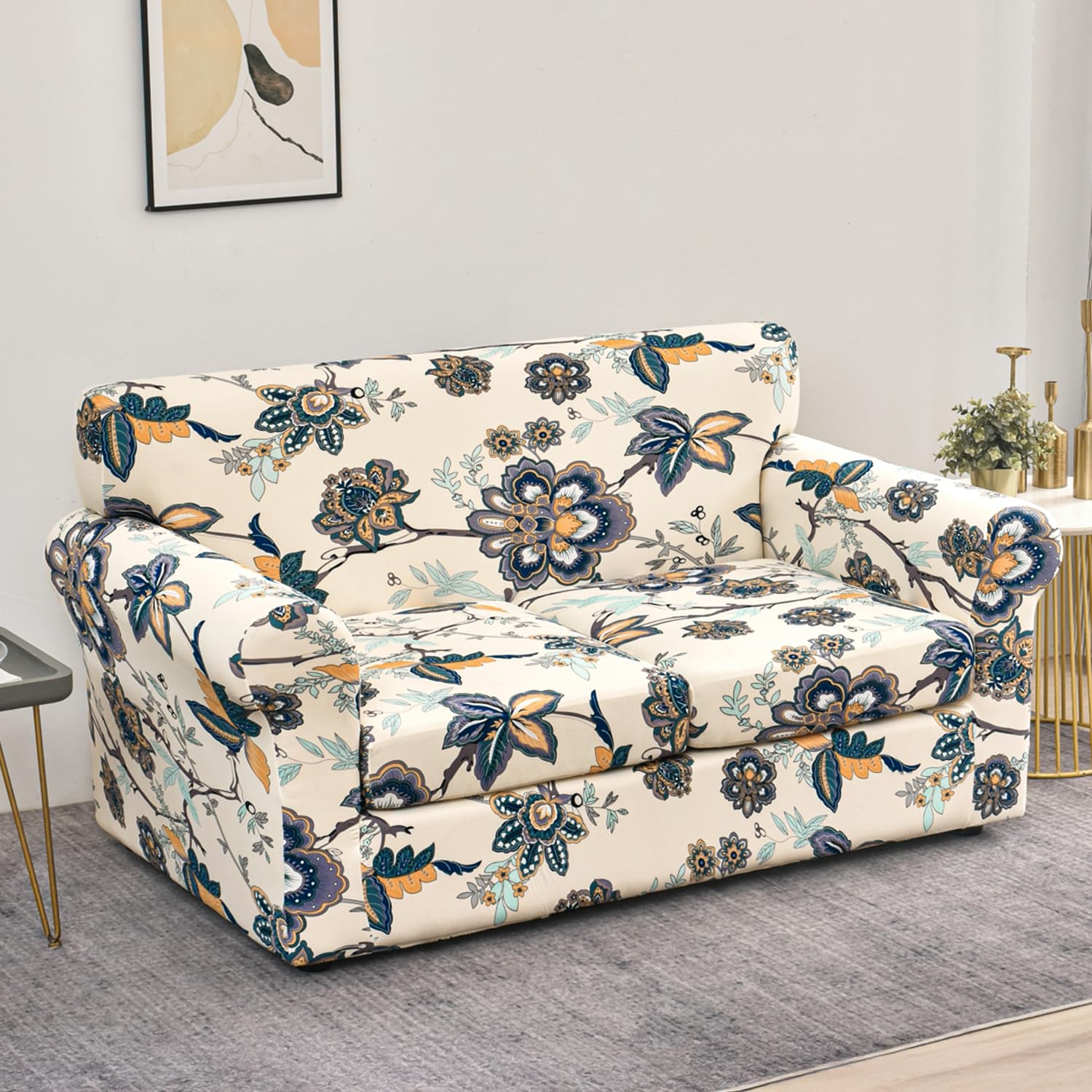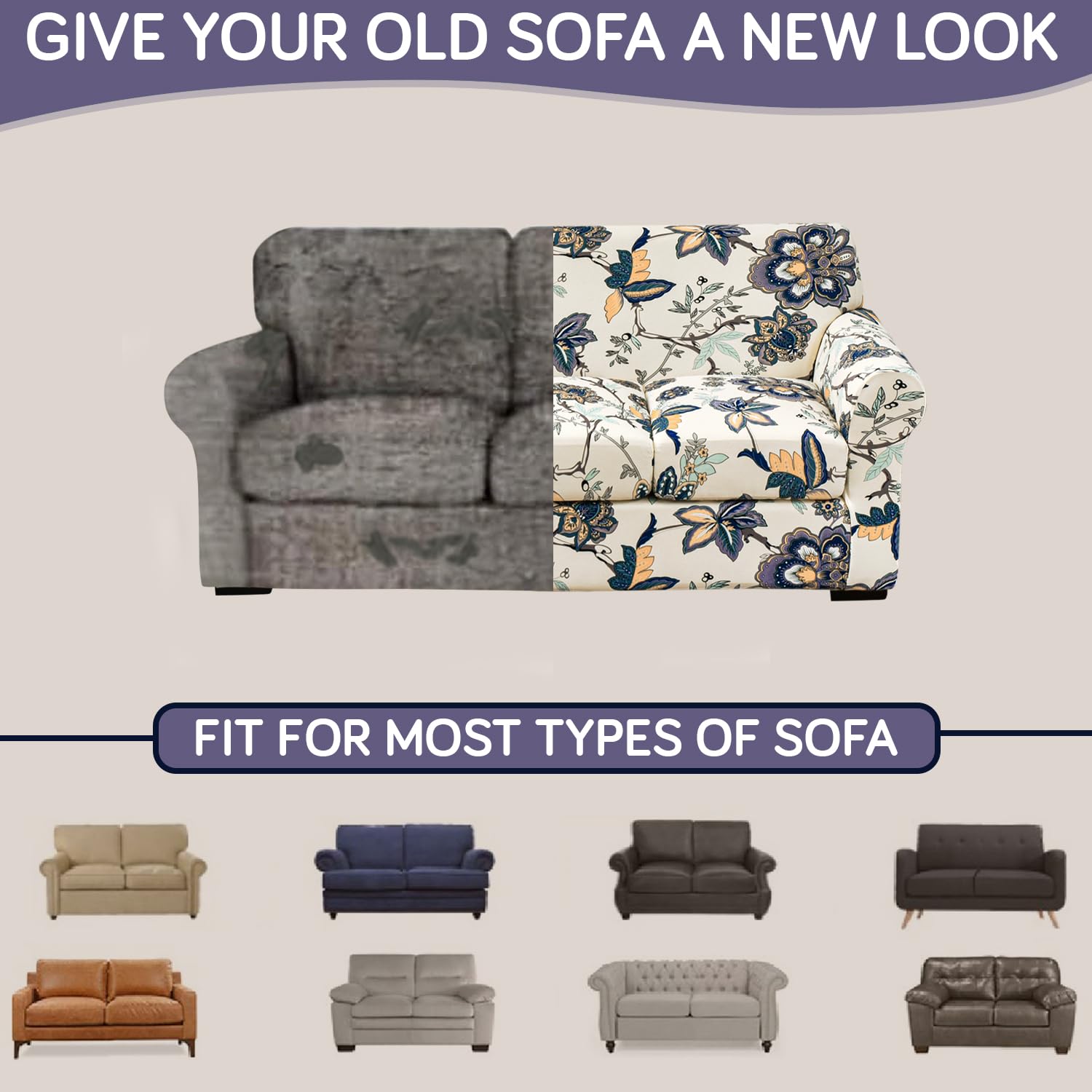 Printed Stretchable Sofa Slipcover with 1/2/3 Pc Separate Seat Cushion Cover for each 1/2/3 Seater, Cream Majestic Flora