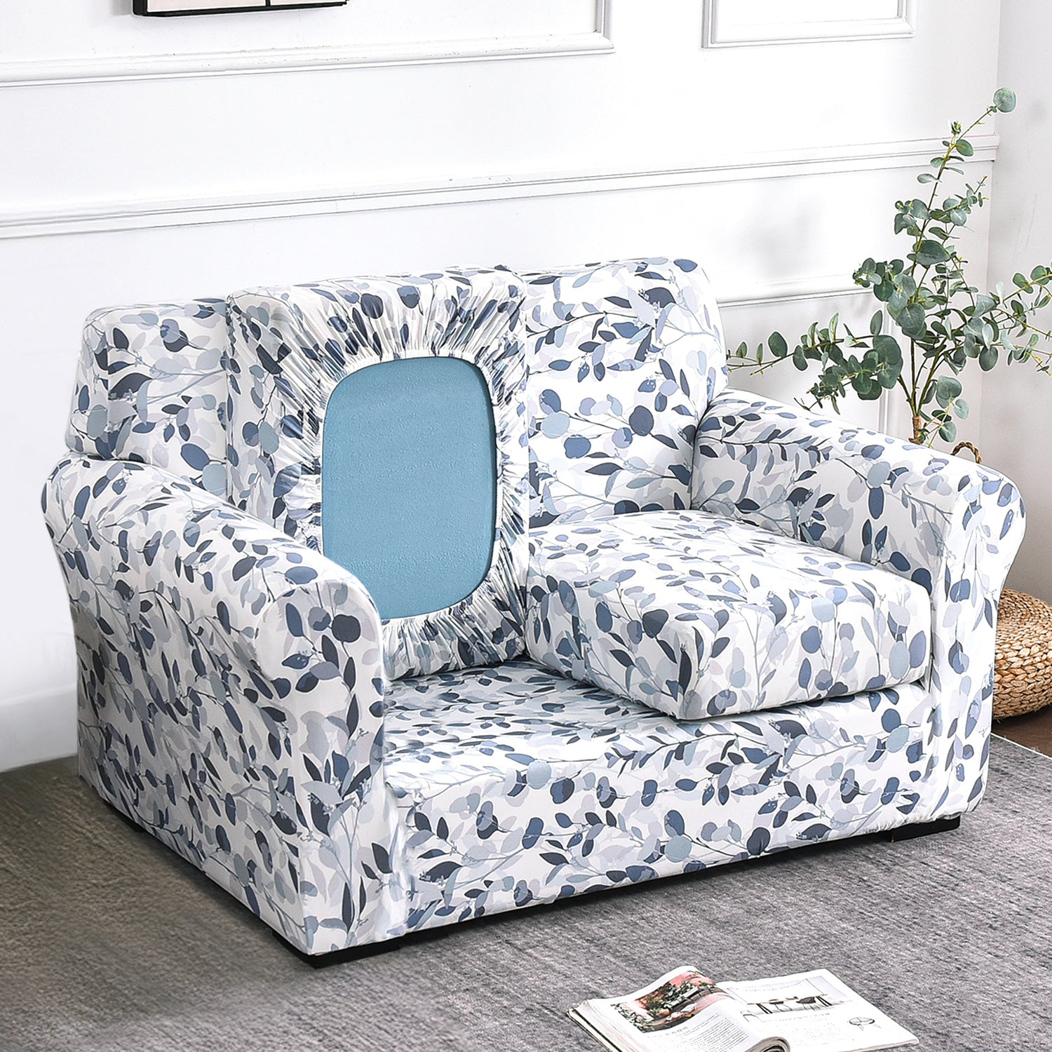 Printed Stretchable Sofa Slipcover with 1/2/3 Pc Separate Seat Cushion Cover for each 1/2/3 Seater,Frost Blue Foilage