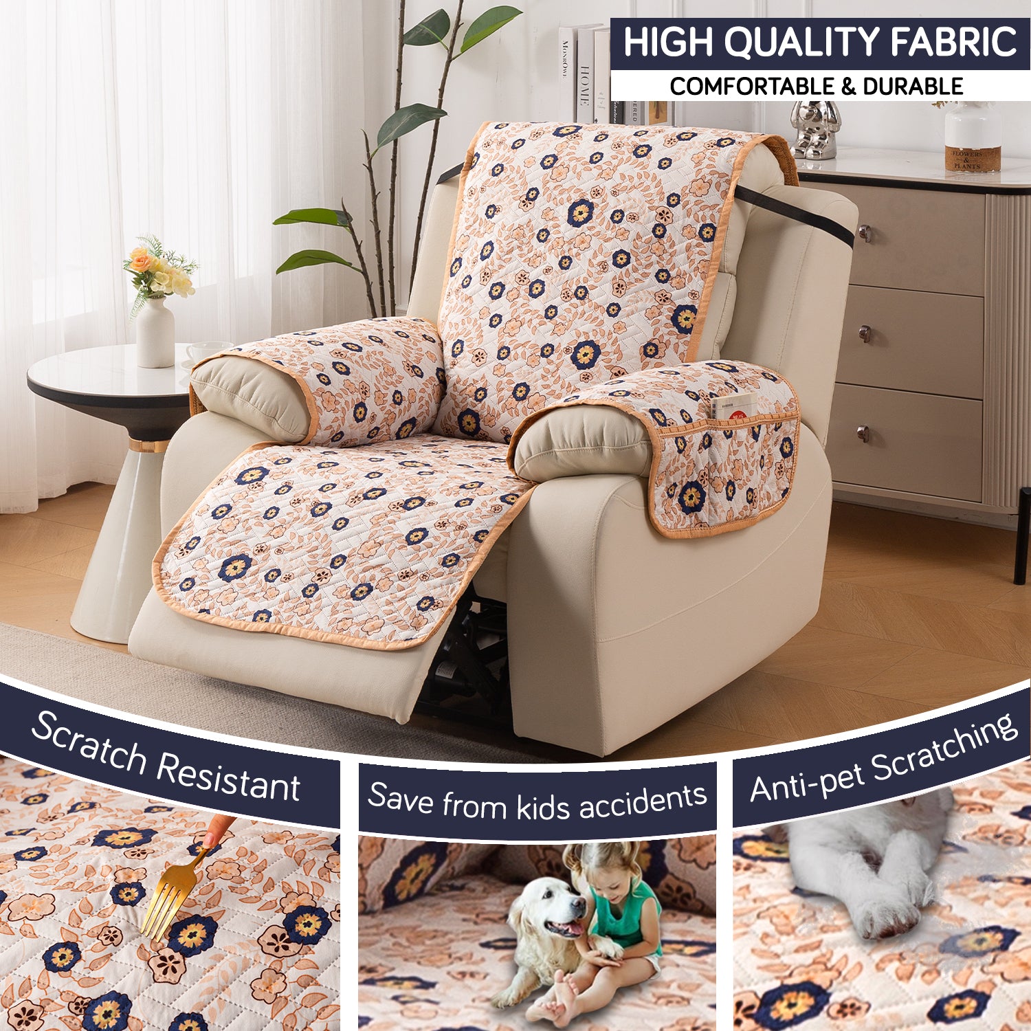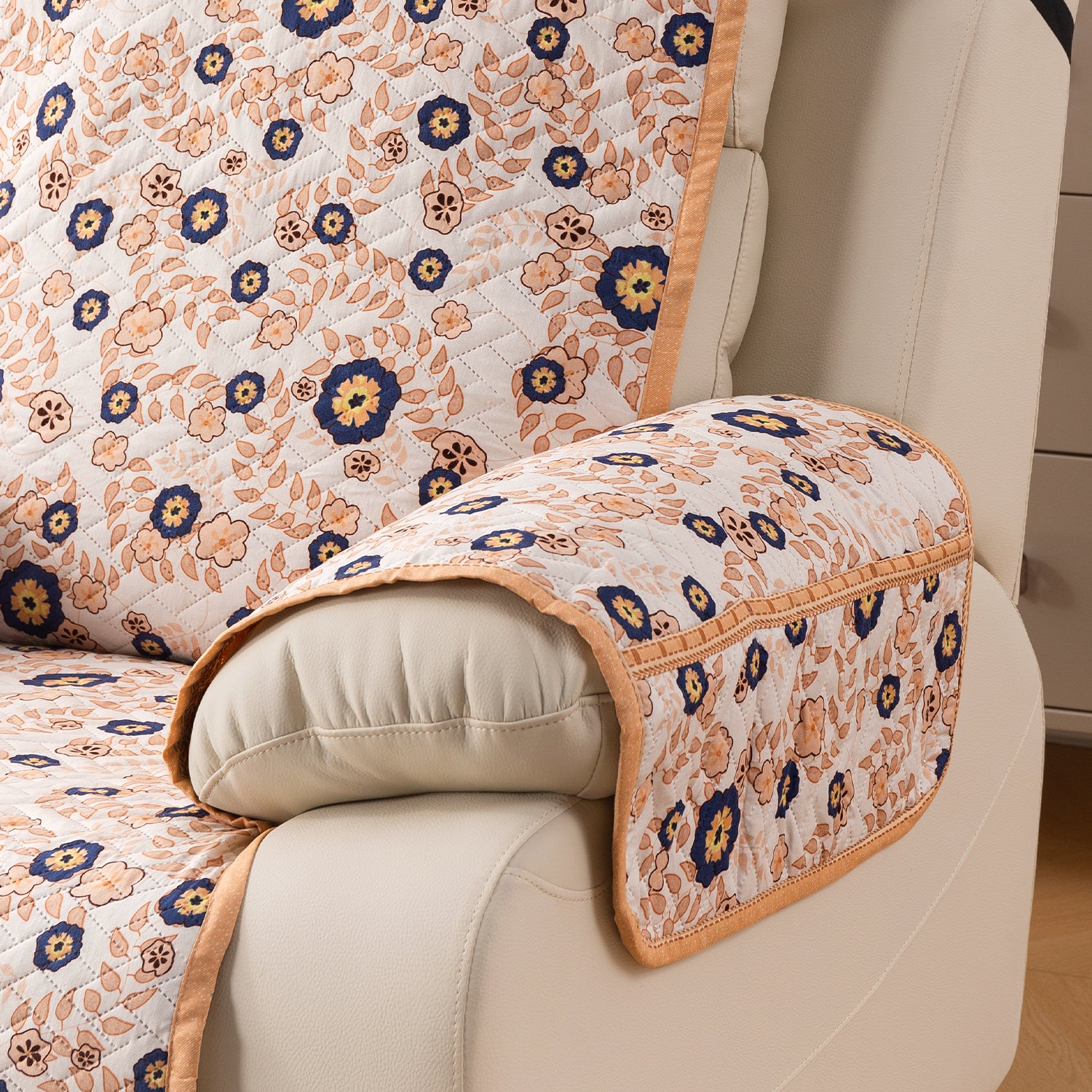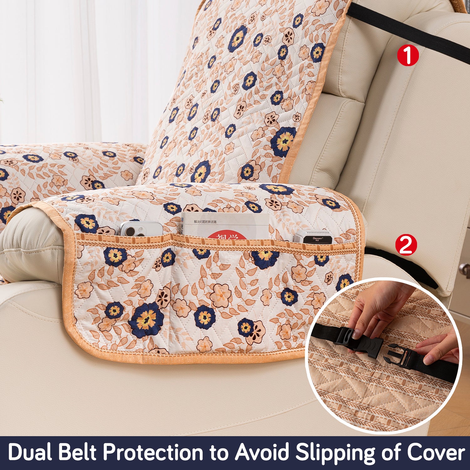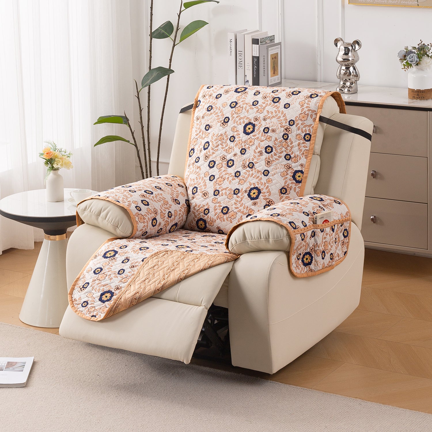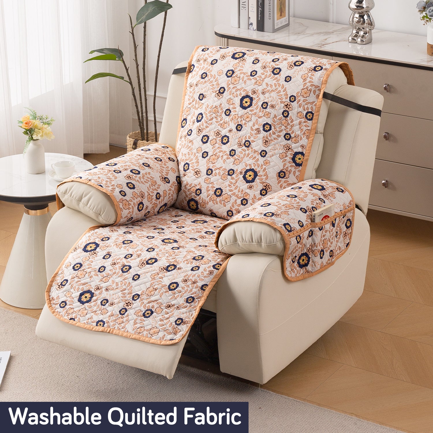 Quilted Cover for Recliner Sofa with SecureFit Belt & Side Pocket, Light Peach Candytuft