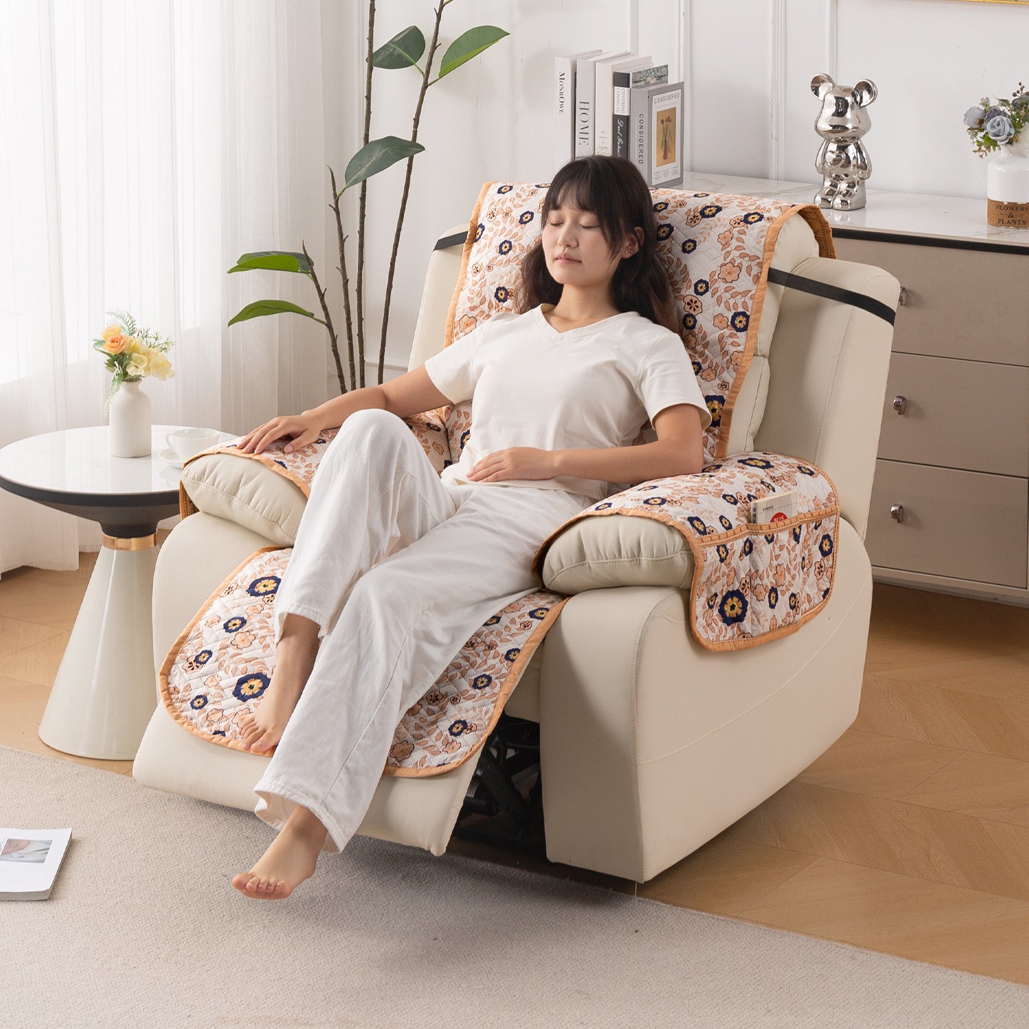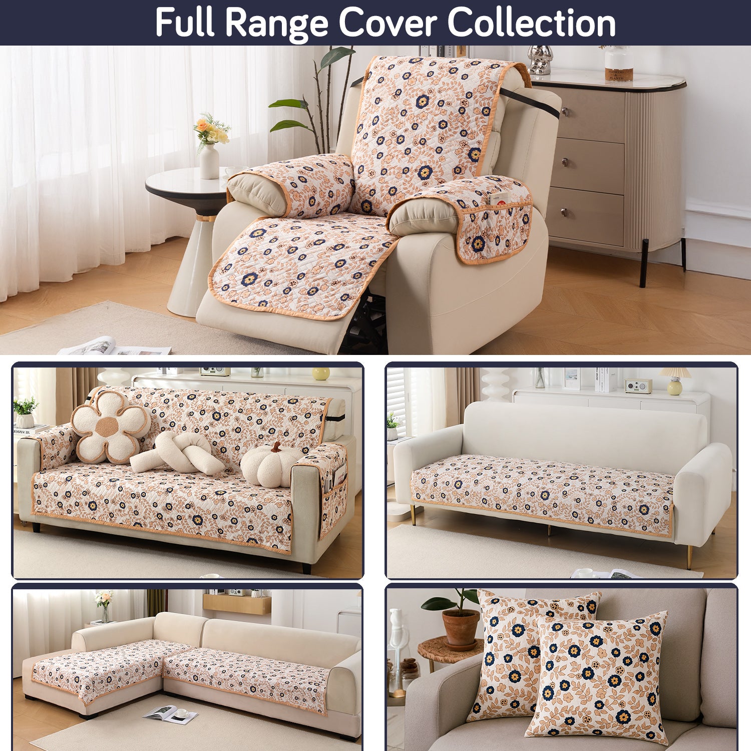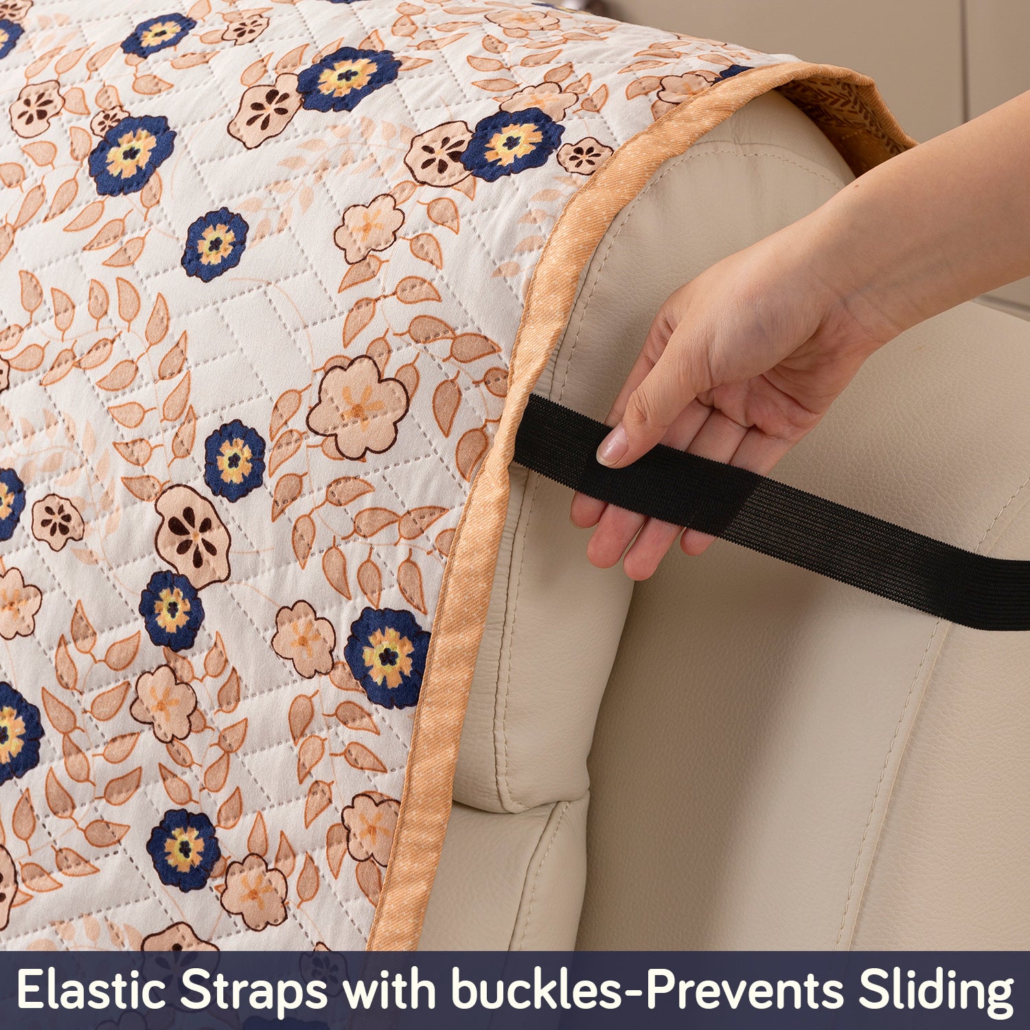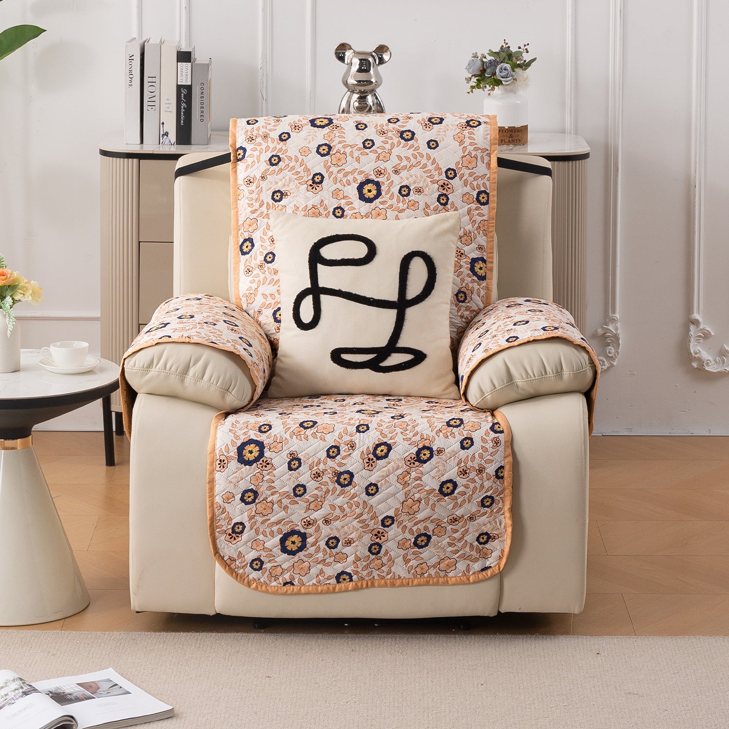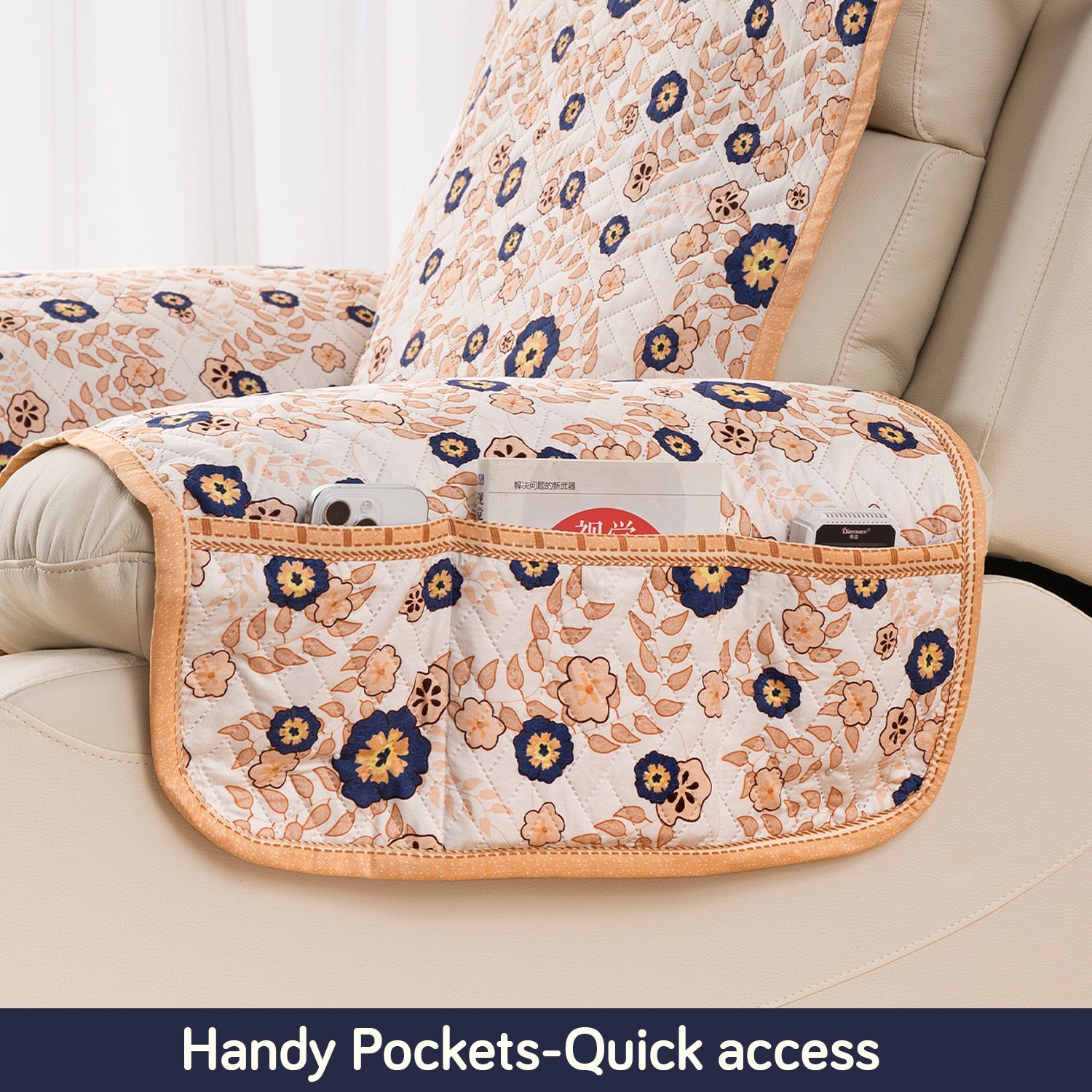 Quilted Cover for Recliner Sofa with SecureFit Belt & Side Pocket, Light Peach Candytuft