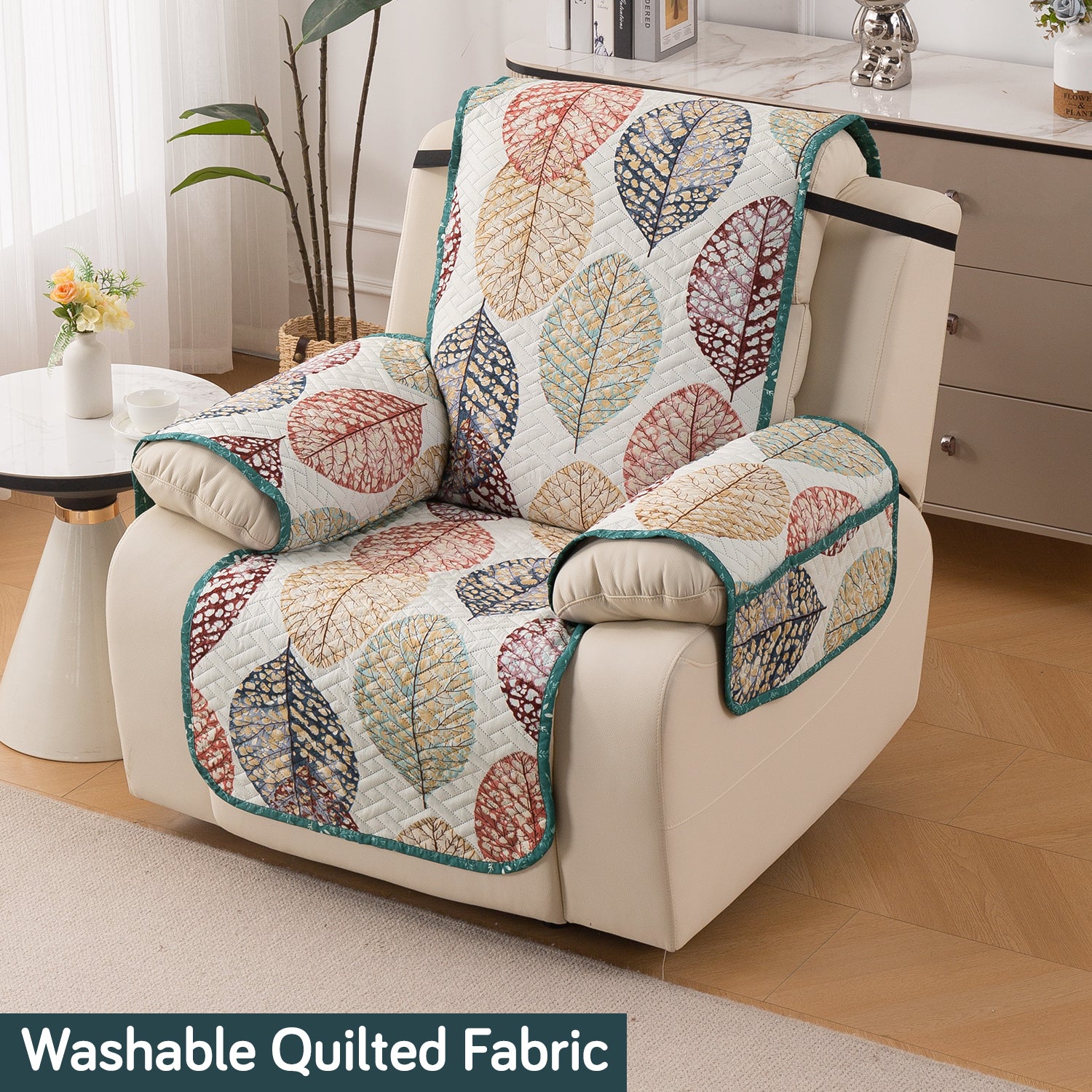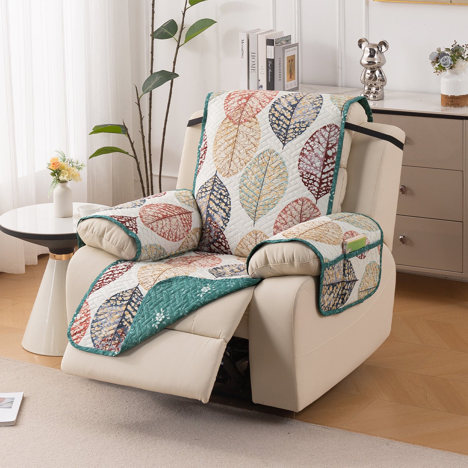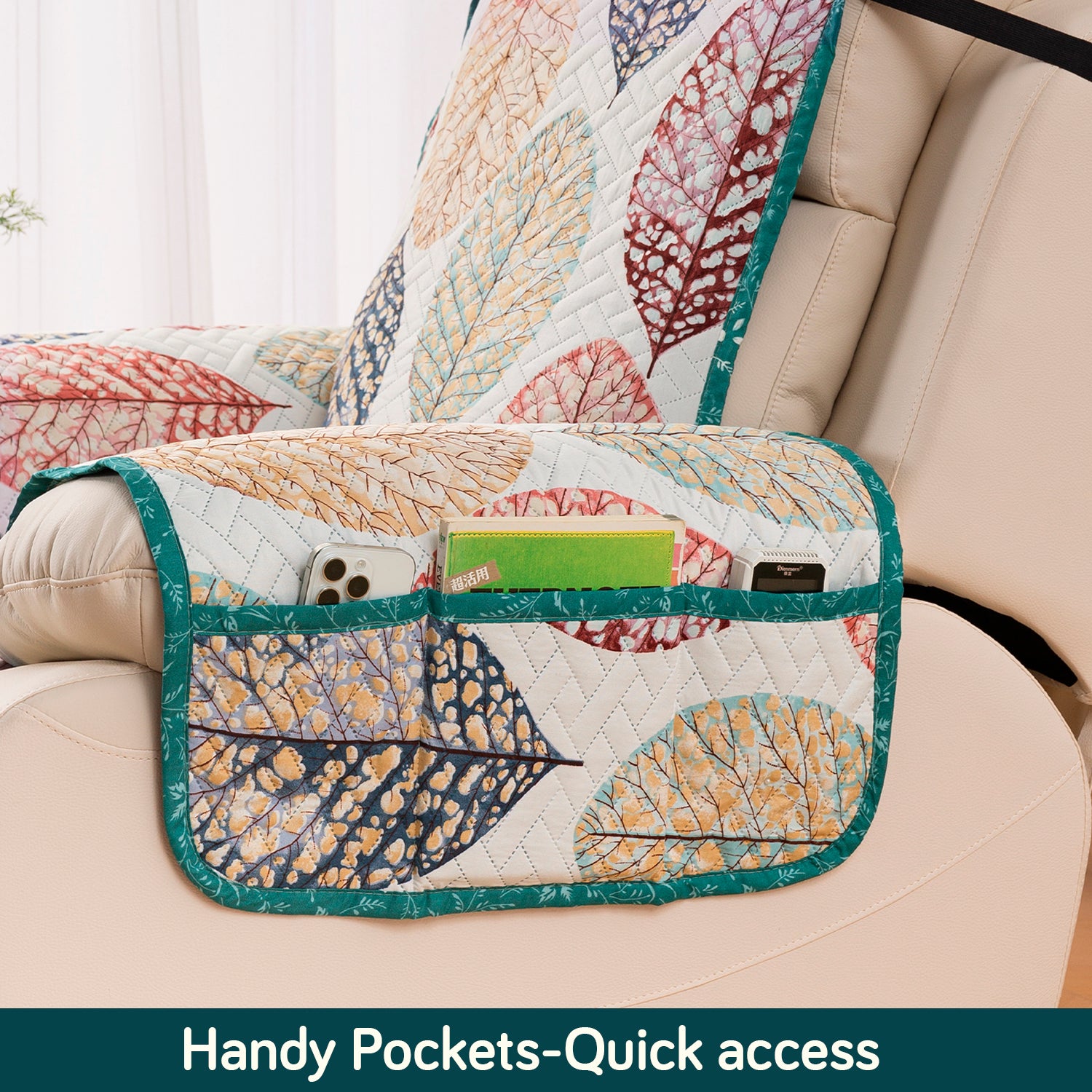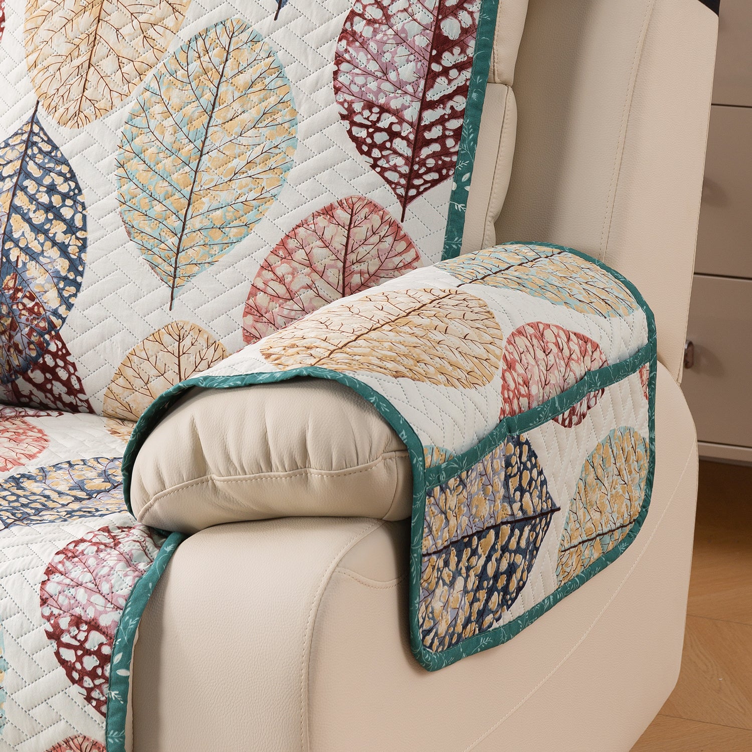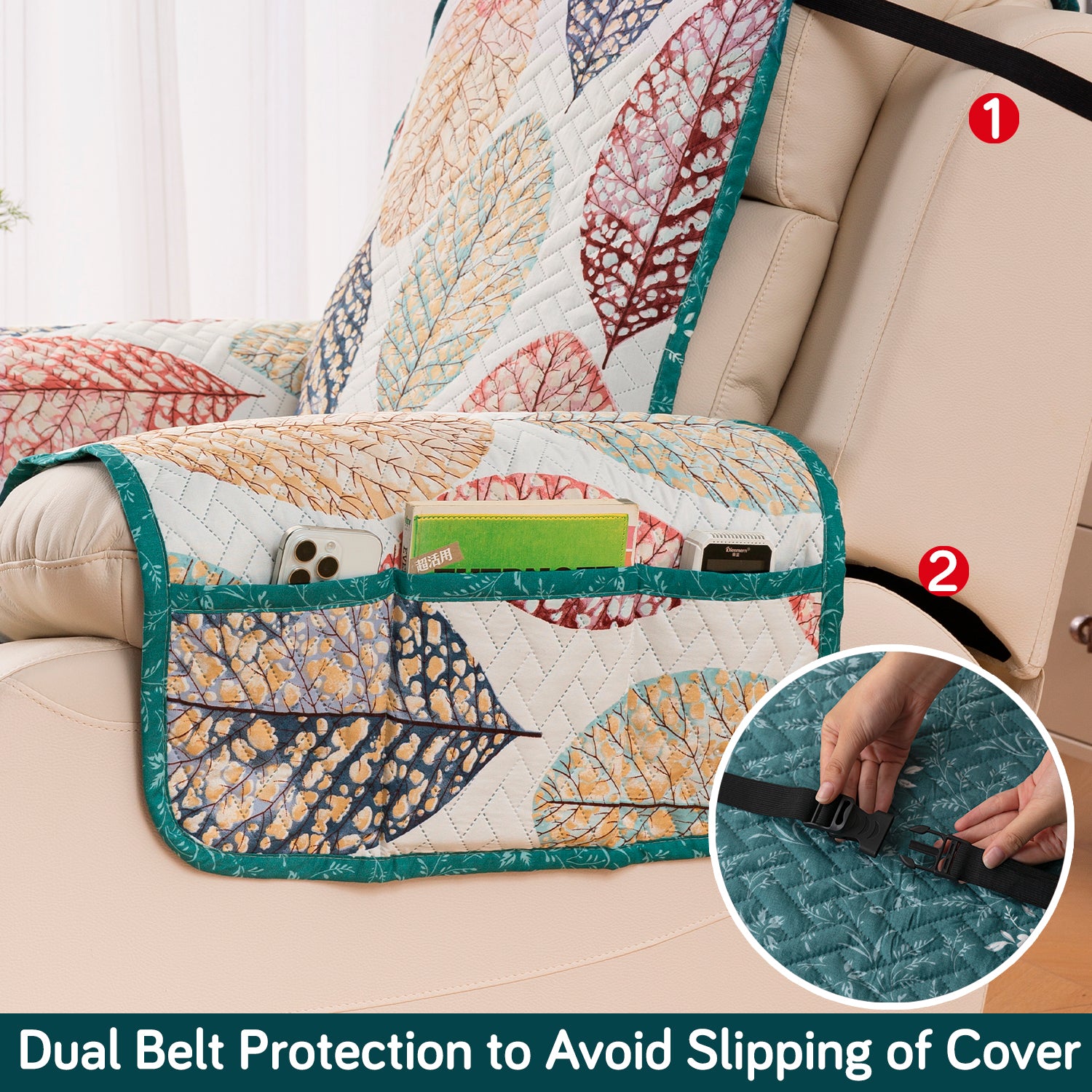 Quilted Cover for Recliner Sofa with SecureFit Belt & Side Pocket, Multicolor Linden Leaf