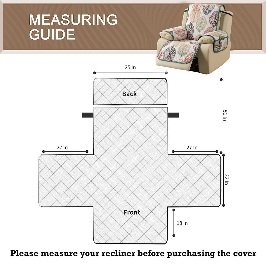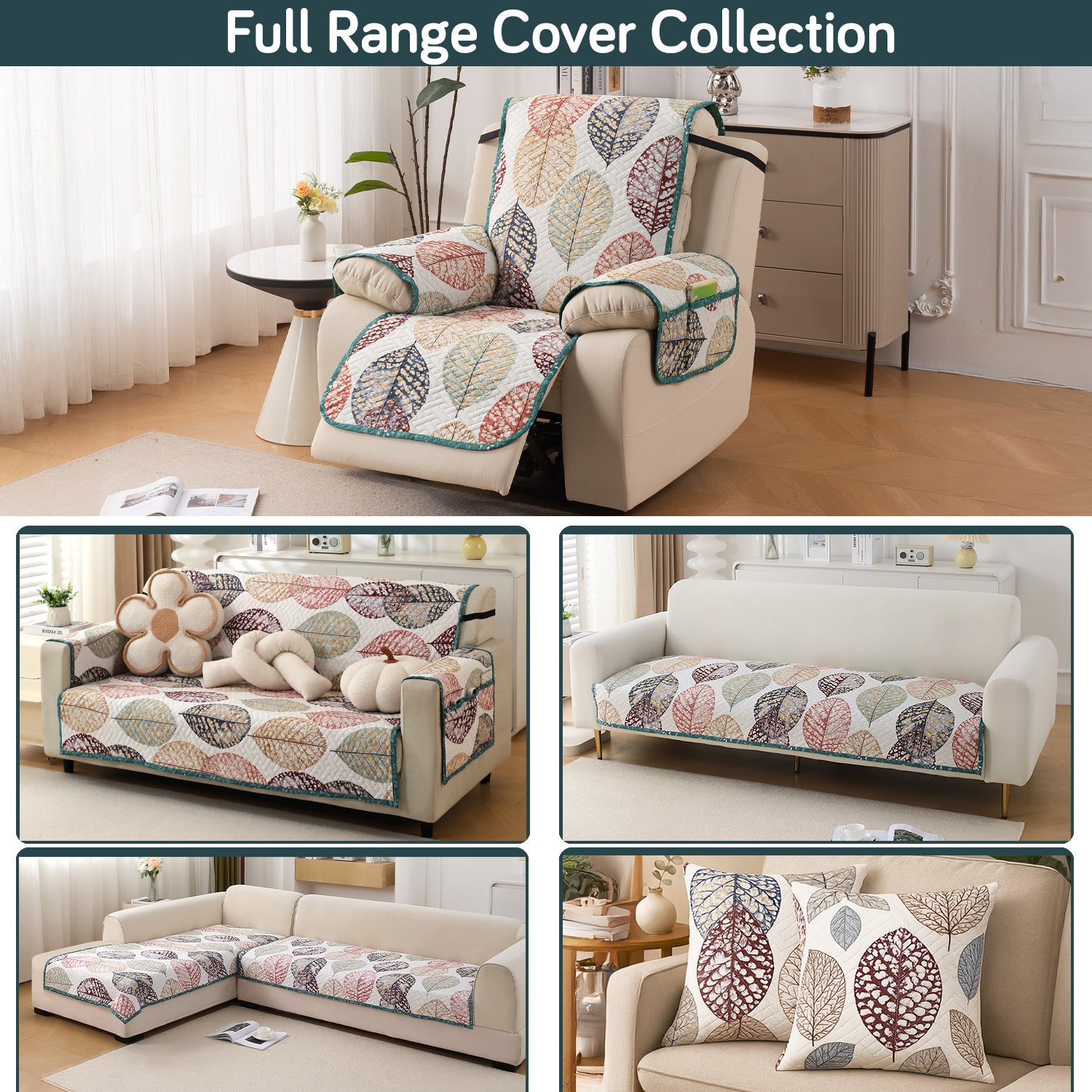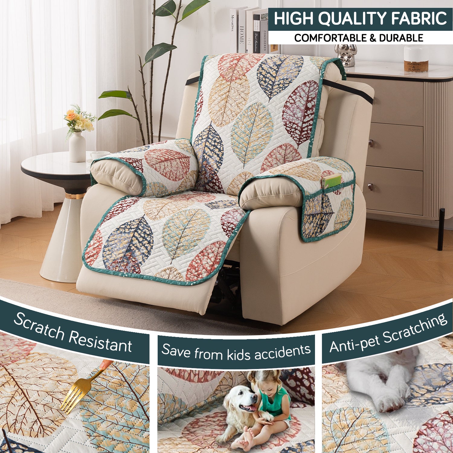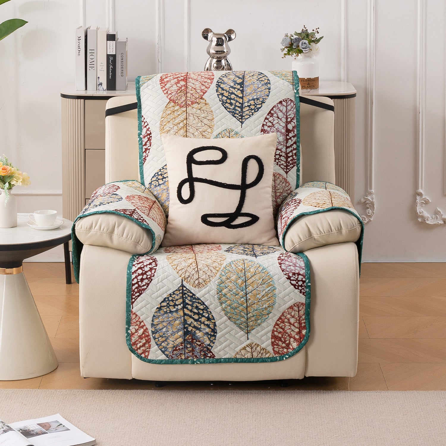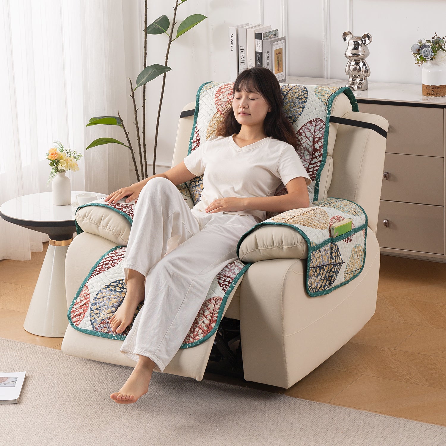 Quilted Cover for Recliner Sofa with SecureFit Belt & Side Pocket, Multicolor Linden Leaf
