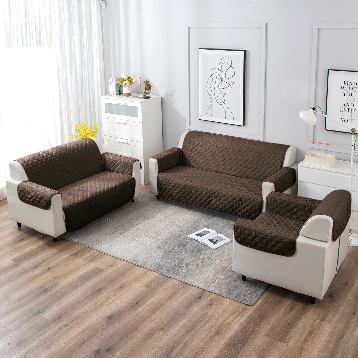 UrbanQuilt Quilted Polyester Sofa Cover Mat Pet Friendly, Chocolate Brown