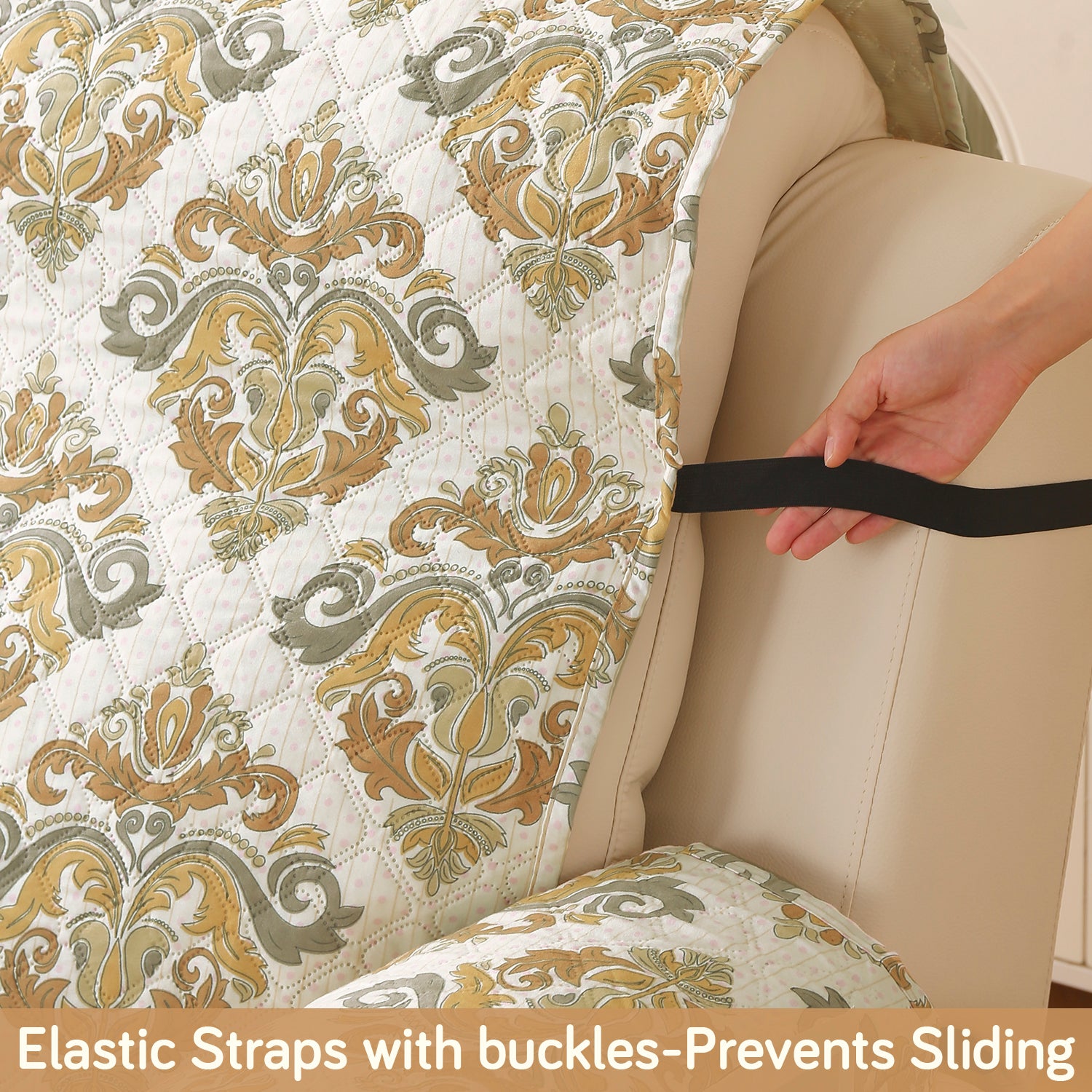 Quilted Printed Recliner Mats for 1 Seater Recliner Sofa, Damask Beige