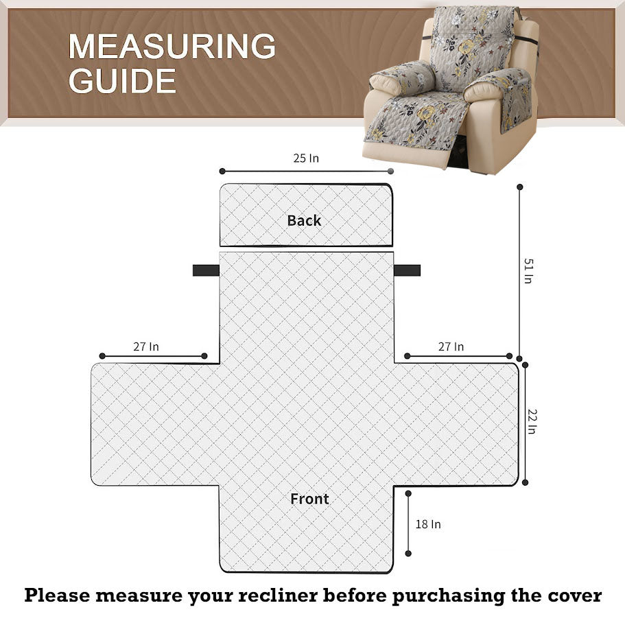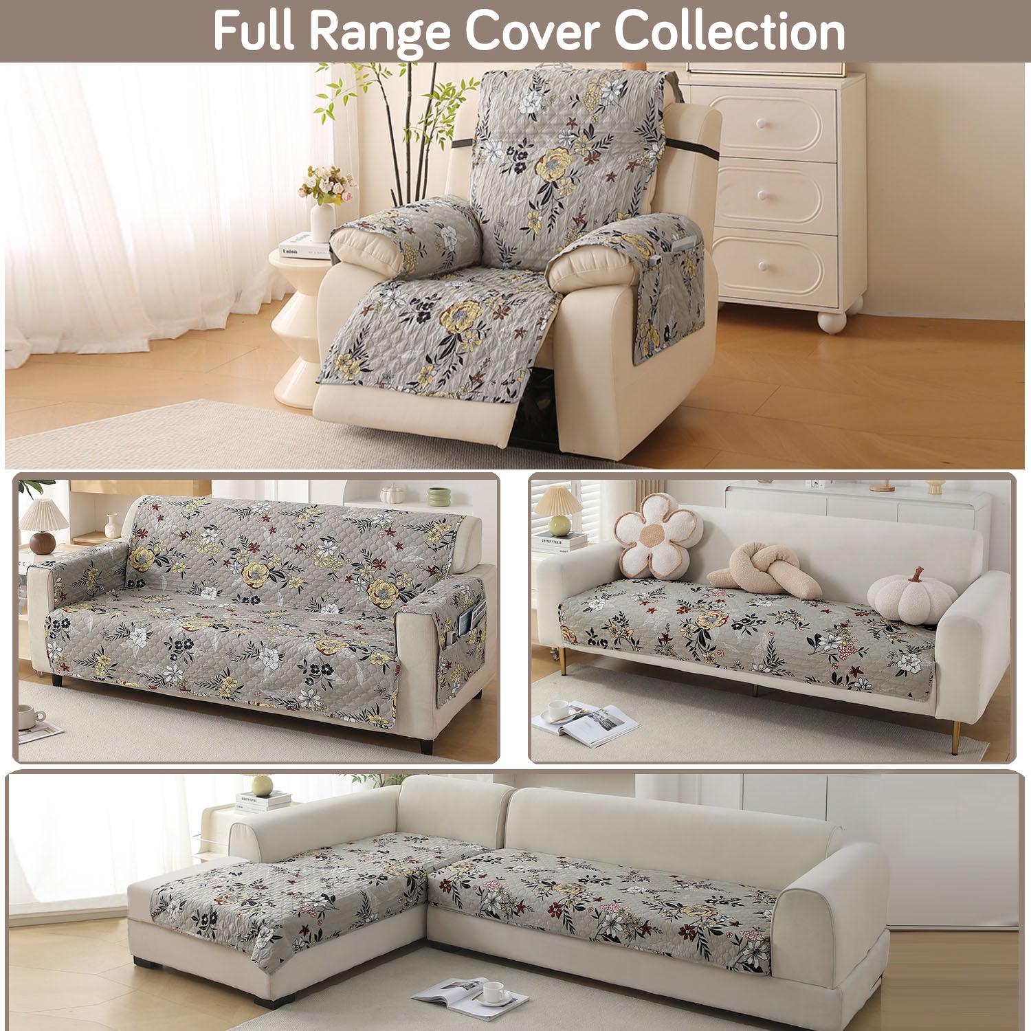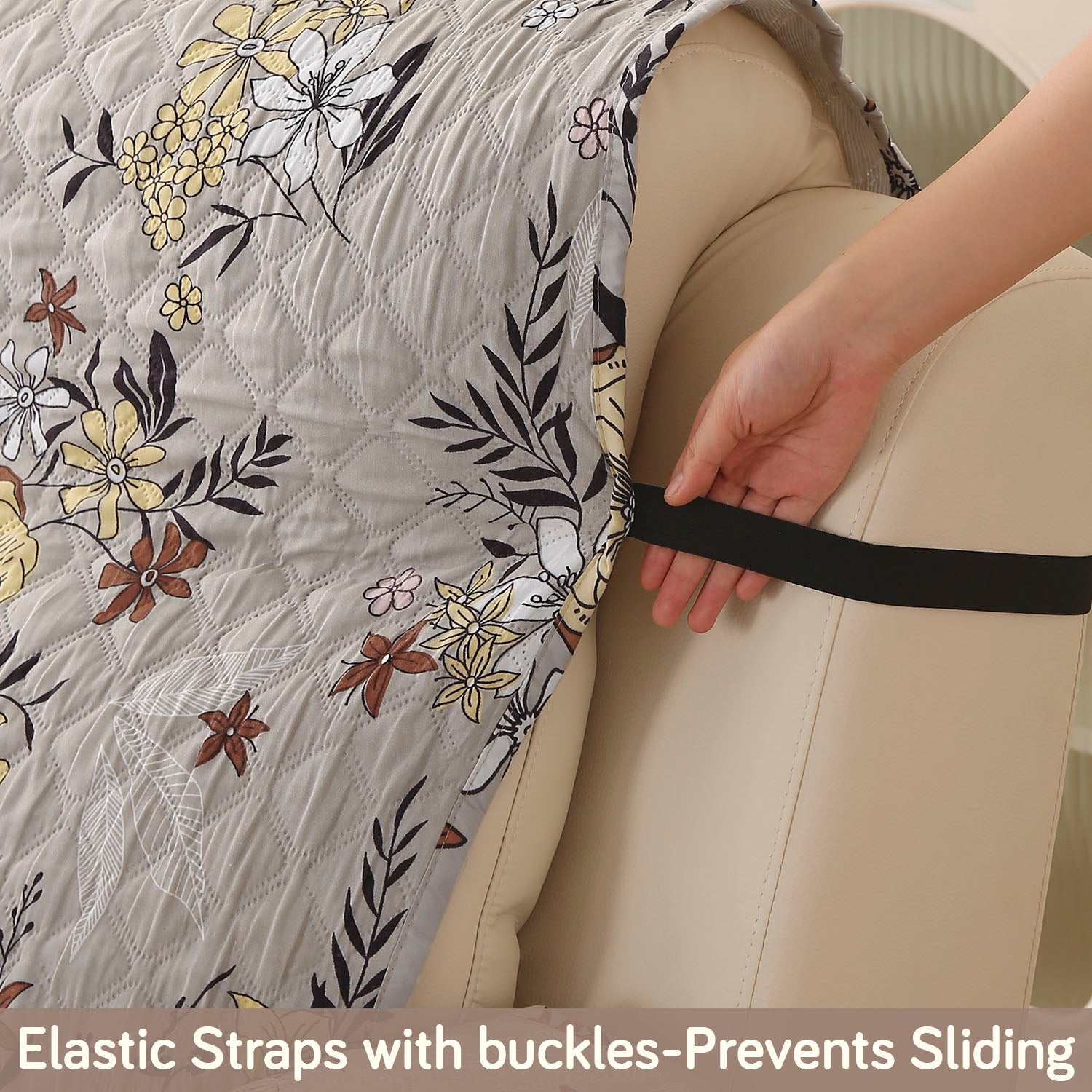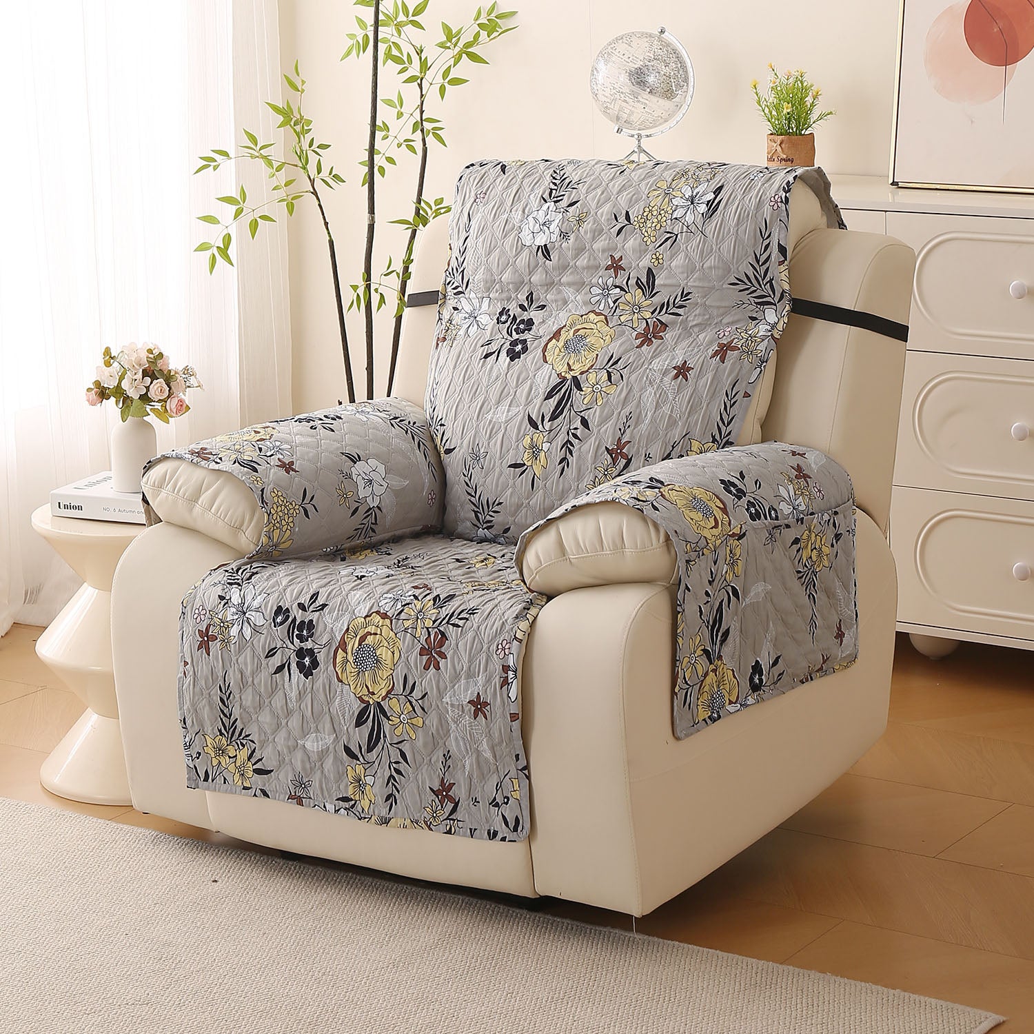Quilted Printed Recliner Mats for 1 Seater Recliner Sofa, Floral Ash Grey