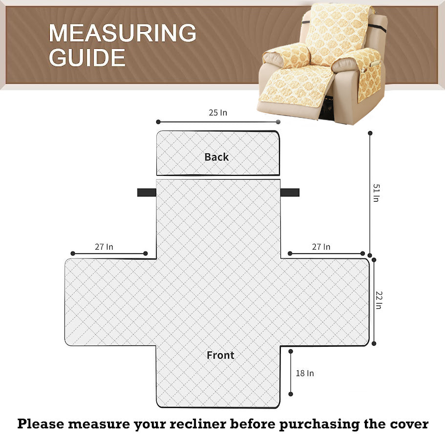 Quilted Printed Recliner Mats for 1 Seater Recliner Sofa, Ogee Ivory
