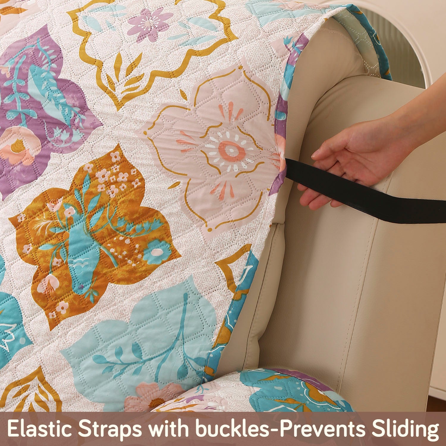 Printed quilted mats for one seater recliner sofa.