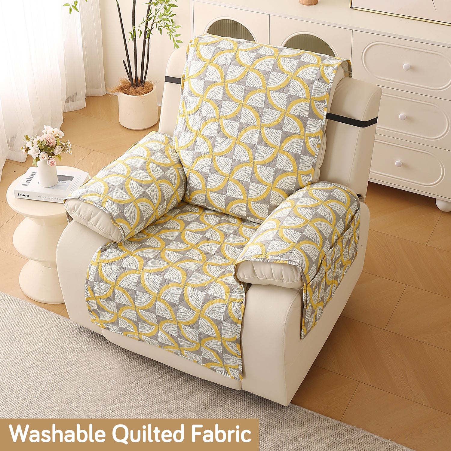 Quilted Printed Recliner Mats for 1 Seater Recliner Sofa, Windmill Cyber Yellow