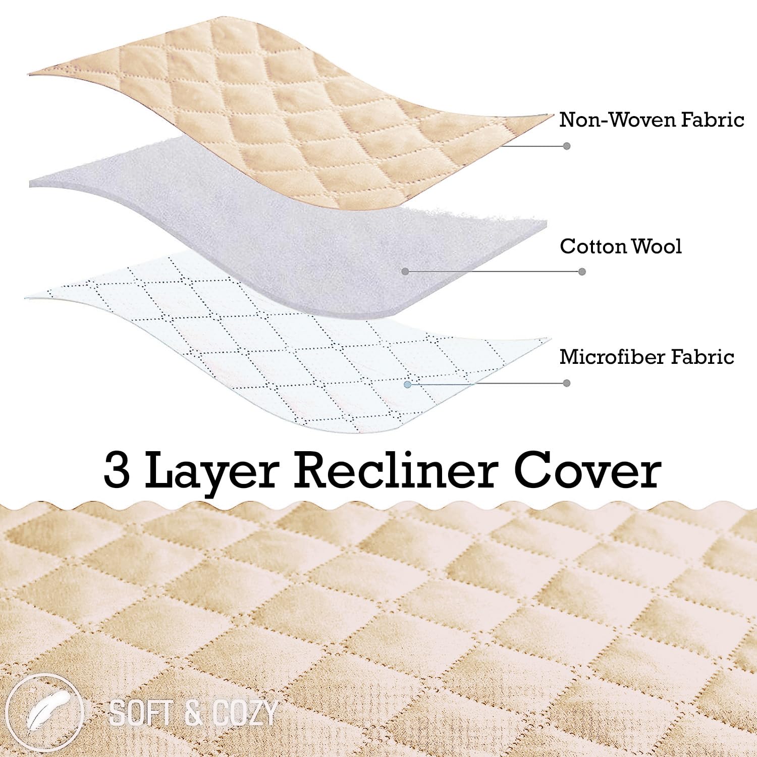 - This recliner chair cover is made from quilted polyester and features three layers of fabric with a cotton wool filling for added durability.