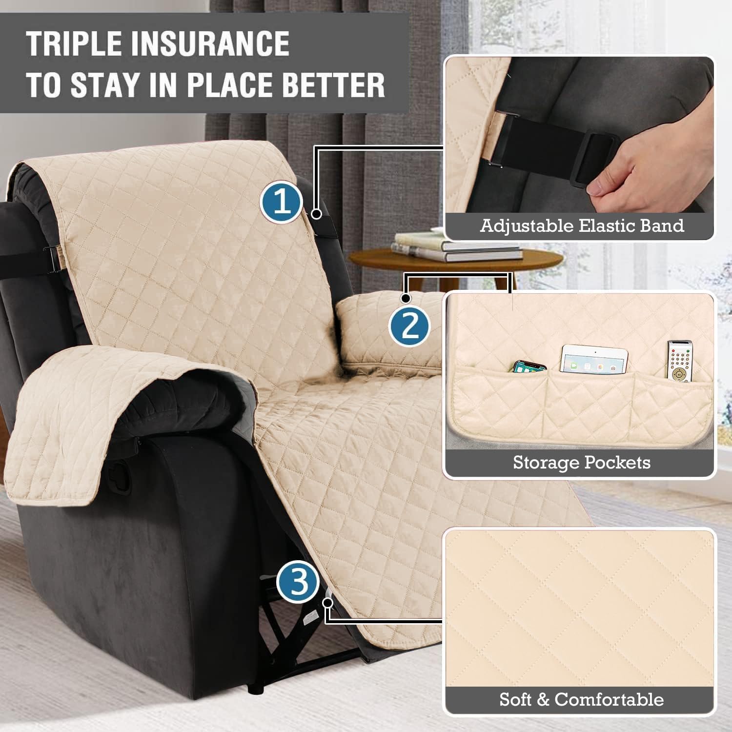 - Easily drape over your recliner, tuck in elastic straps, and secure with non-slip buckles to prevent sliding.