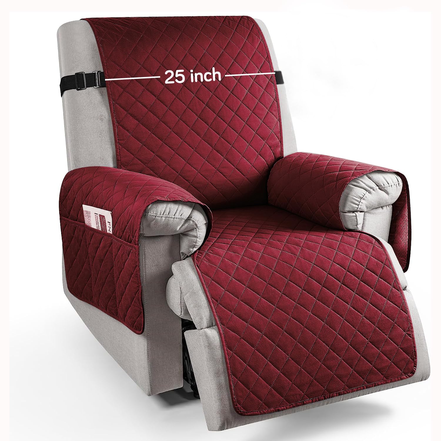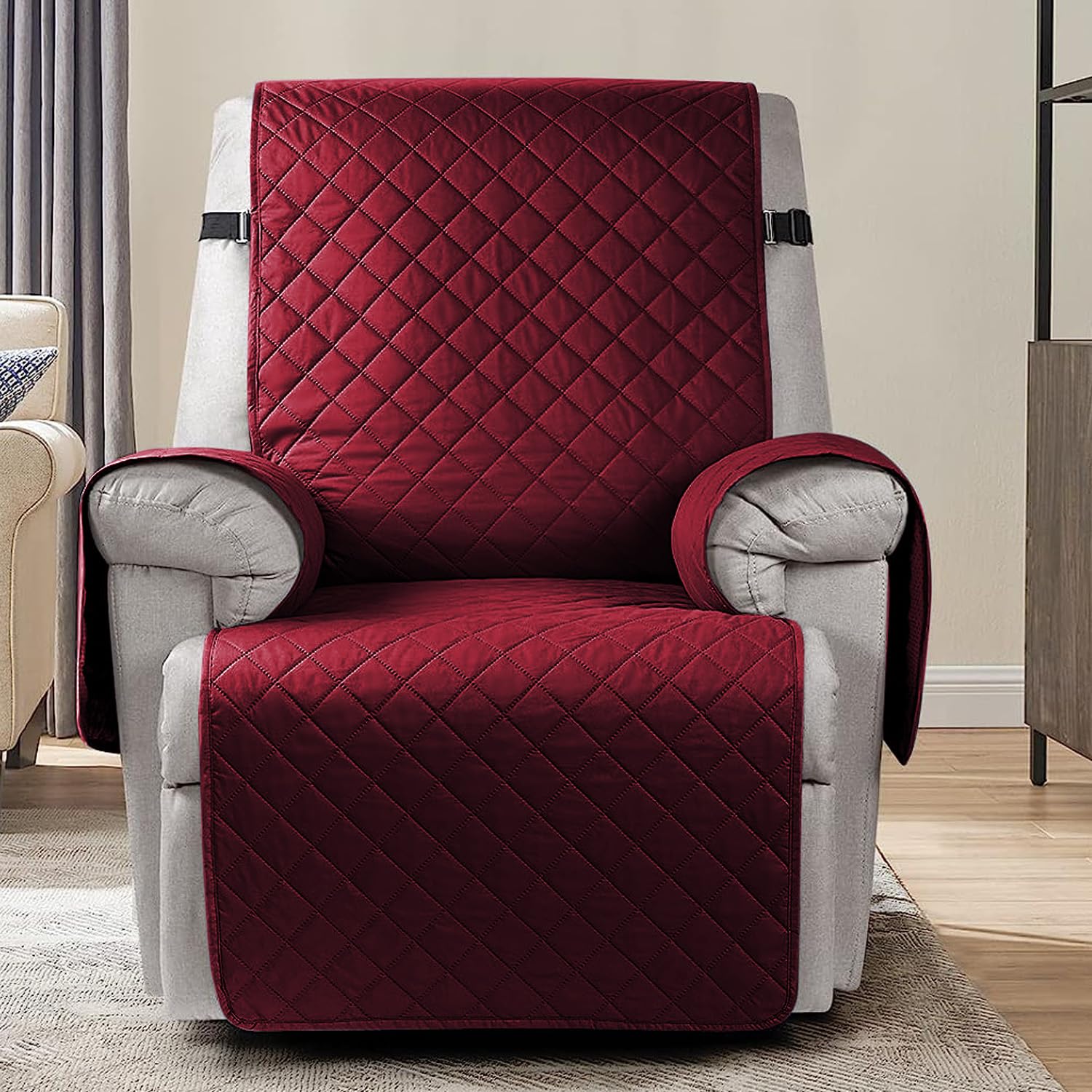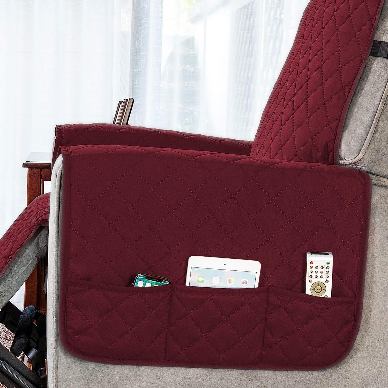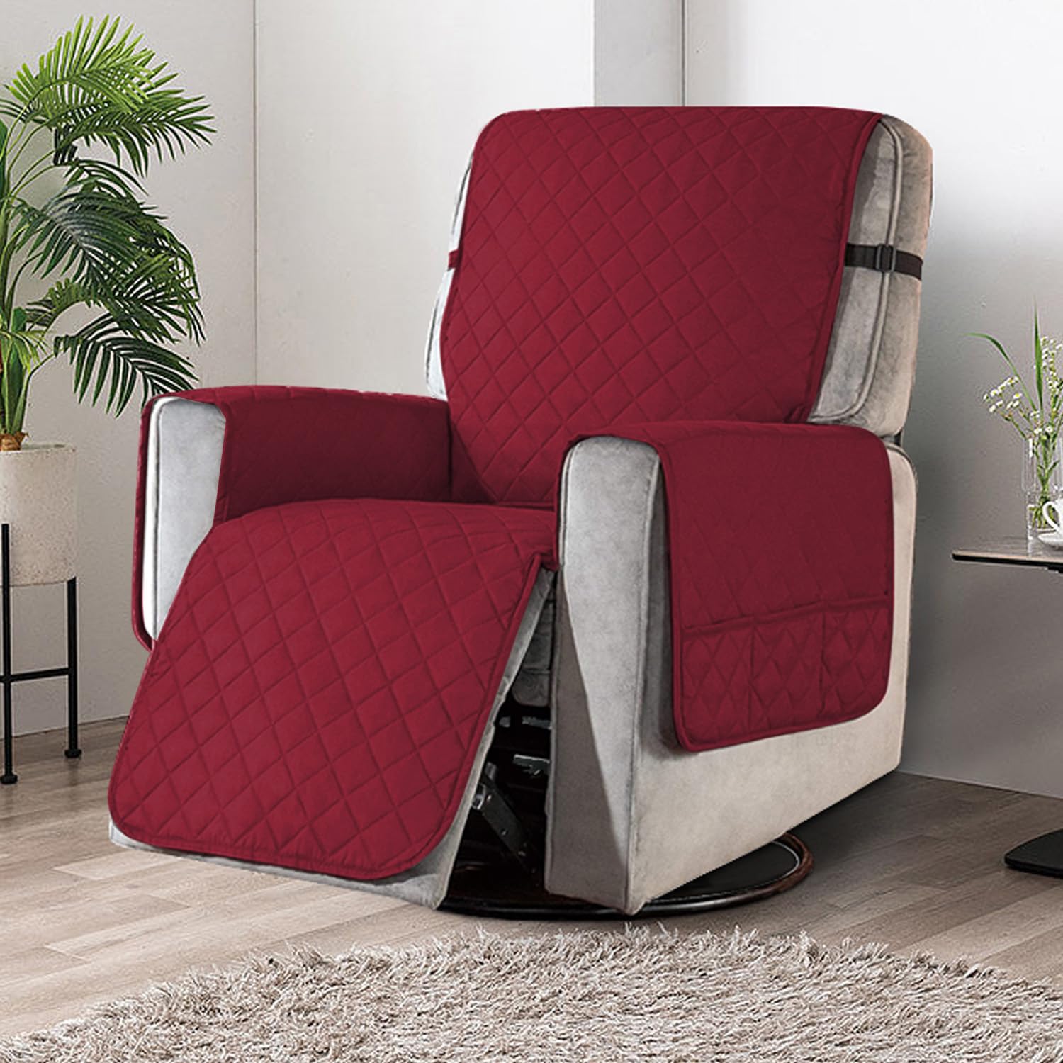 Quilted Recliner Chair Cover With Side Pockets for 1 Seater Sofa, Burgundy