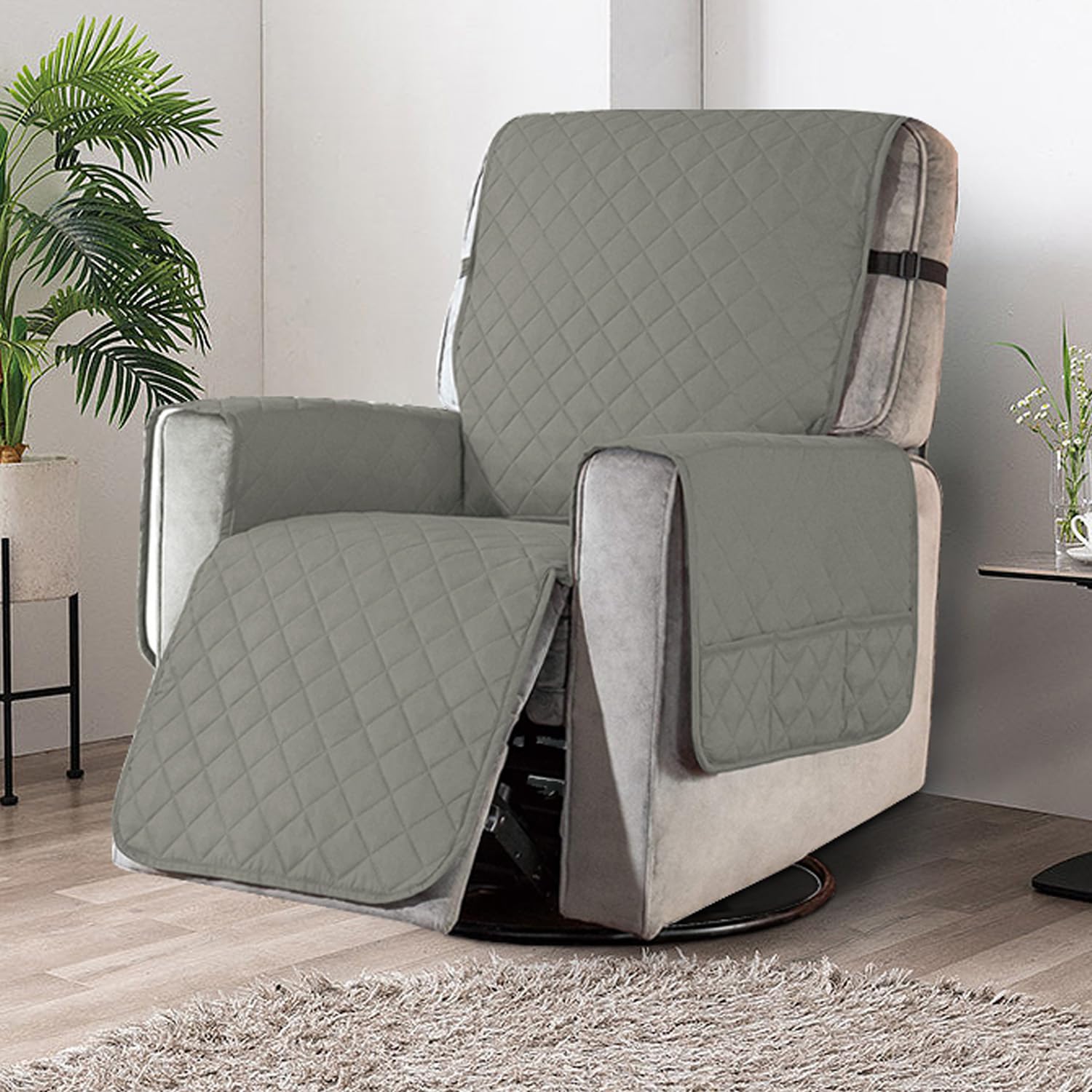 Quilted Recliner Chair Cover With Side Pockets for 1 Seater Sofa, Light Grey