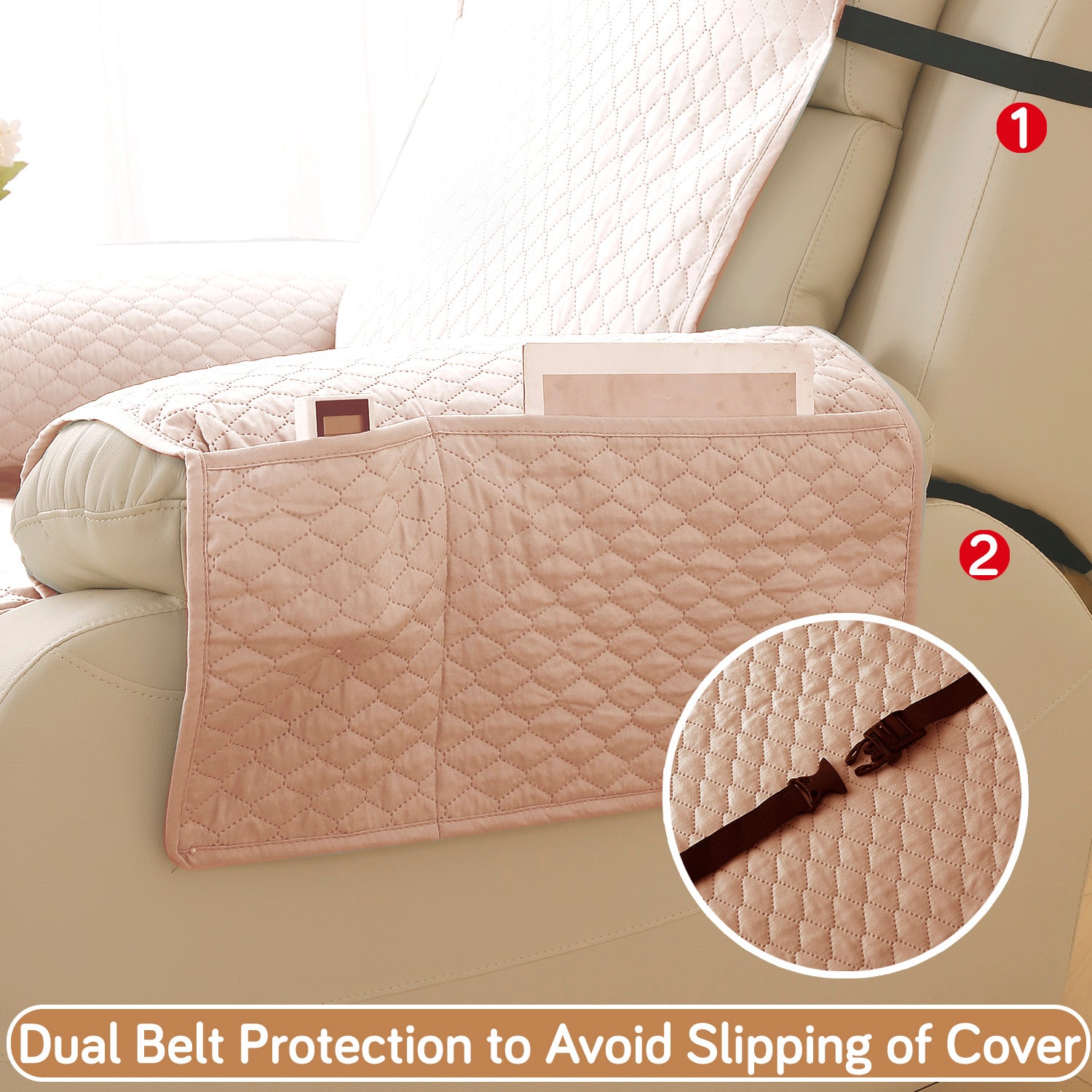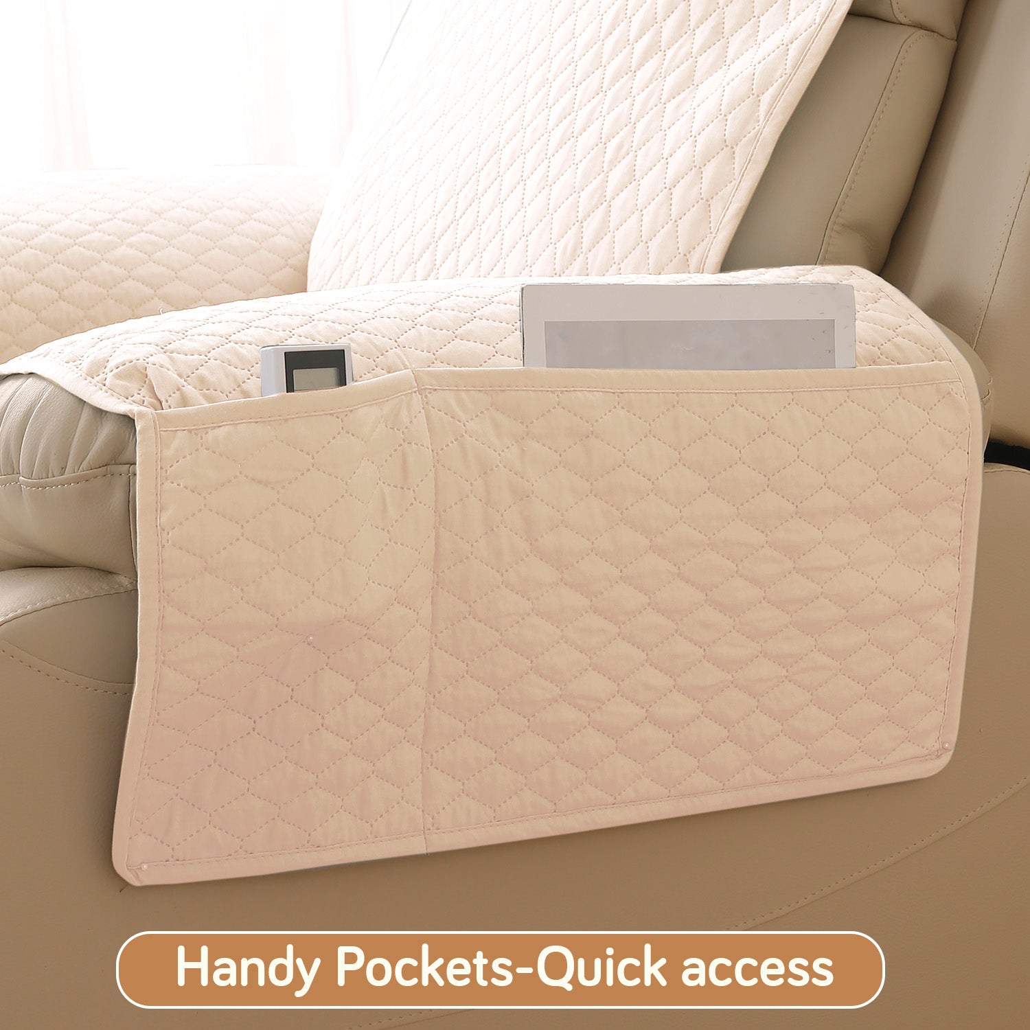Quilted Recliner Mats for 1 Seater Recliner Sofa, Beige