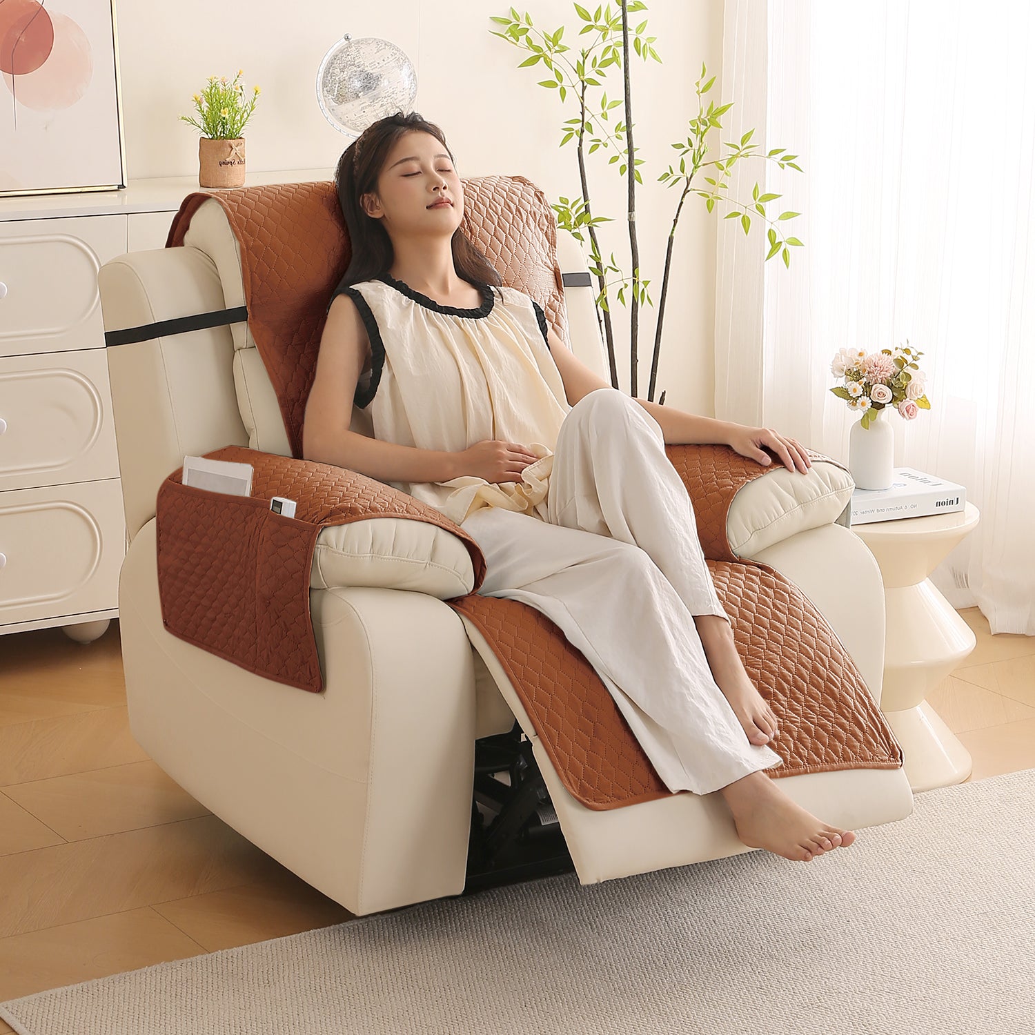 Quilted Recliner Mats for 1 Seater Recliner Sofa, Brown