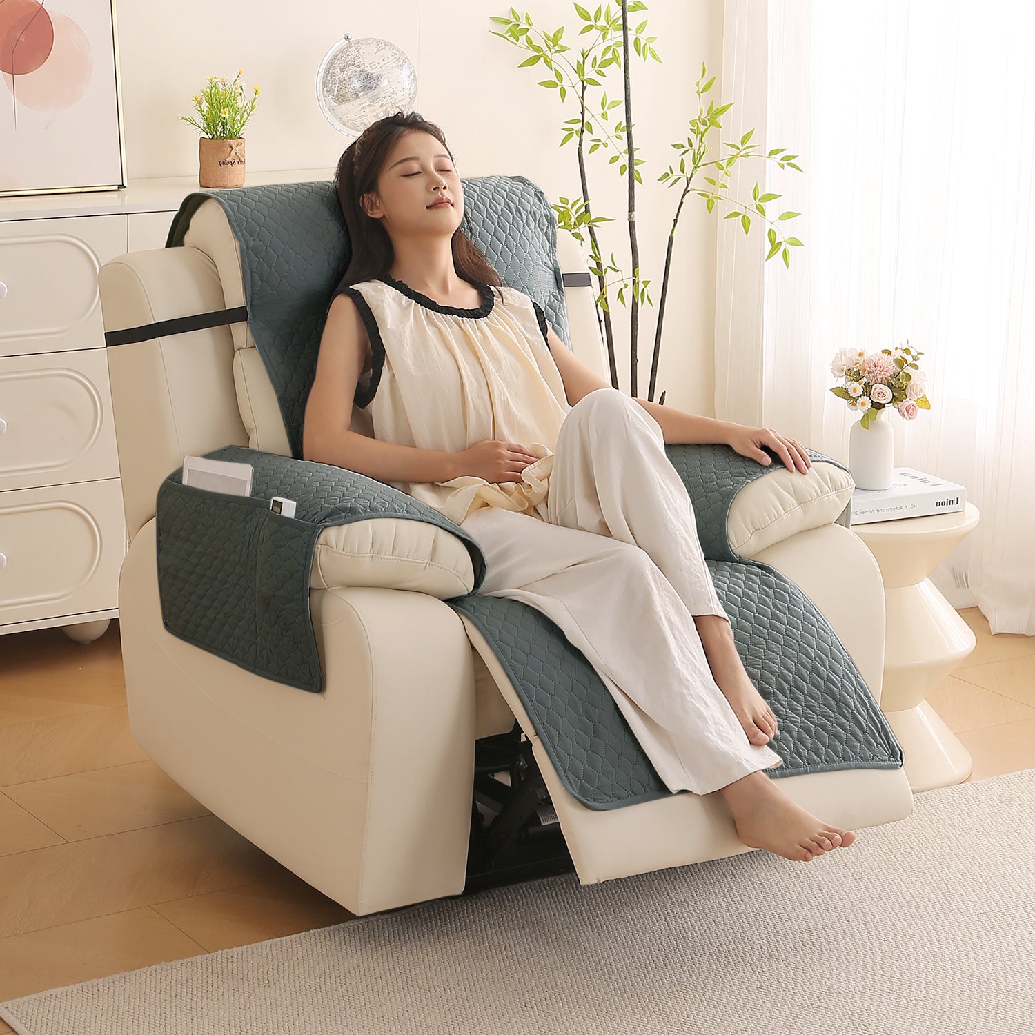Quilted Recliner Mats for 1 Seater Recliner Sofa, Grey