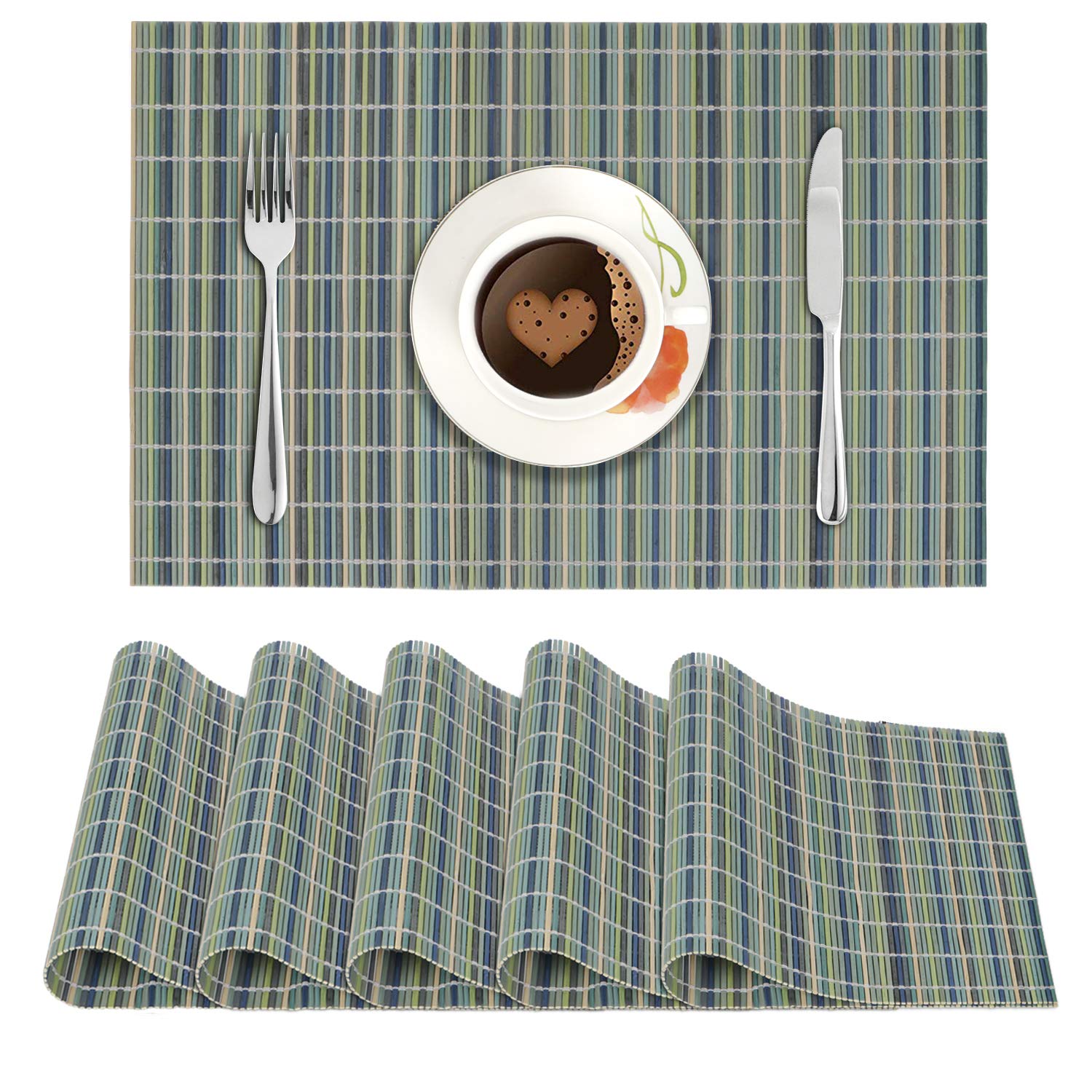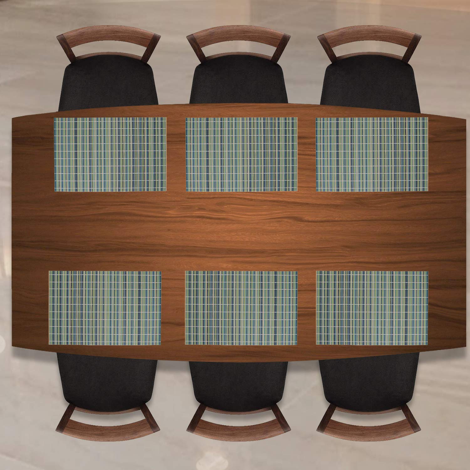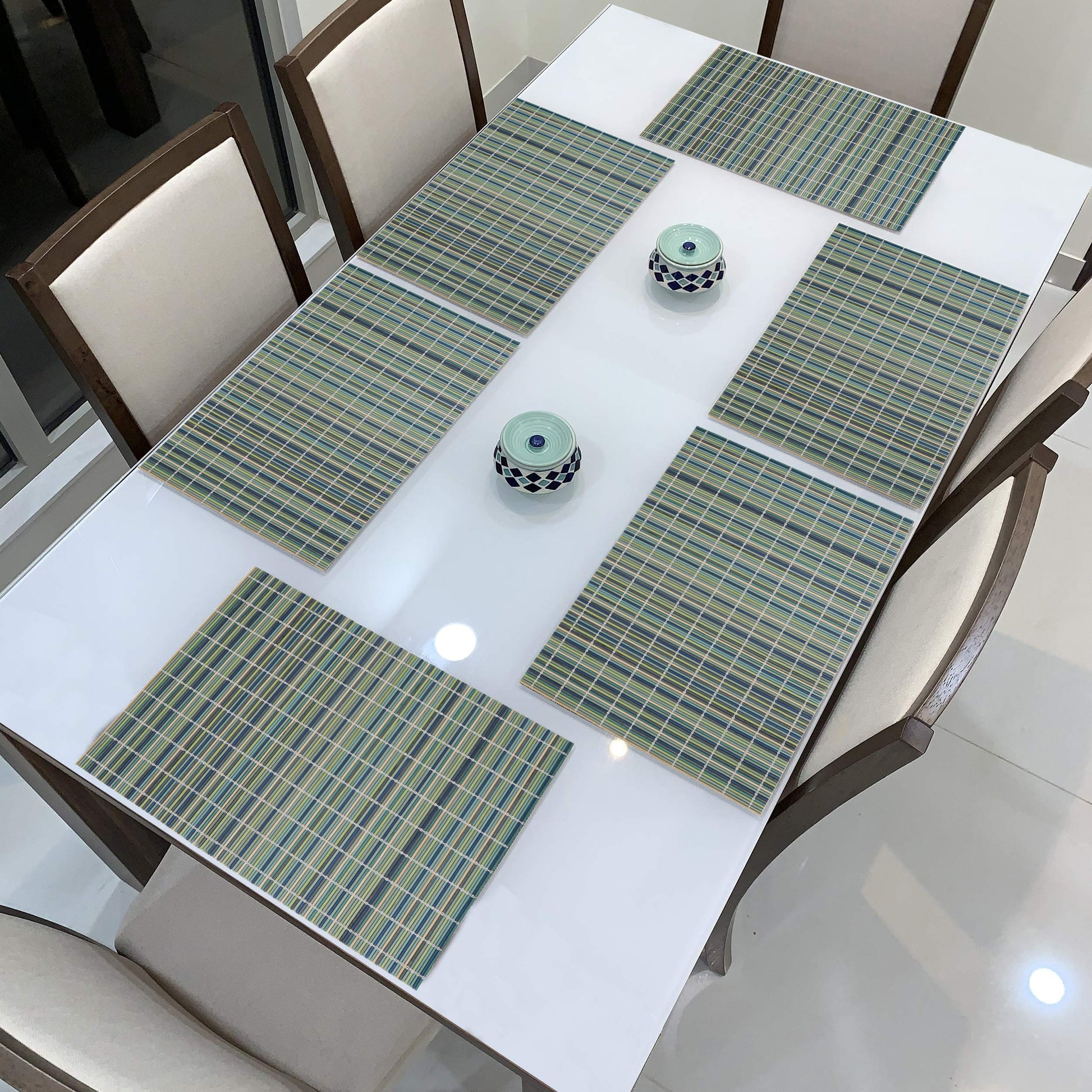 Reversible Bamboo Placemats for Dining Table Set of 6 Table Mats, 45x30 cm, Sea Green Stripes