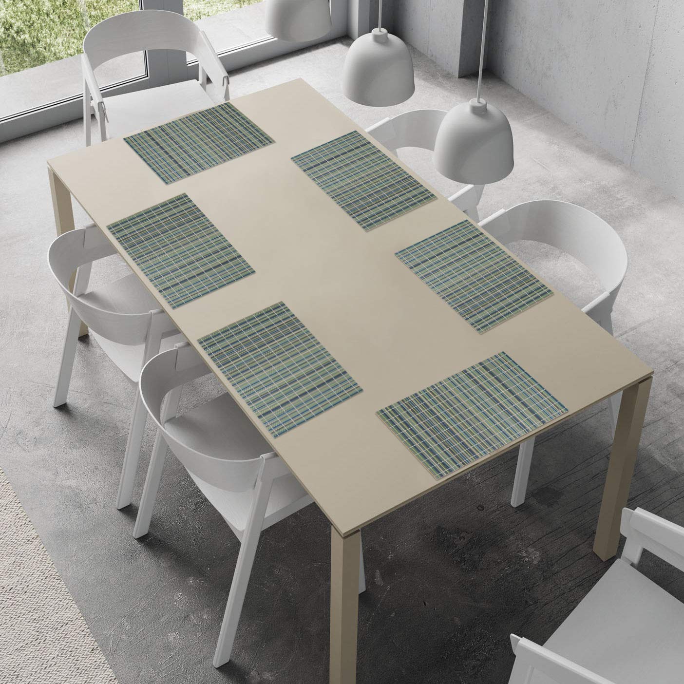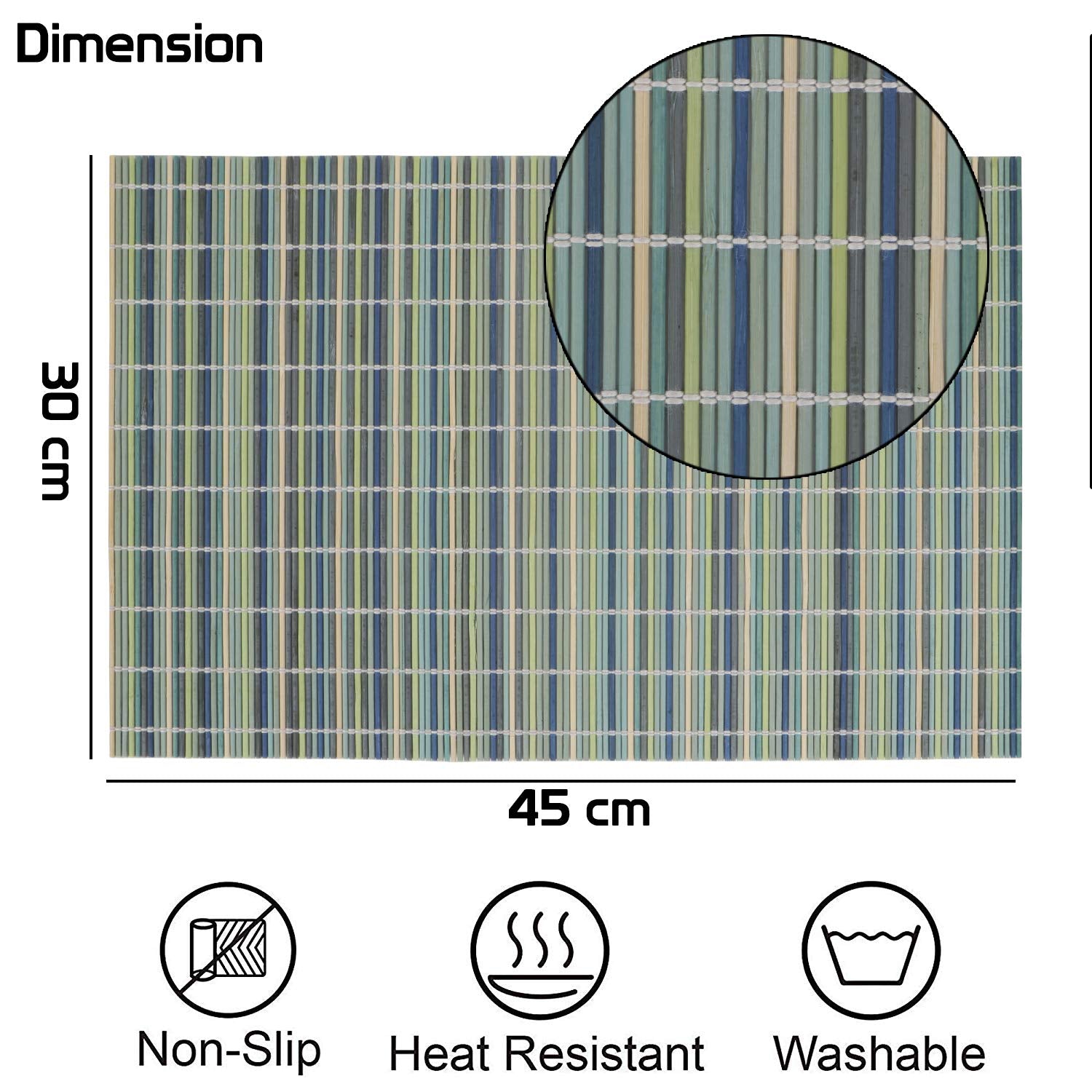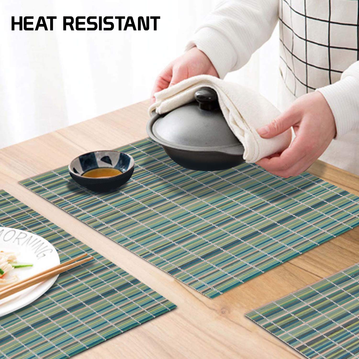Reversible Bamboo Placemats for Dining Table Set of 6 Table Mats, 45x30 cm, Sea Green Stripes
