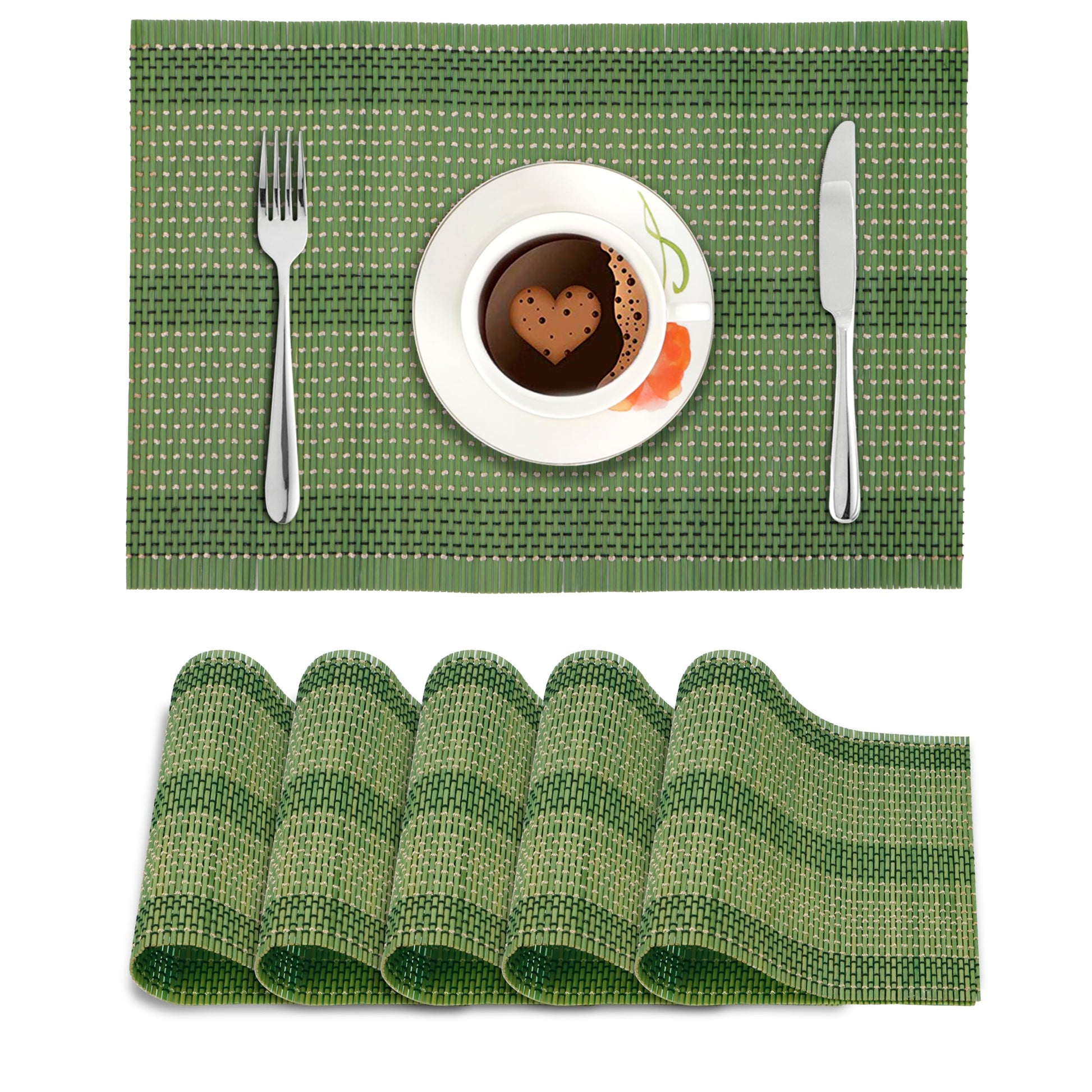 Reversible Bamboo Table Mats For Dining Table, Set Of 6 Placemats, 45X30 Cm, Green