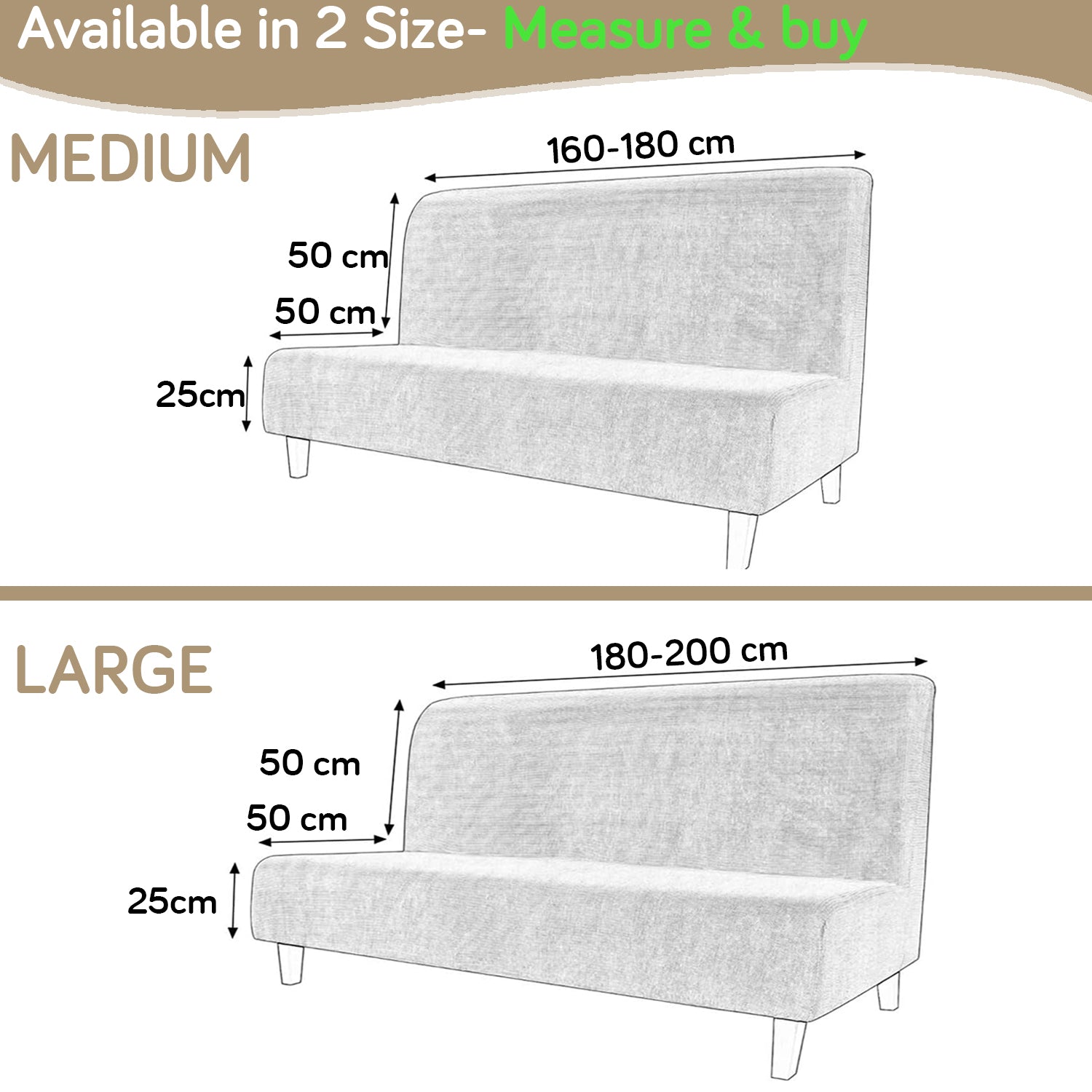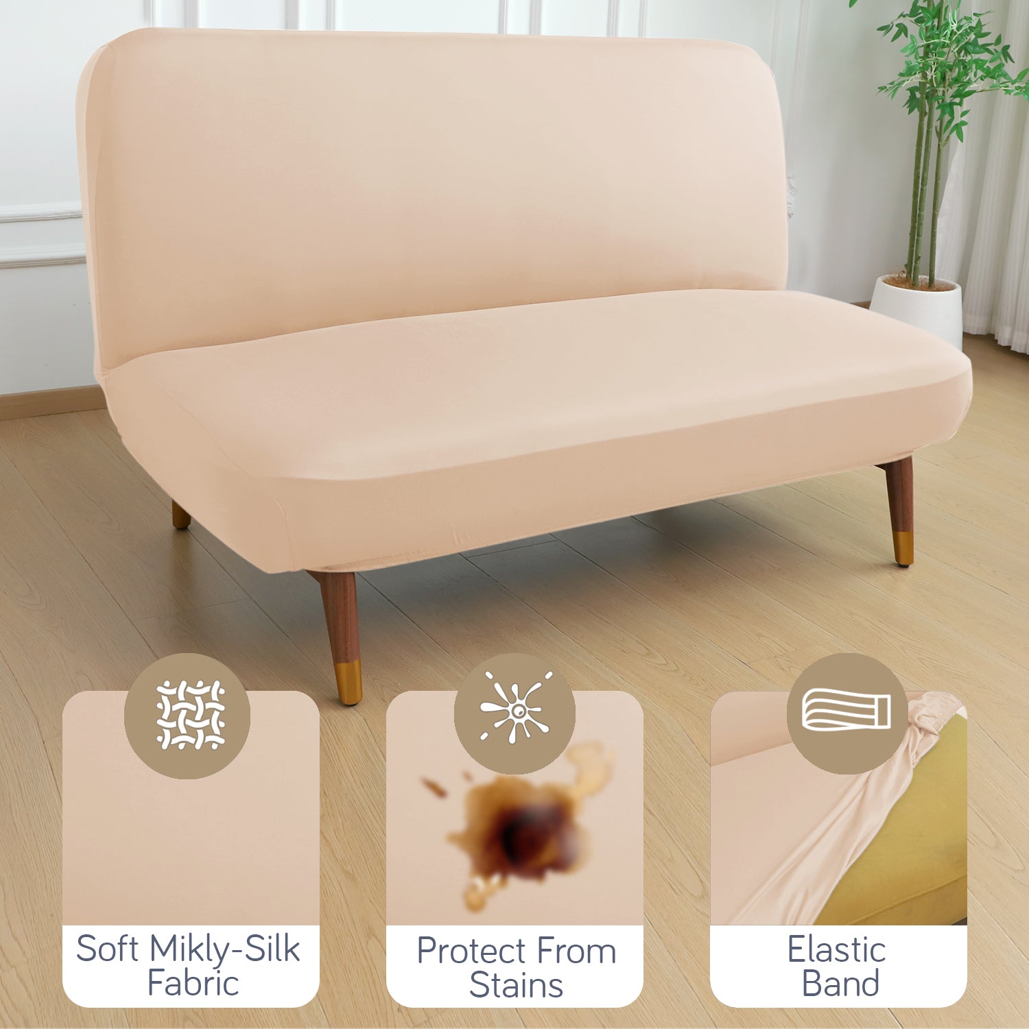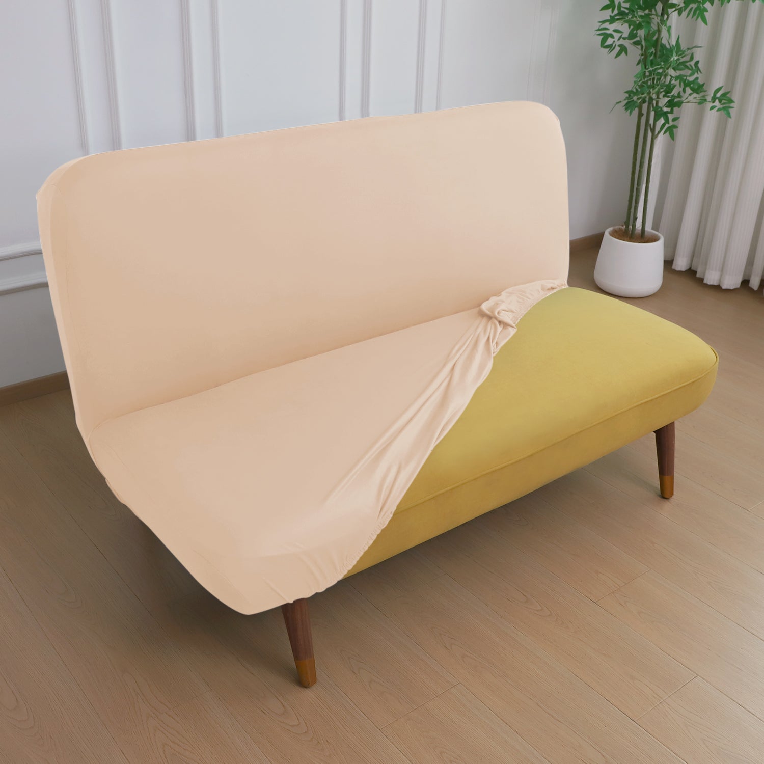 SereneSolids Stretchable Elastic Armless Sofa Cover – 140 GSM, Futon Slipcover, Easy Fit, Beige