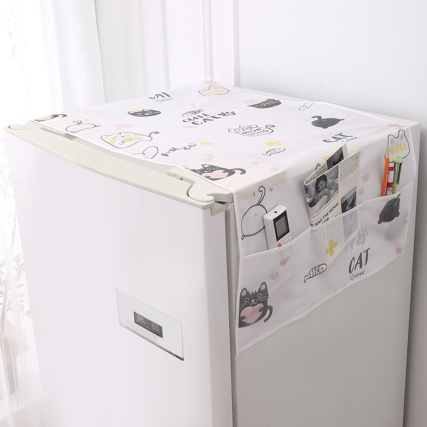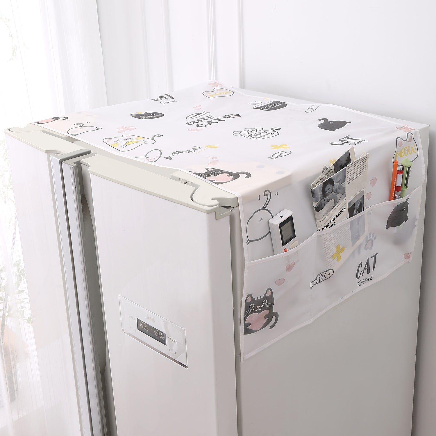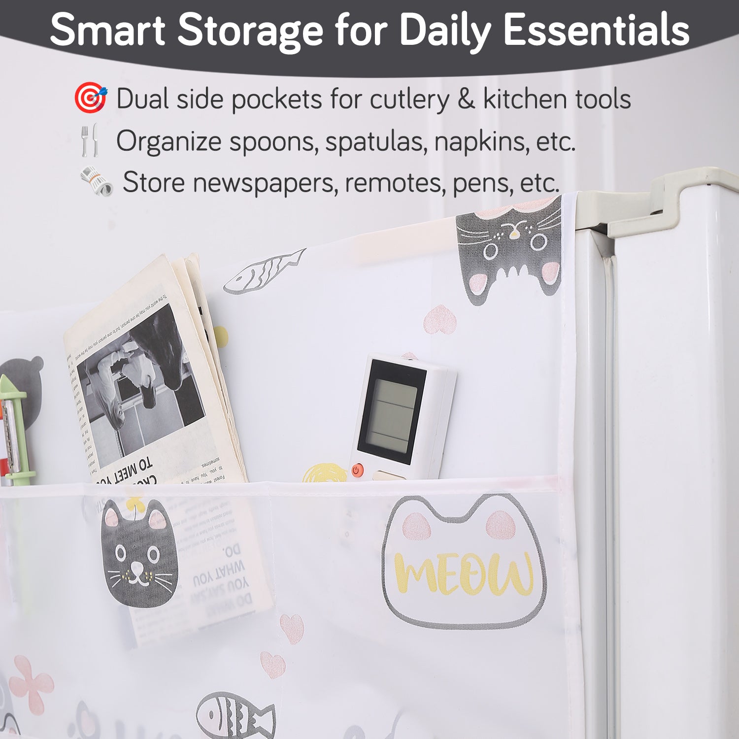 Small / Large Fridge Cover Top | For Smaller Single Door, Double Door and Bigger Double Door Refrigerator - Waterproof, Printed with 6 Side Pockets, Playful Cats