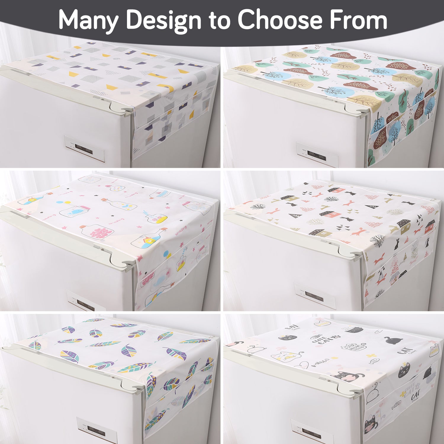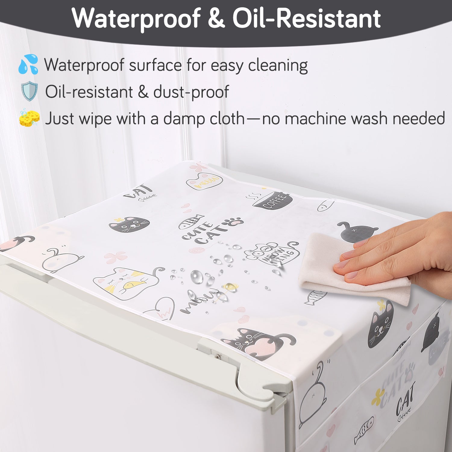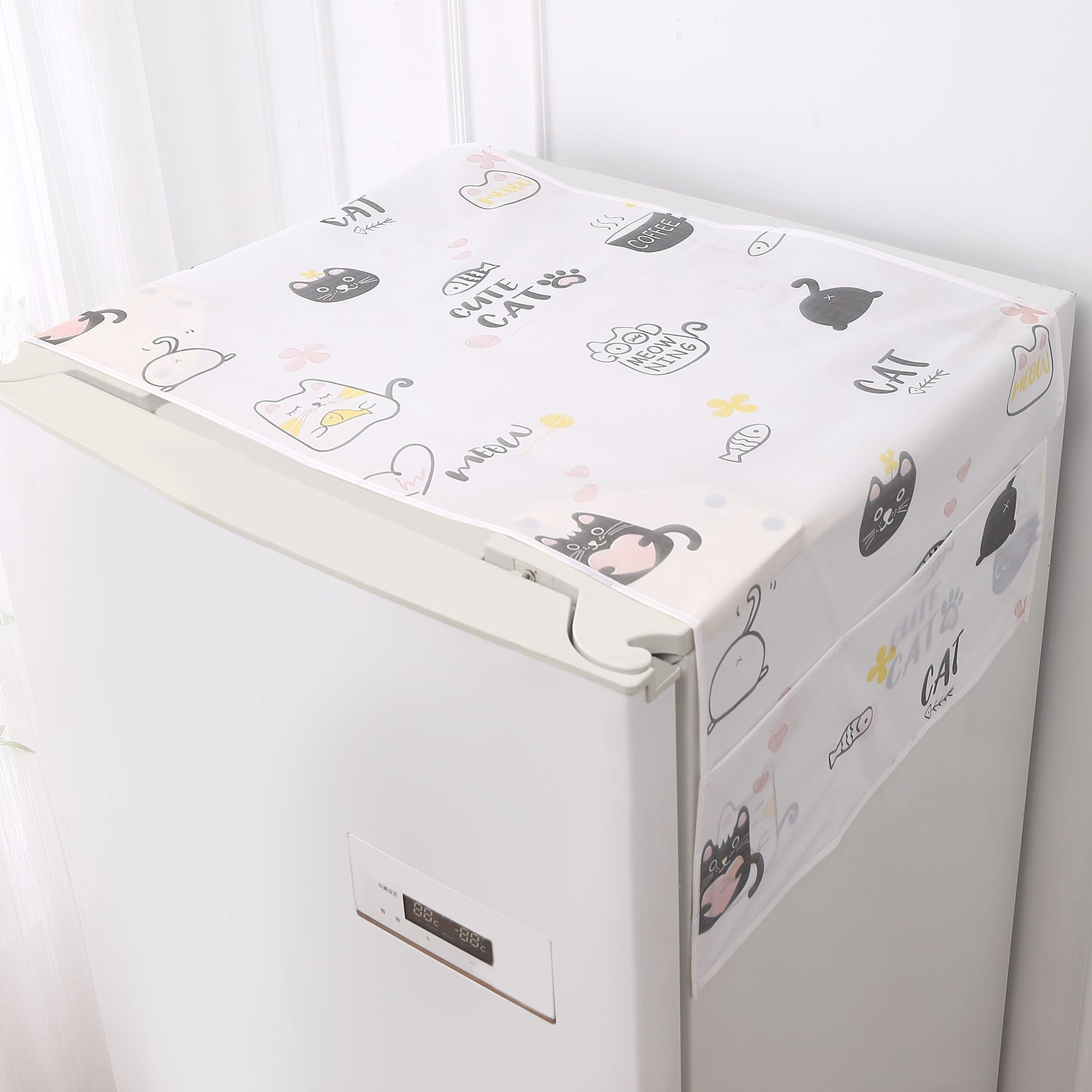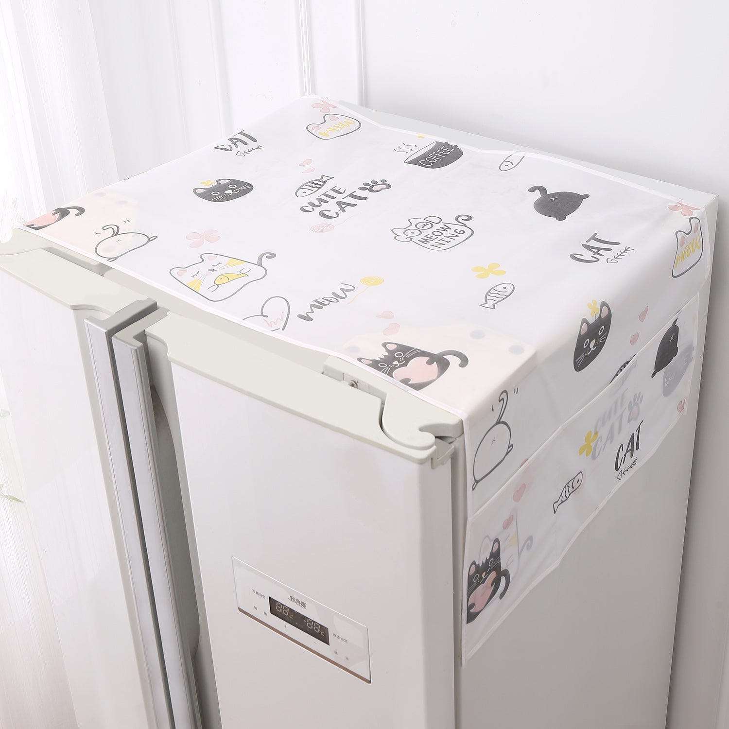 Small / Large Fridge Cover Top | For Smaller Single Door, Double Door and Bigger Double Door Refrigerator - Waterproof, Printed with 6 Side Pockets, Playful Cats