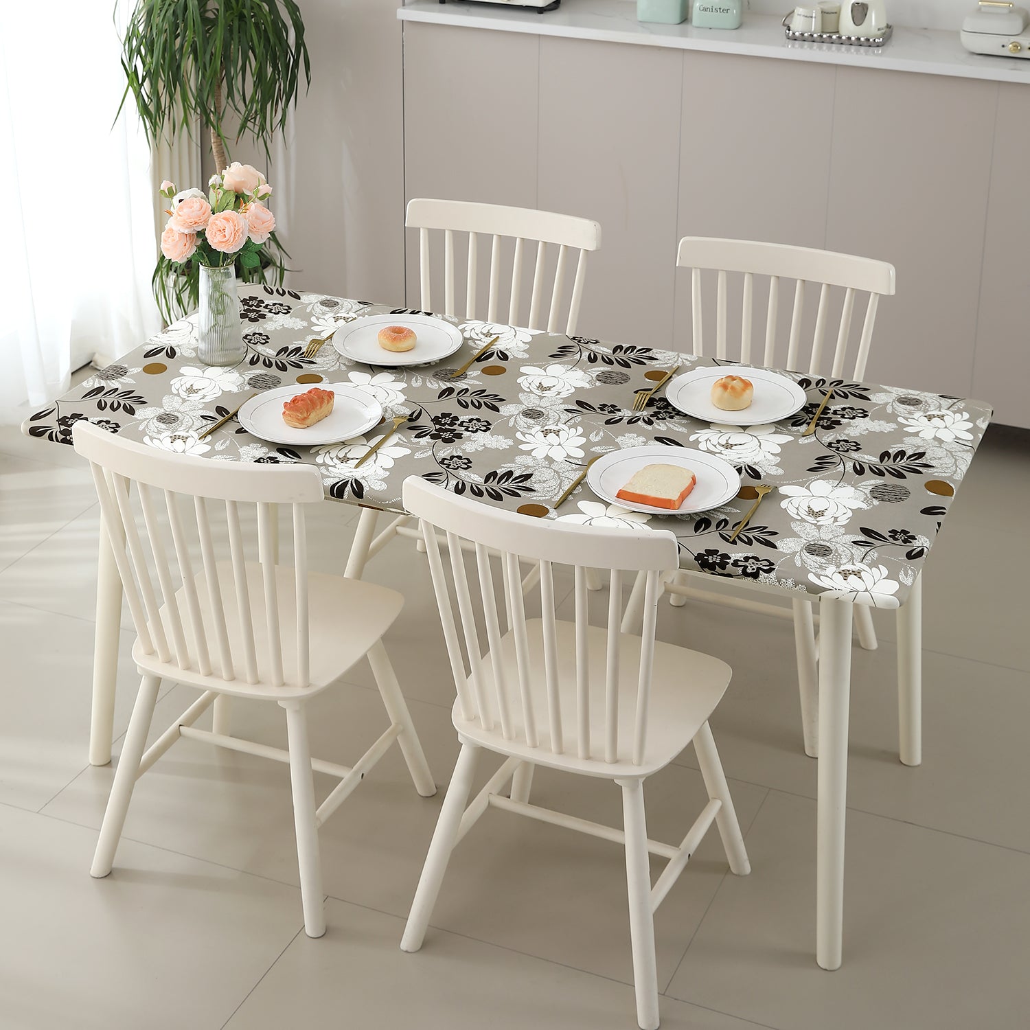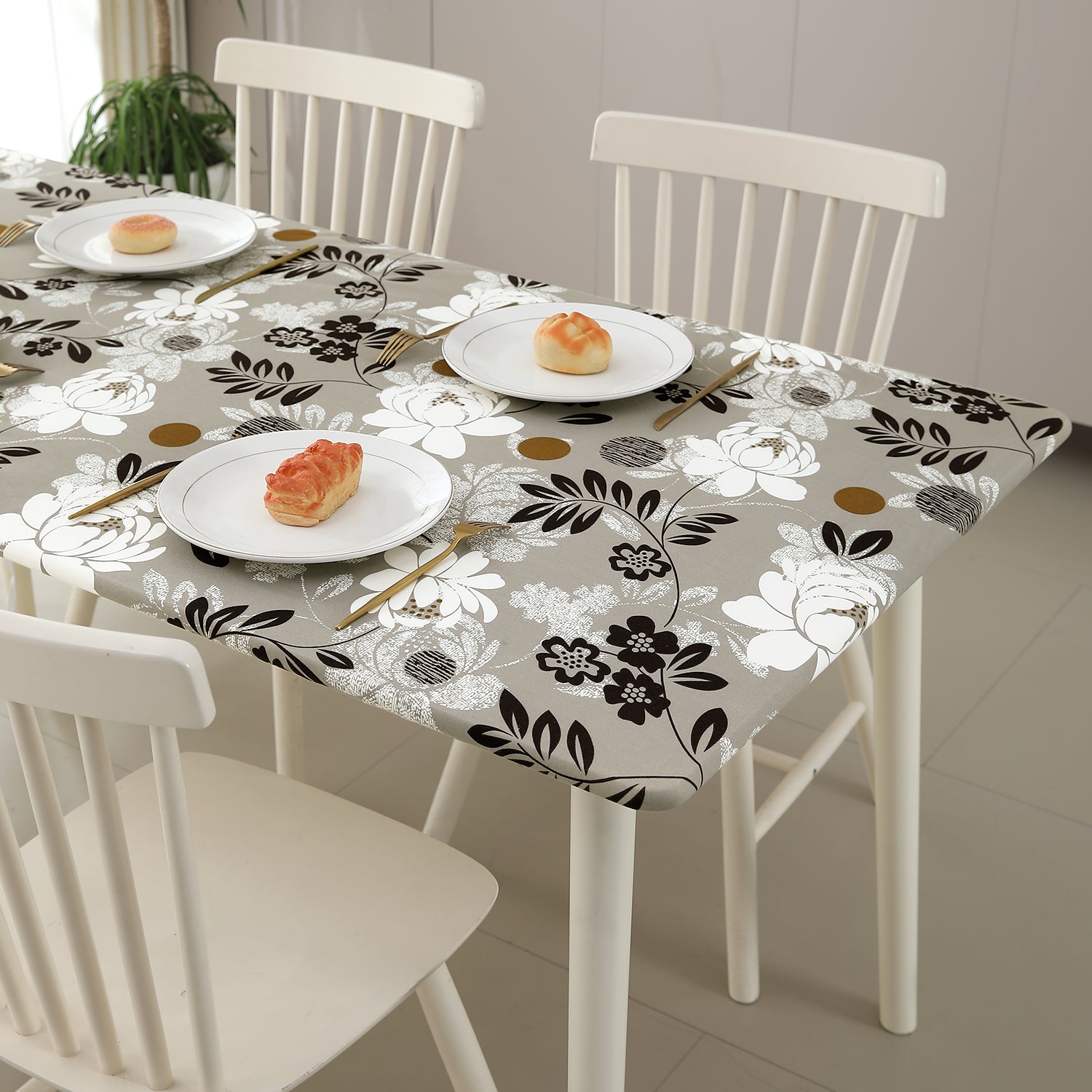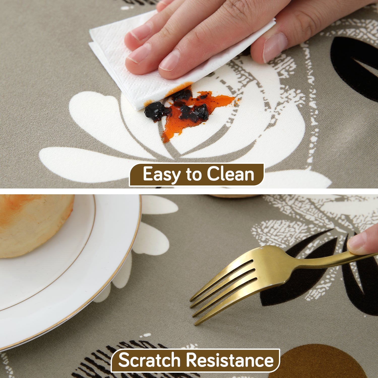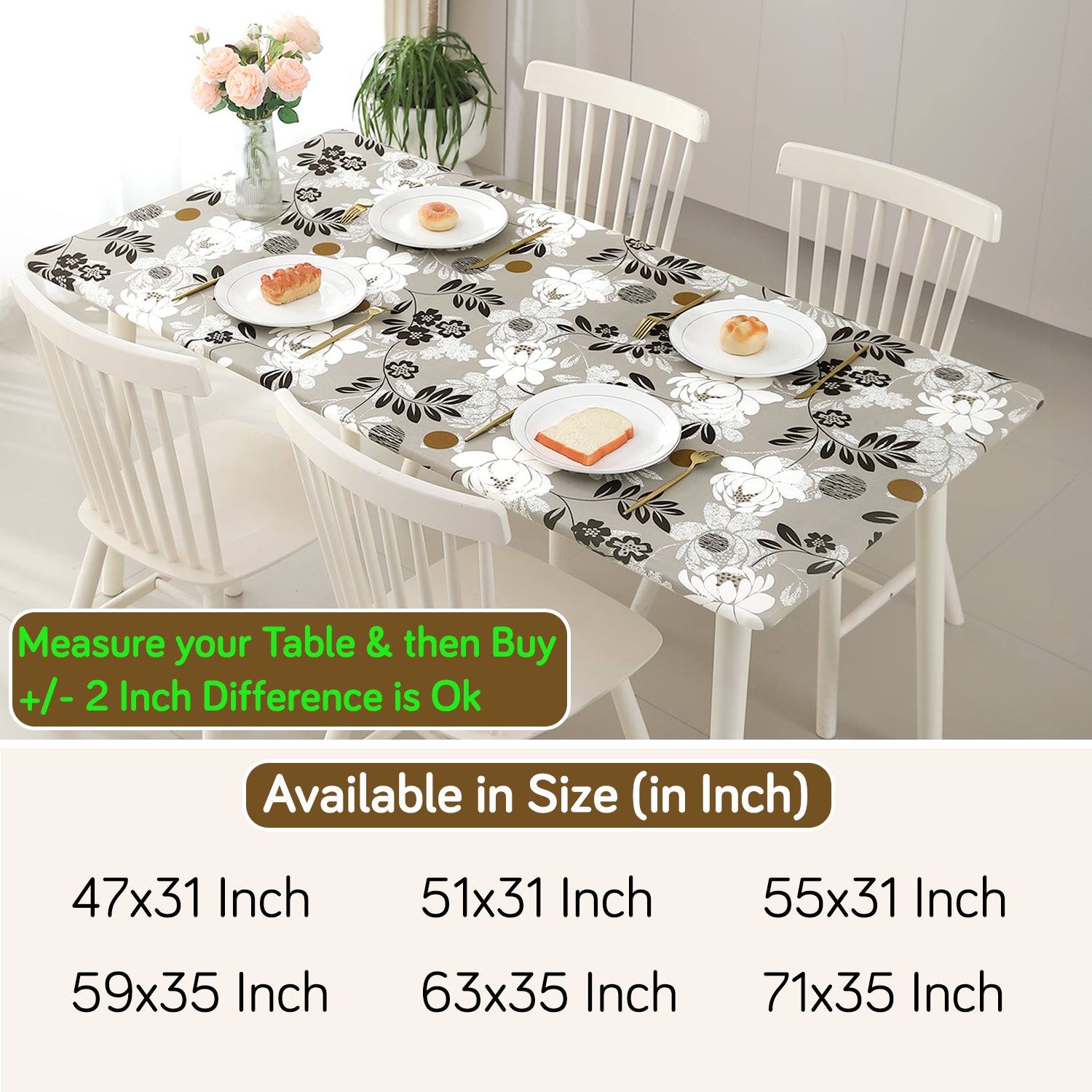 Printed Stretch Fit Water-Repellent & Anti-Slip Table Cloth Cover for 4 Seater / 6 Seater, Feather Brown Floral